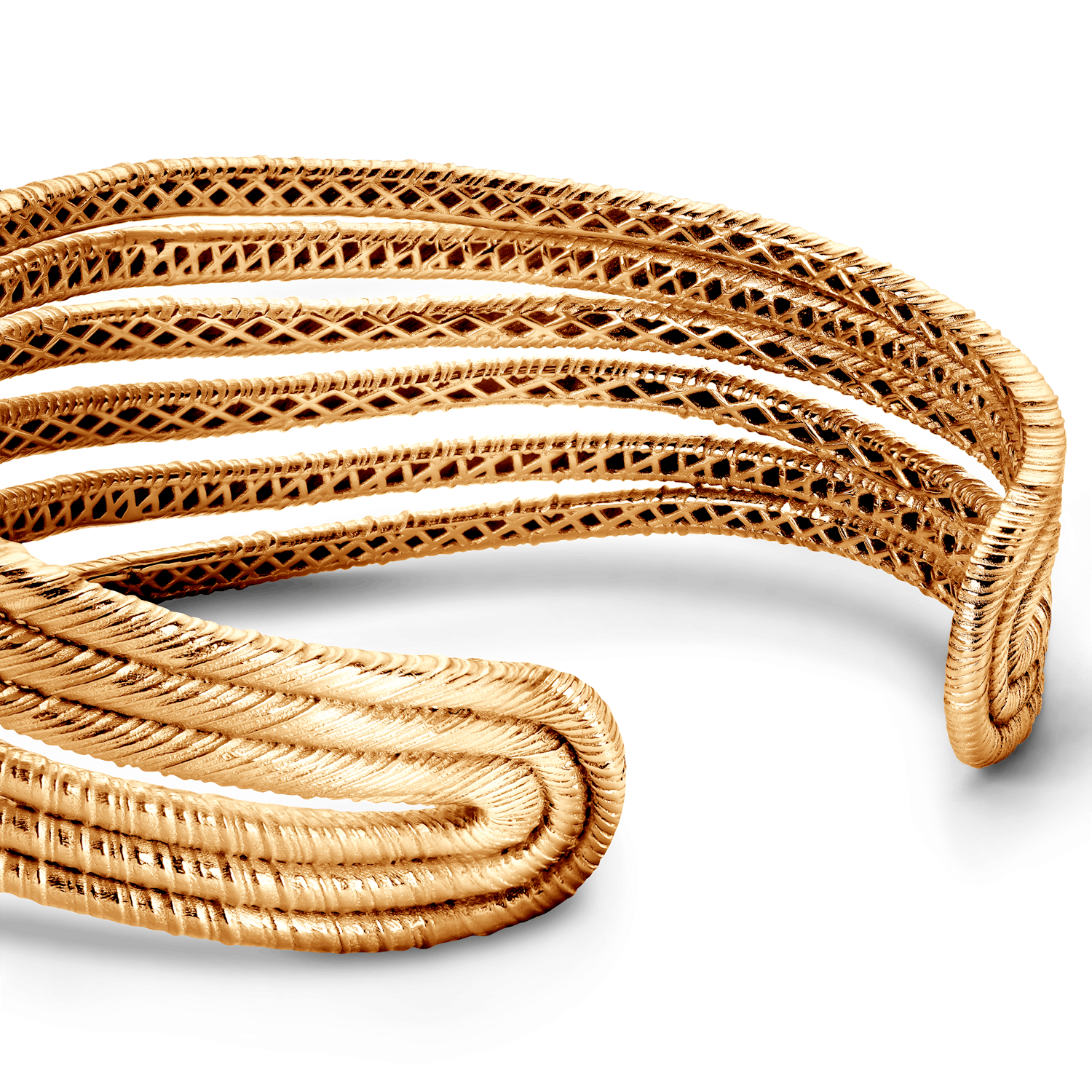 Każdy pierścionek, kolczyk czy naszyjnik tej kolekcji opowiada historię światła odbijającego się od faktury ciała niczym księżycowe refleksy na tafli wody. Pofałdowane powierzchnie, złote refleksy i rzeźbiarskie kształty przypominają muszle, skrzydła i fale – elementy natury w jej najczystszej formie.