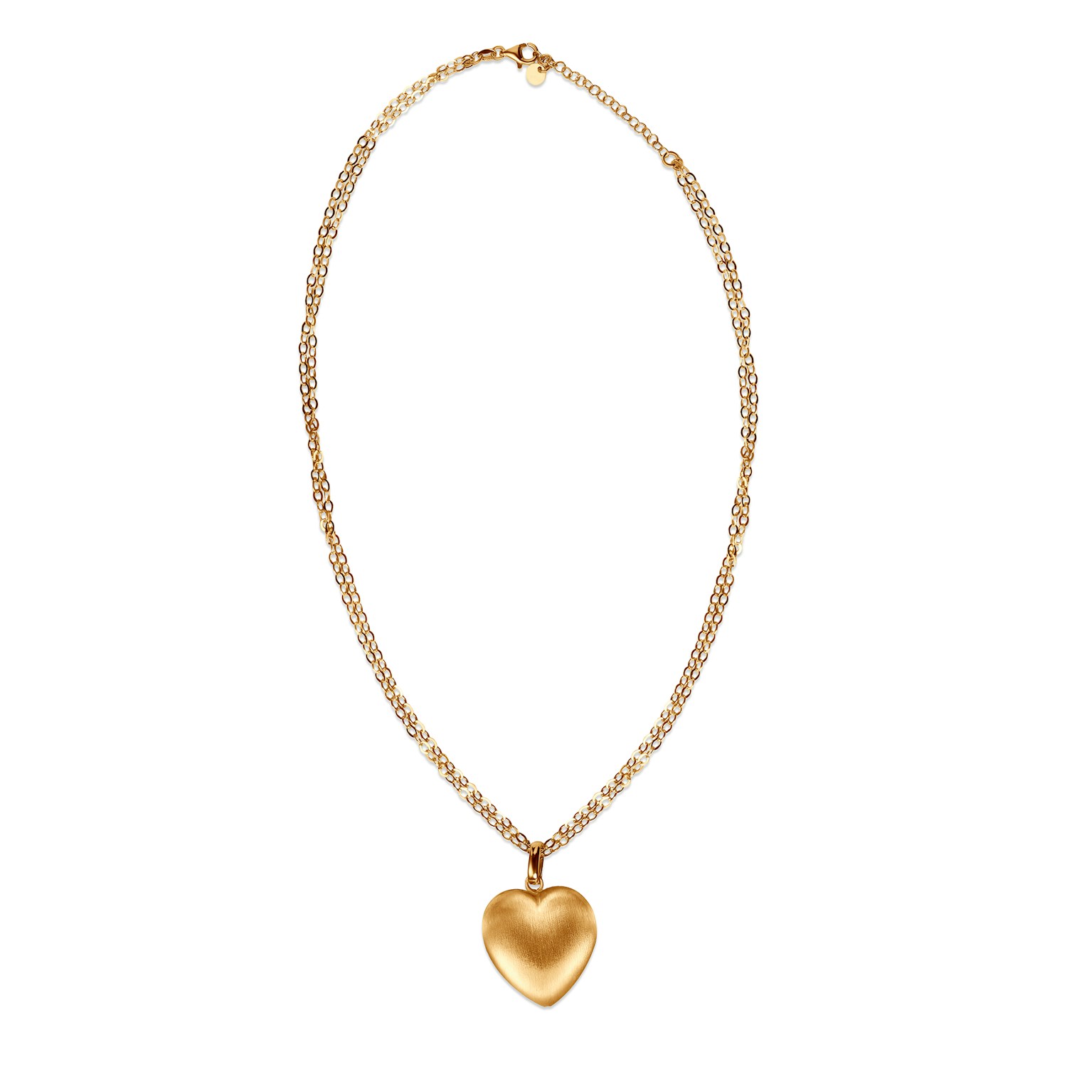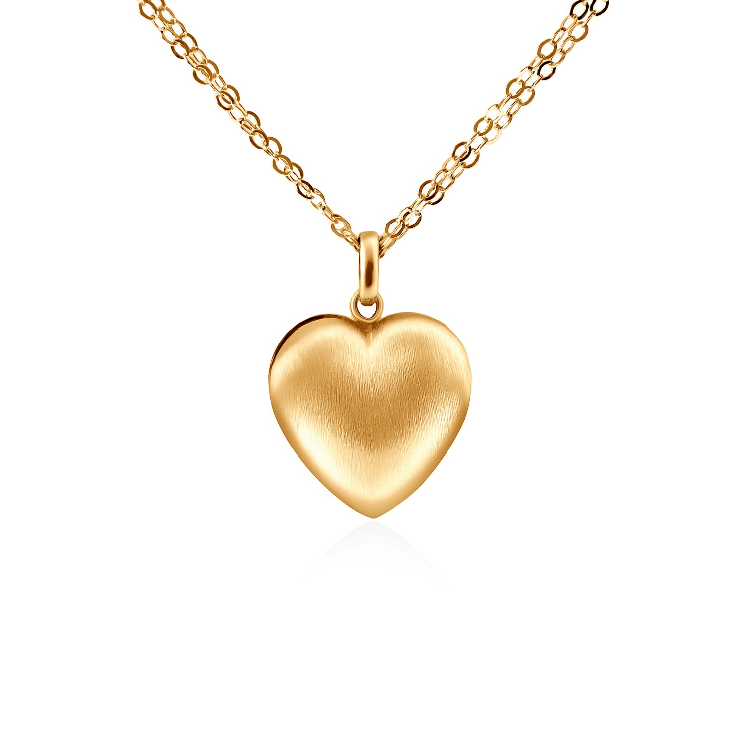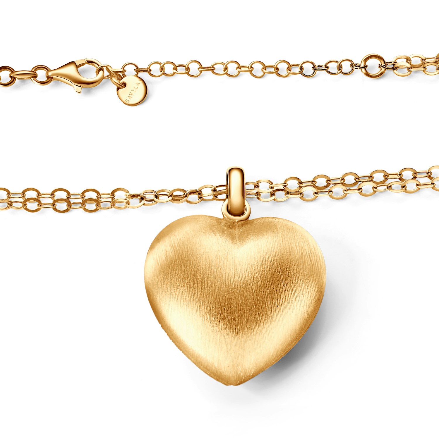 Naszyjnik wykonany ze srebra próby 925, pokryty szlachetnym złotem, zachwyca subtelnym połyskiem i nowoczesną formą. Wyraziste serce o satynowym wykończeniu staje się symbolem głębokiego uczucia i ponadczasowej elegancji. Idealny wybór na prezent, który zostanie z sercem na zawsze.
