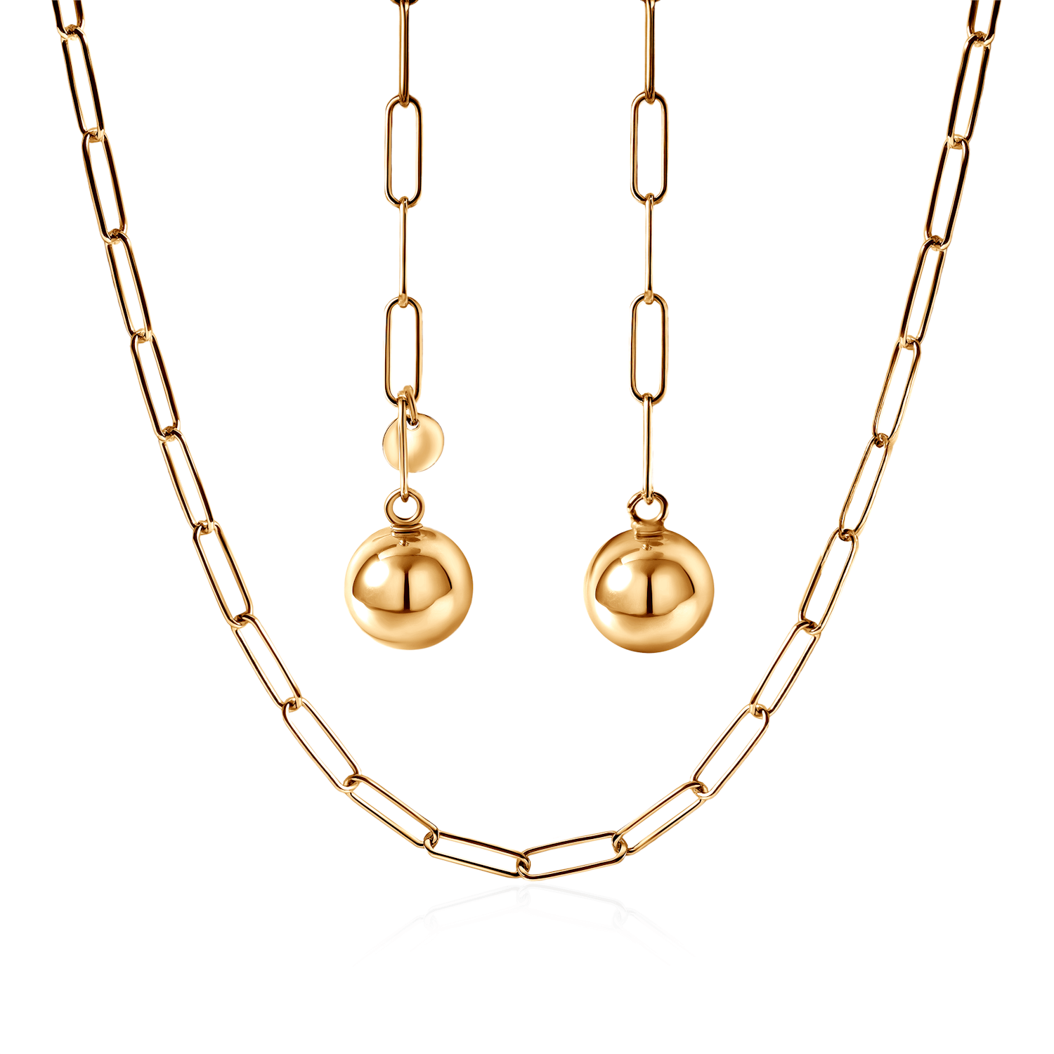 Ten naszyjnik ze srebra próby 925, pokryty ciepłym złotem, przyciąga wzrok nietuzinkowym łańcuchem i minimalistycznymi kulami o perfekcyjnej formie. Nowoczesny design i szlachetna forma sprawiają, że staje się on biżuterią dla kobiet pewnych siebie – świadomych stylu i klasy. Doskonały wybór na prezent, który wyrazi więcej niż słowa.