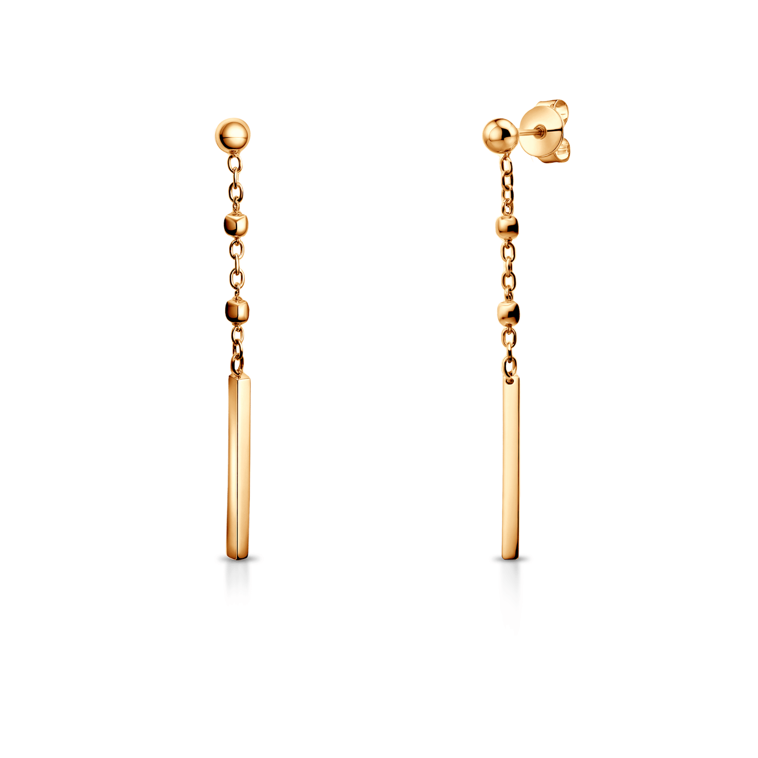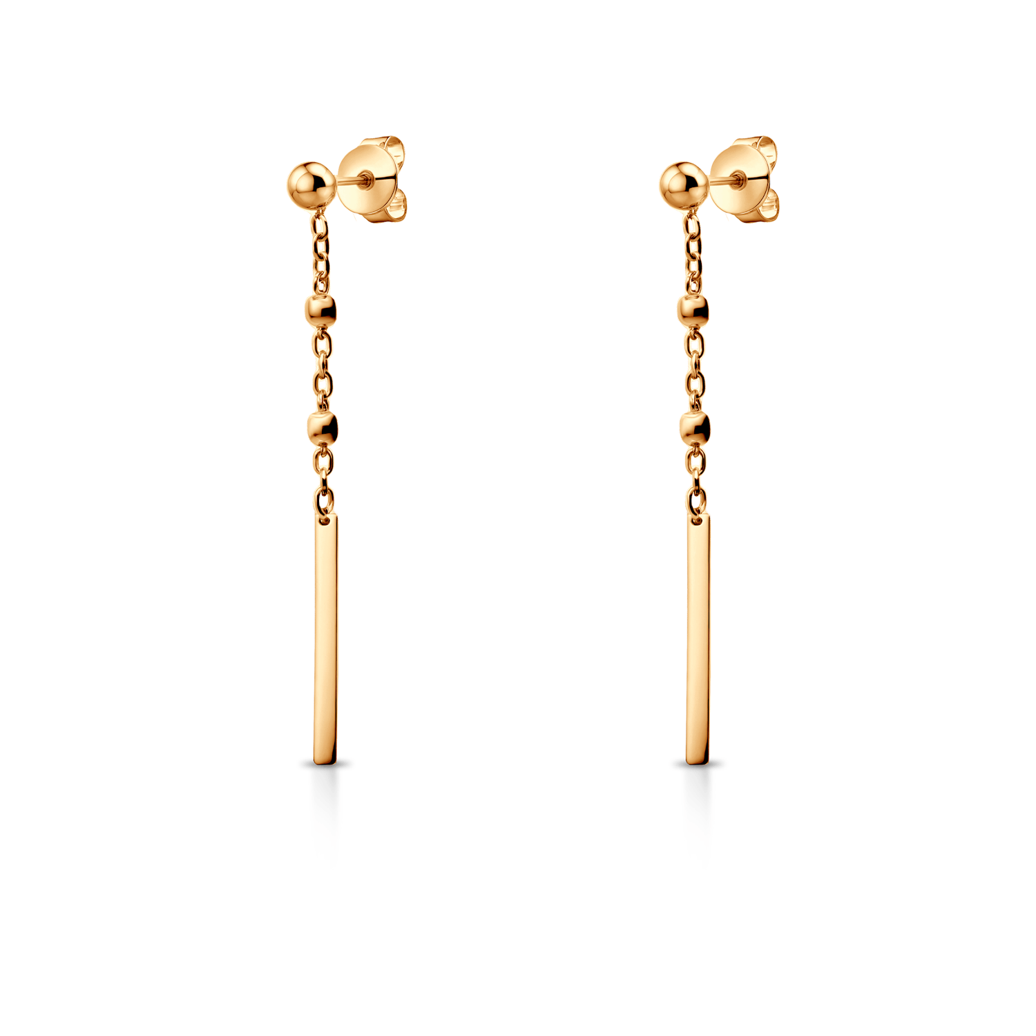 Kolczyki SAVICKI z pozłacanego srebra próby 925 urzekają minimalistyczną formą i subtelnym detalem. Delikatny łańcuszek zdobiony drobnymi kuleczkami prowadzi do wydłużonego elementu, który z gracją porusza się przy każdym kroku.