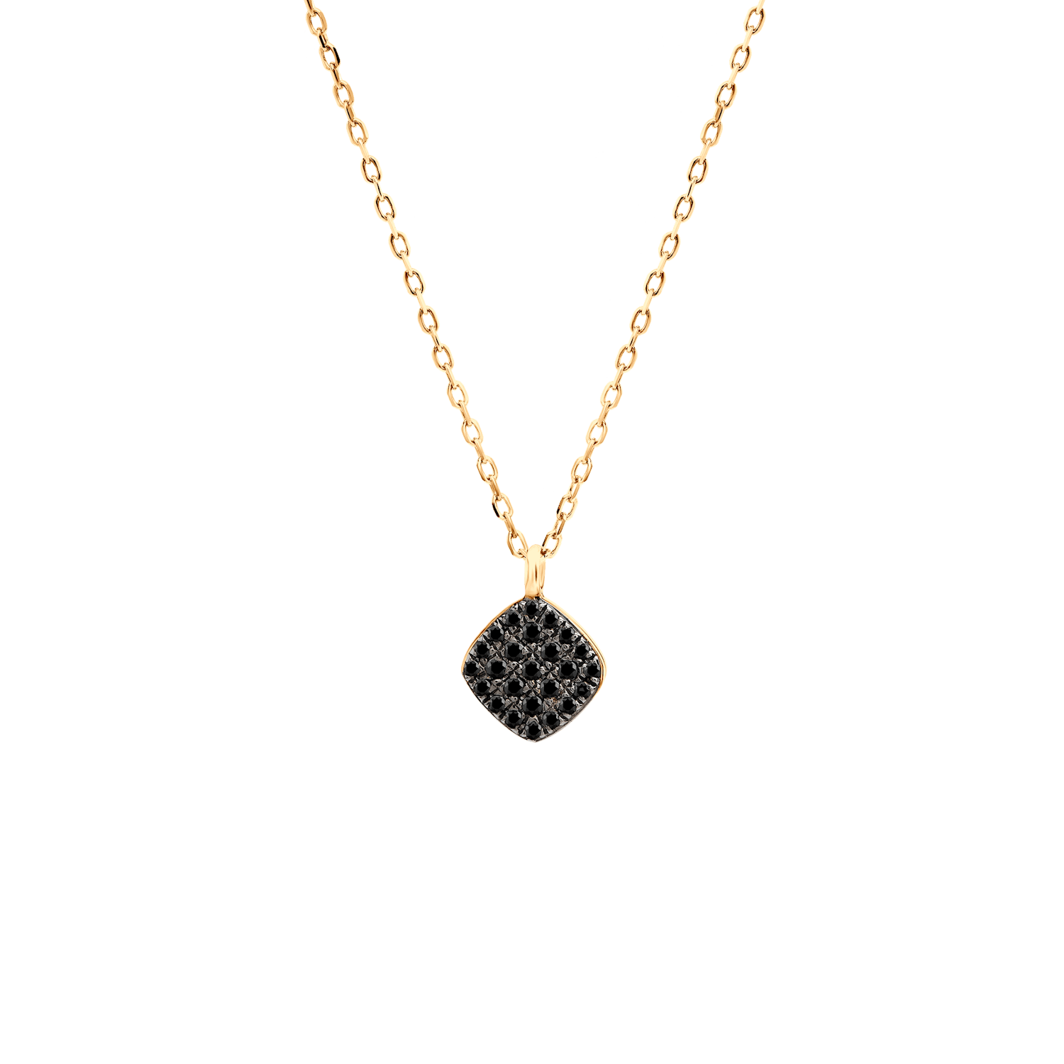 W naszyjniku zostało osadzonych 16 czarnych diamentów o łącznej masie 0,06 ct. Naszyjnik wykonany z żółtego złota(próba 585).