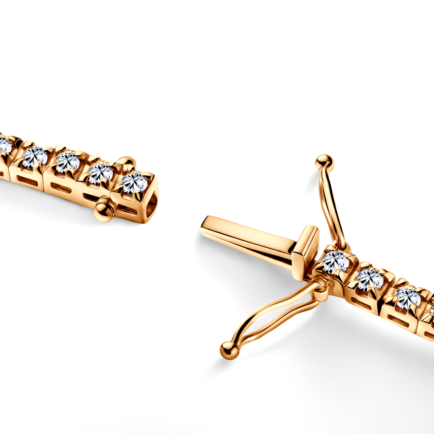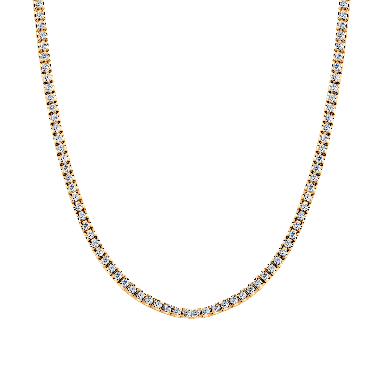 W naszyjniku zostało osadzonych 146 diamentów o łącznej masie 4,38ct w szlifie brylantowym i czystości SI2/H. Naszyjnik wykonany z żółtego złota(próba 585).