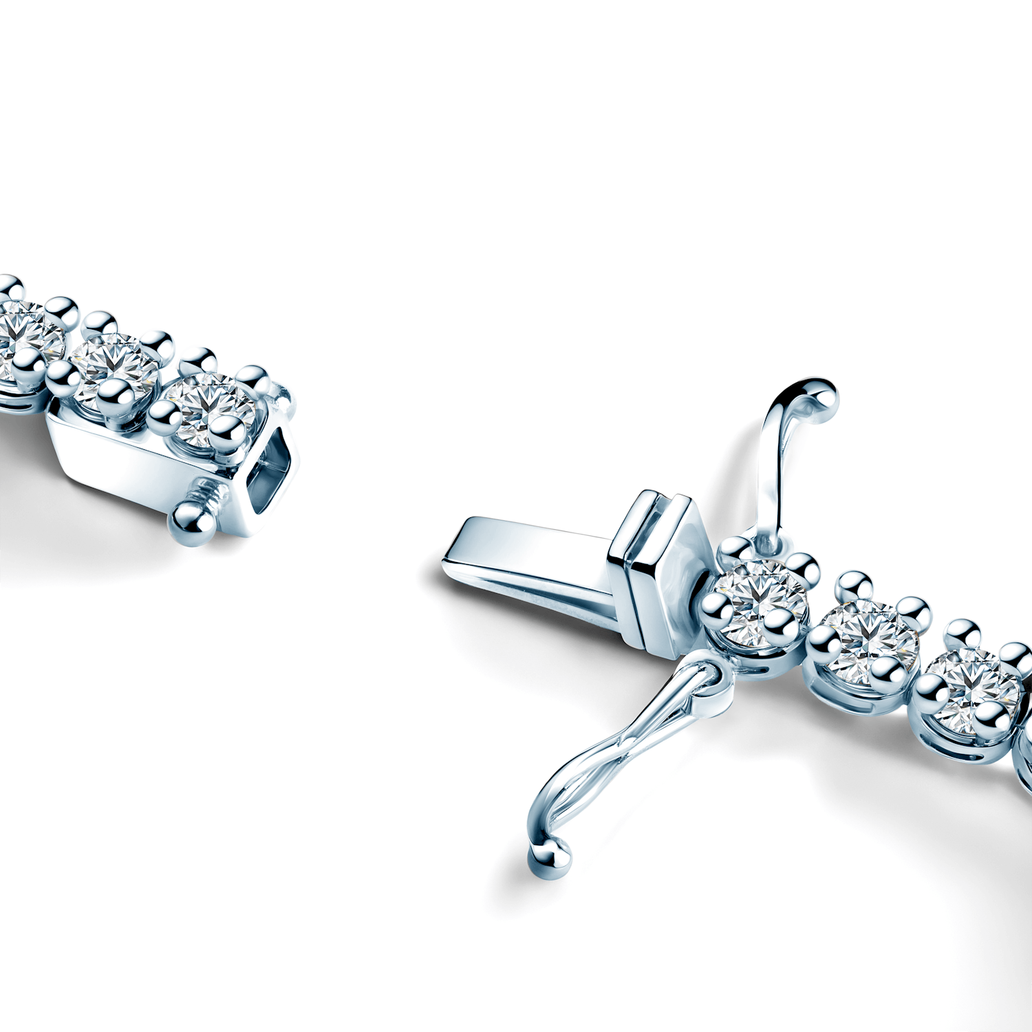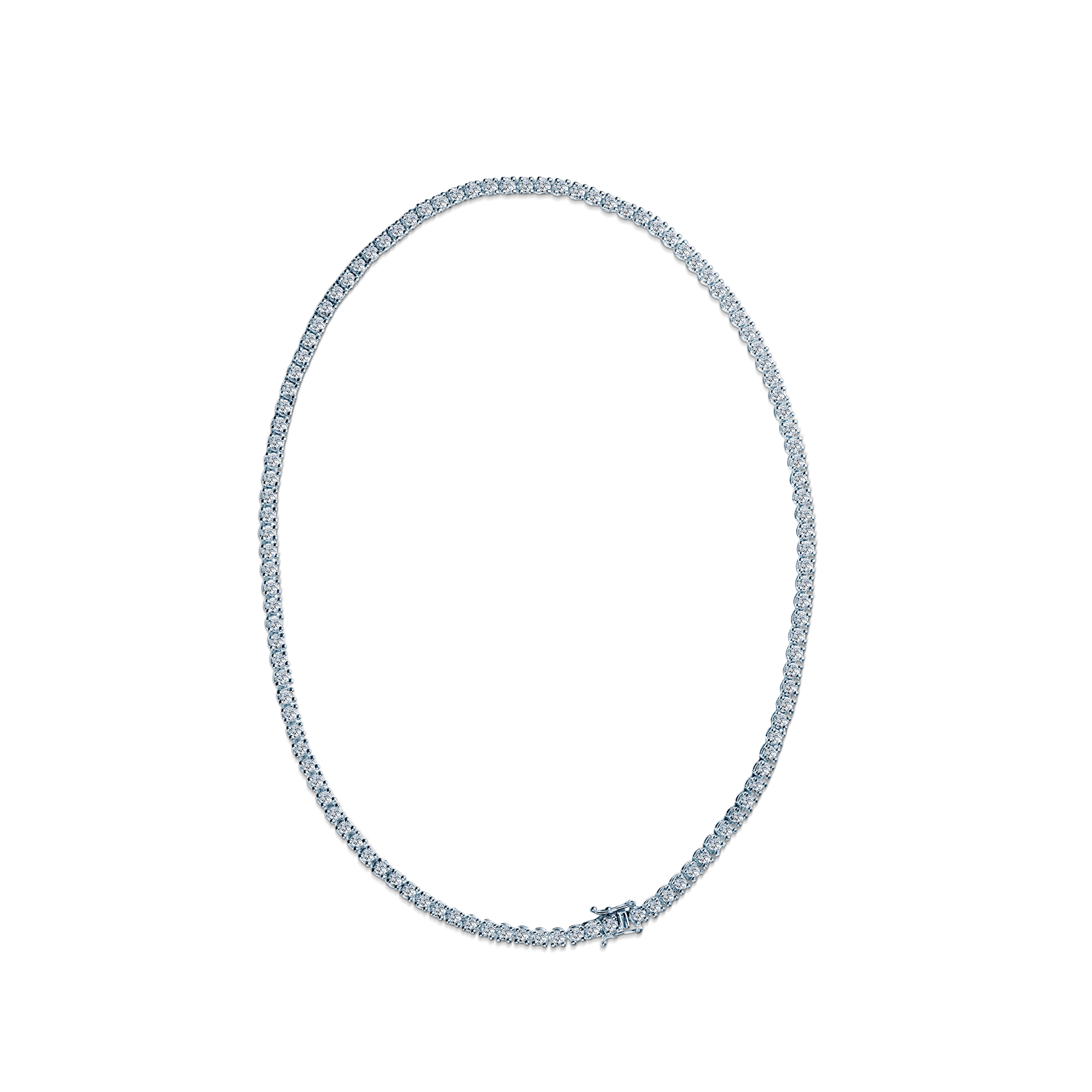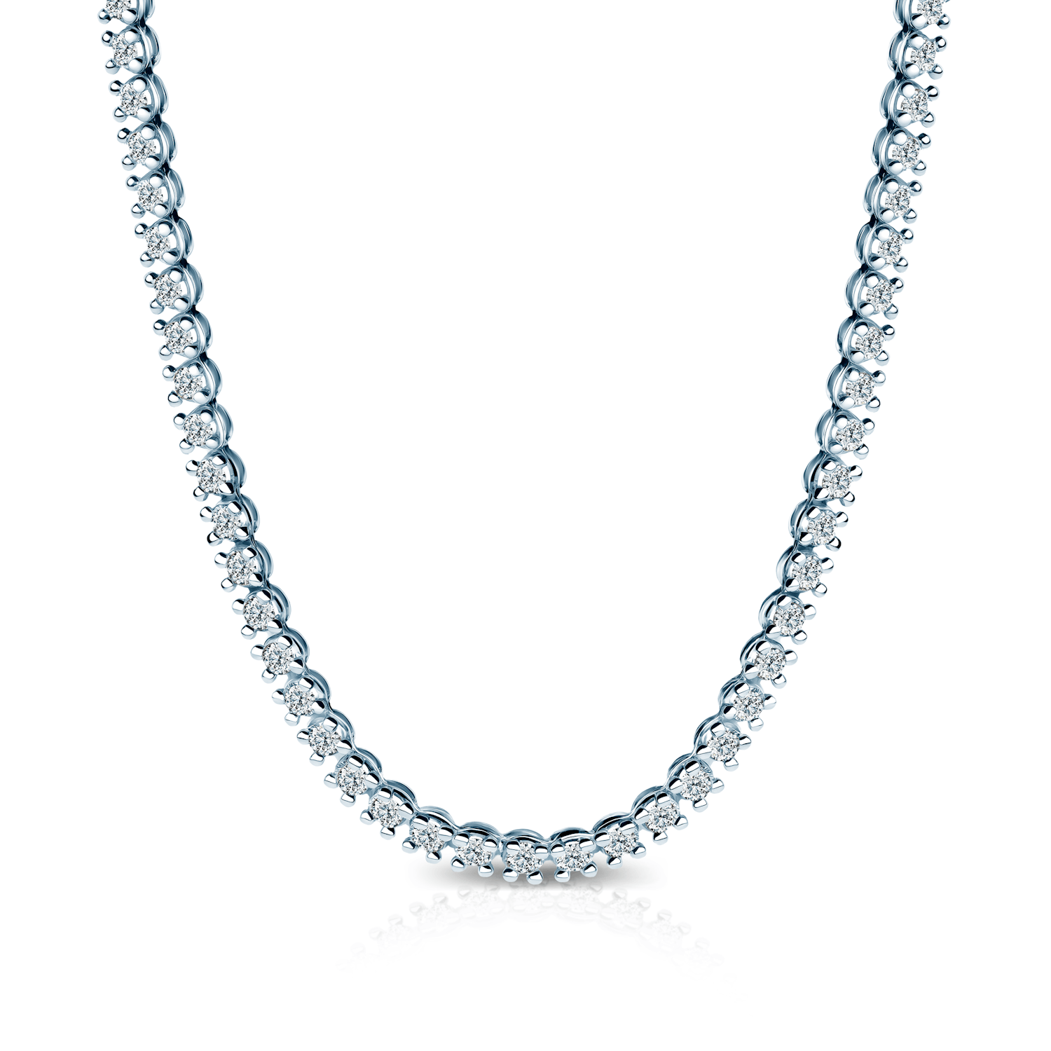 W naszyjniku zostało osadzonych 115 diamentów o łącznej masie 6,9ct w szlifie brylantowym i czystości SI2/H. Naszyjnik wykonany z białego złota(próba 585).