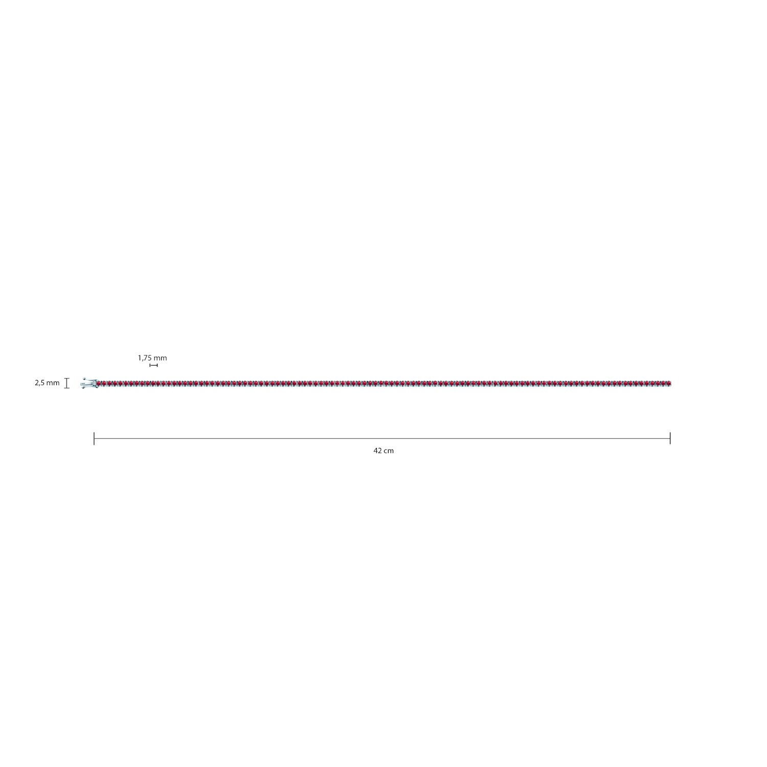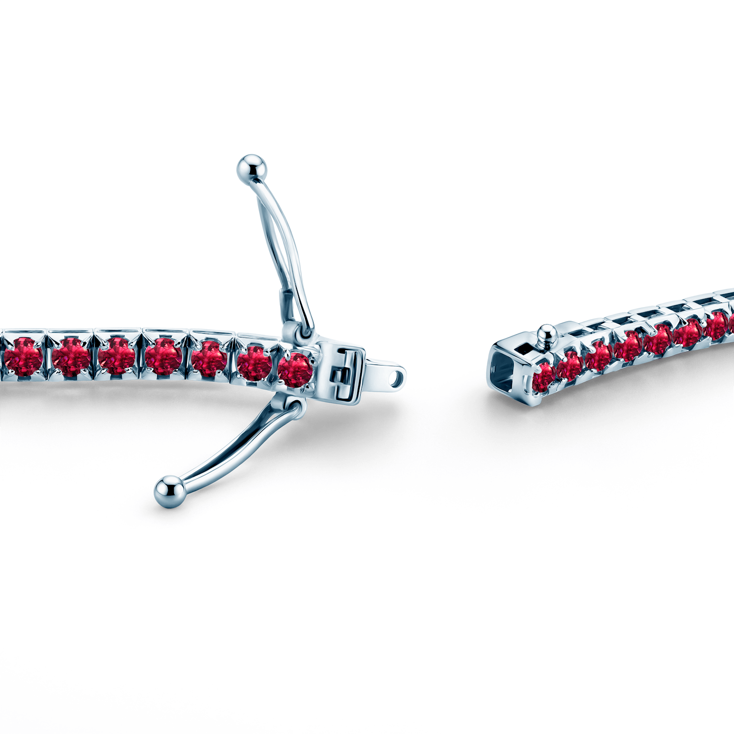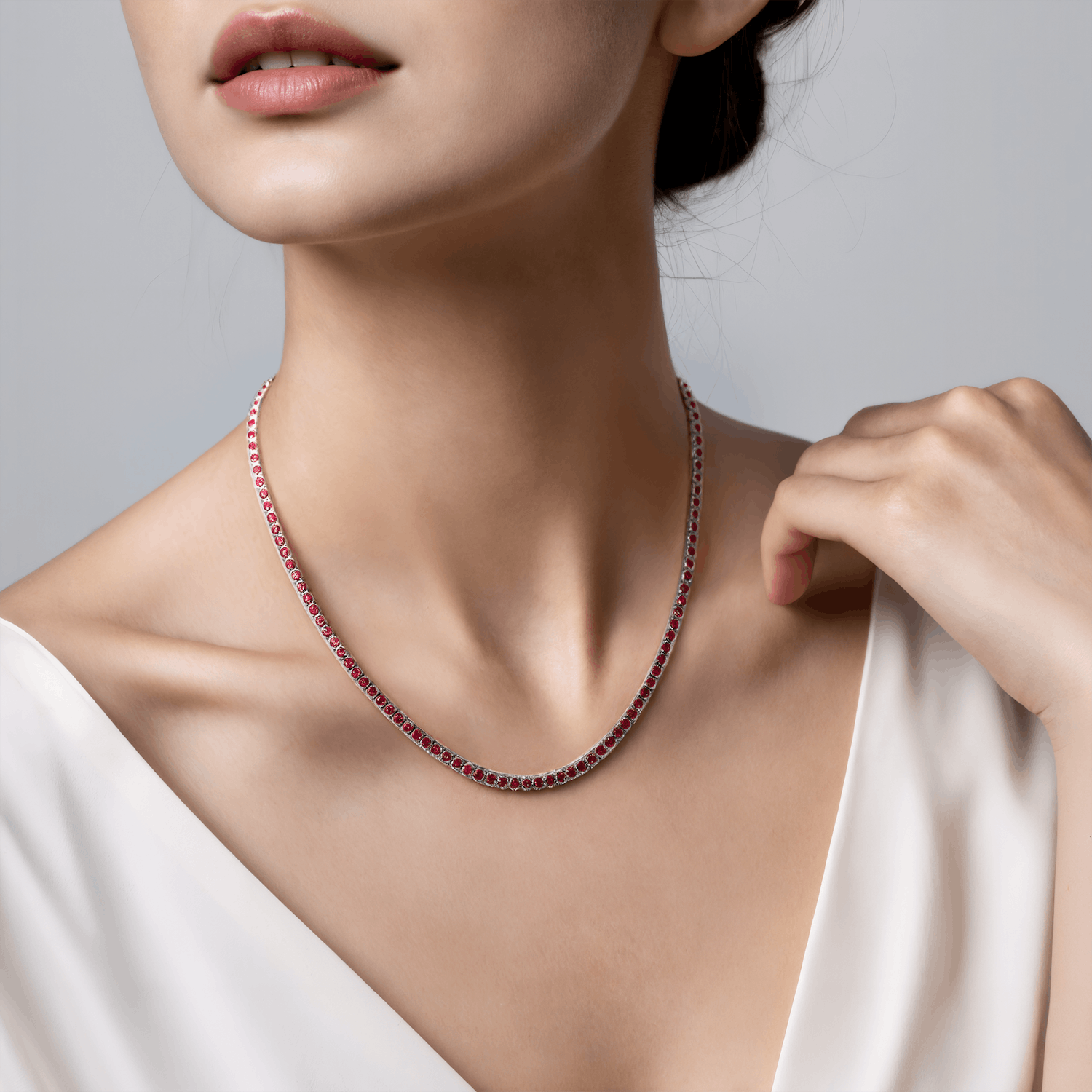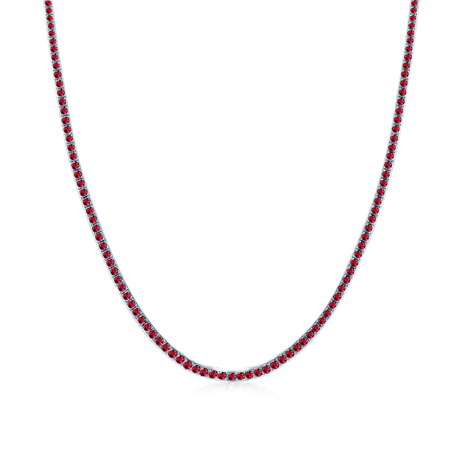 W naszyjniku zostało osadzonych 165 rubinów o łącznej masie 4,95ct w szlifie brylantowym i czystości VS/F. Naszyjnik wykonany z białego złota(próba 585).