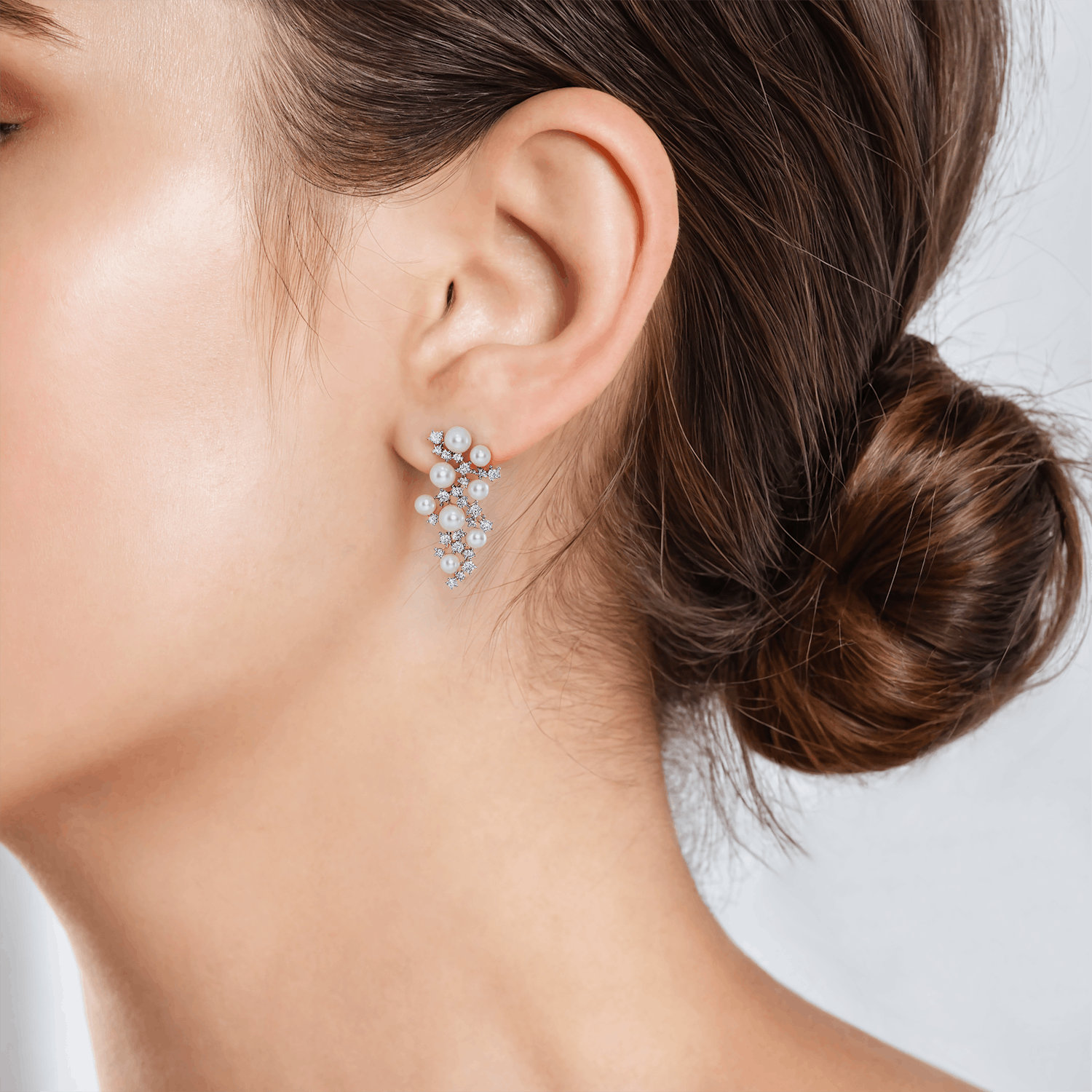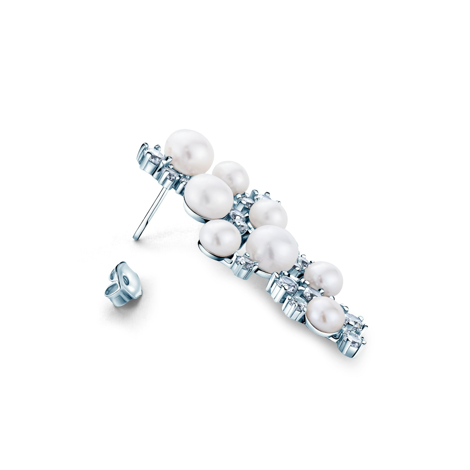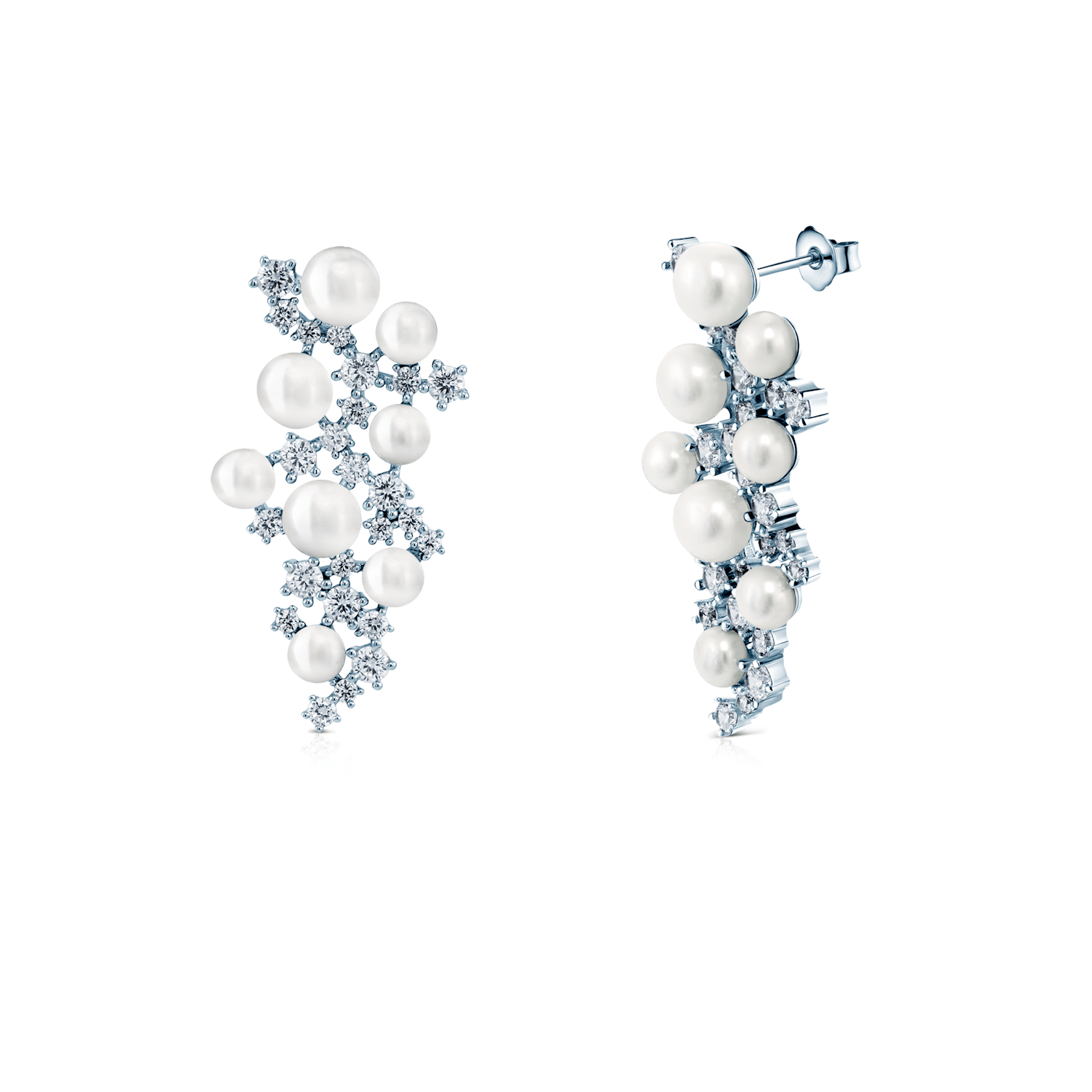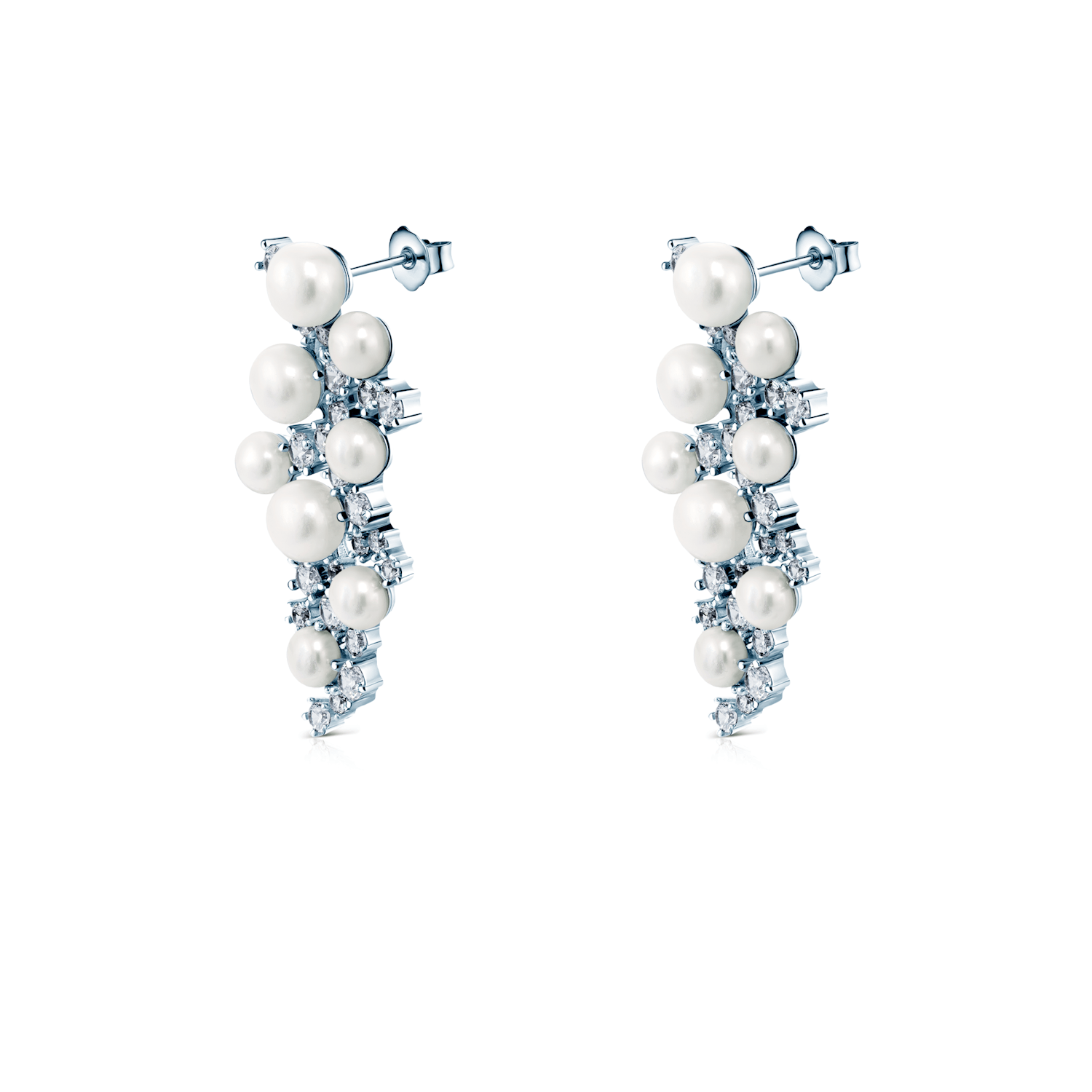 Kolczyki SAVICKI ze srebra próby 925 emanują blaskiem i harmonią. Kompozycję tworzą świetliste perły, otulone połyskiem cyrkonii, które wspólnie układają się w zjawiskowy wzór inspirowany naturą.