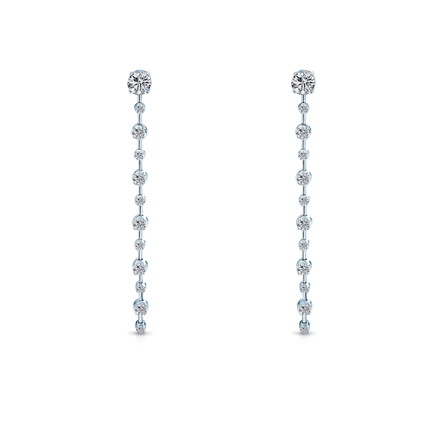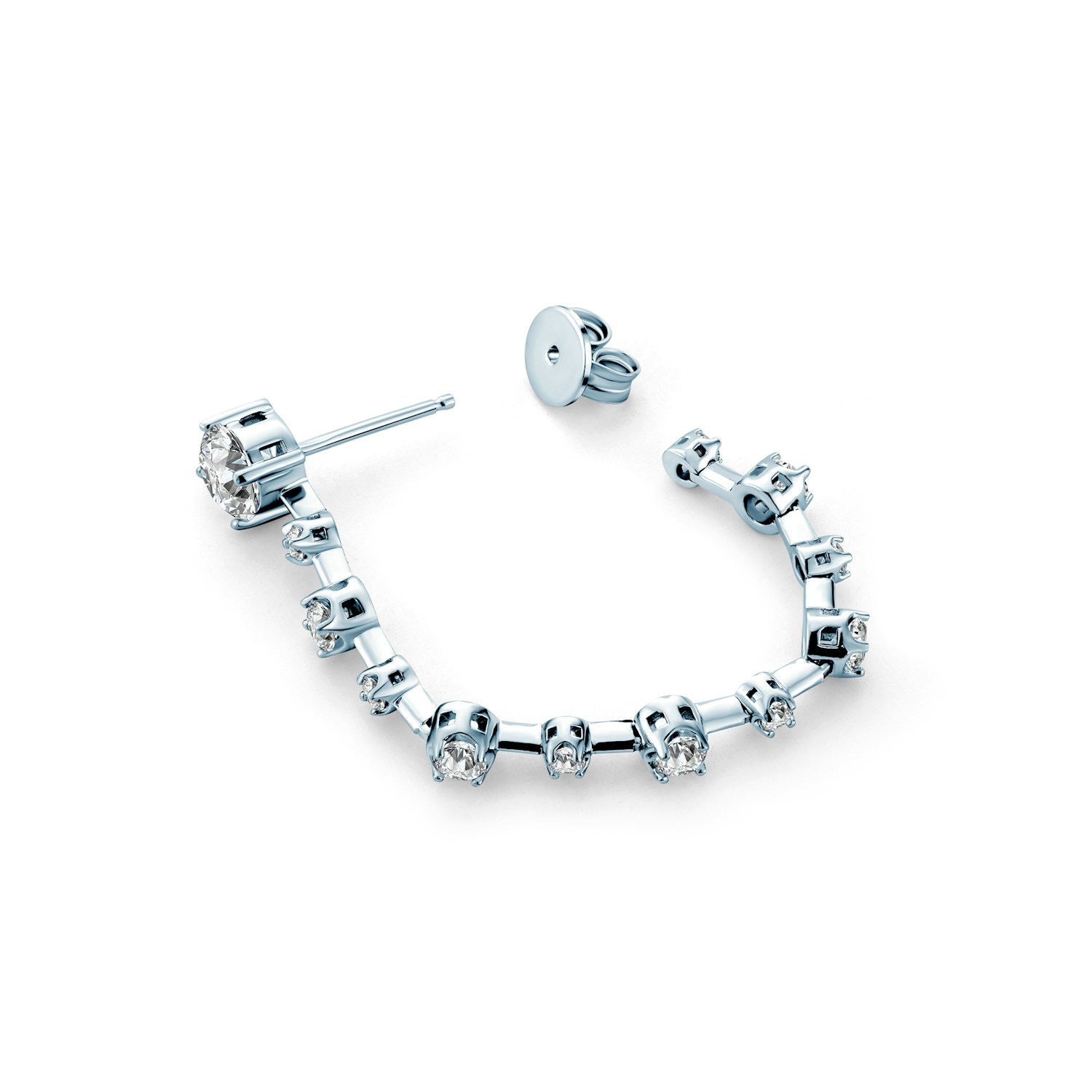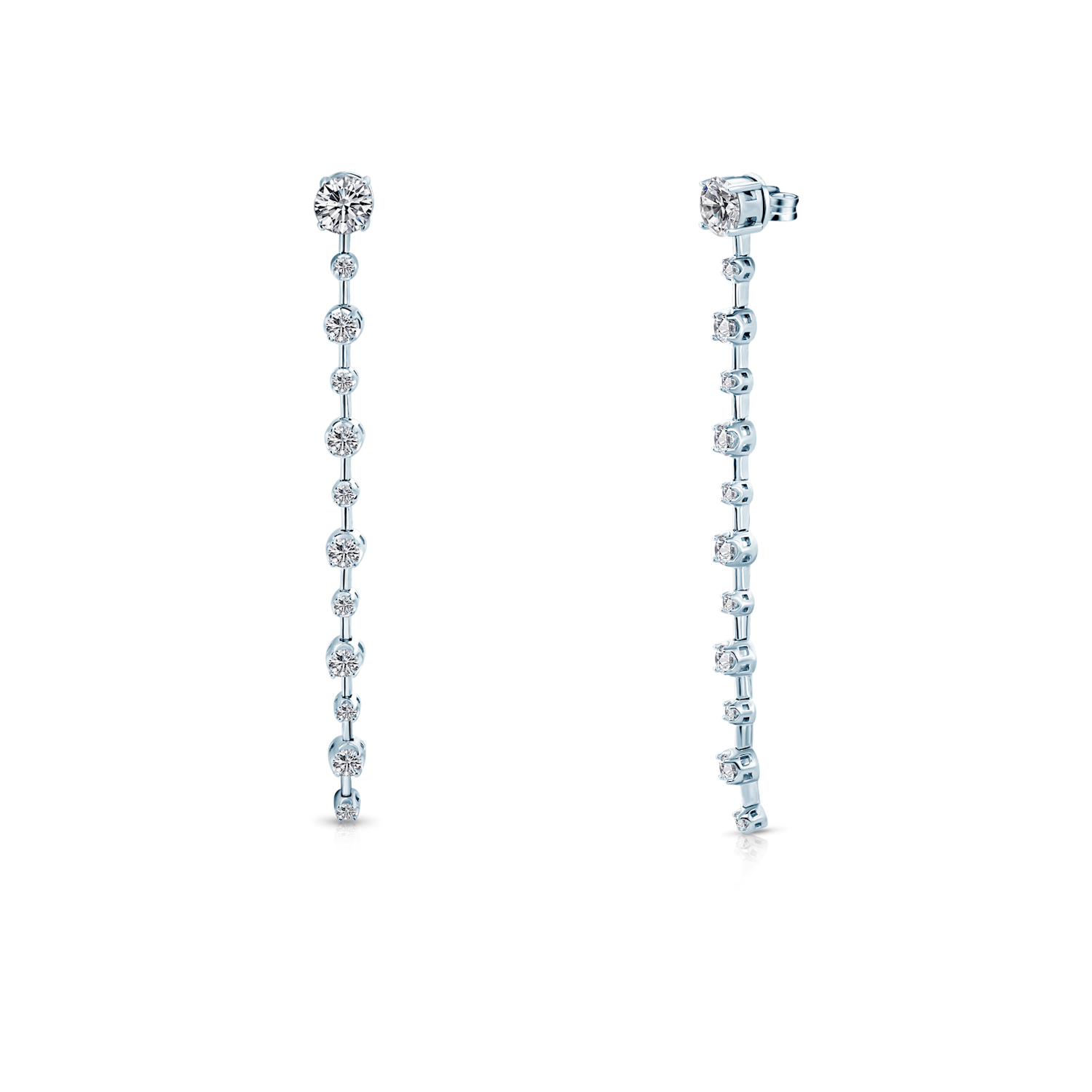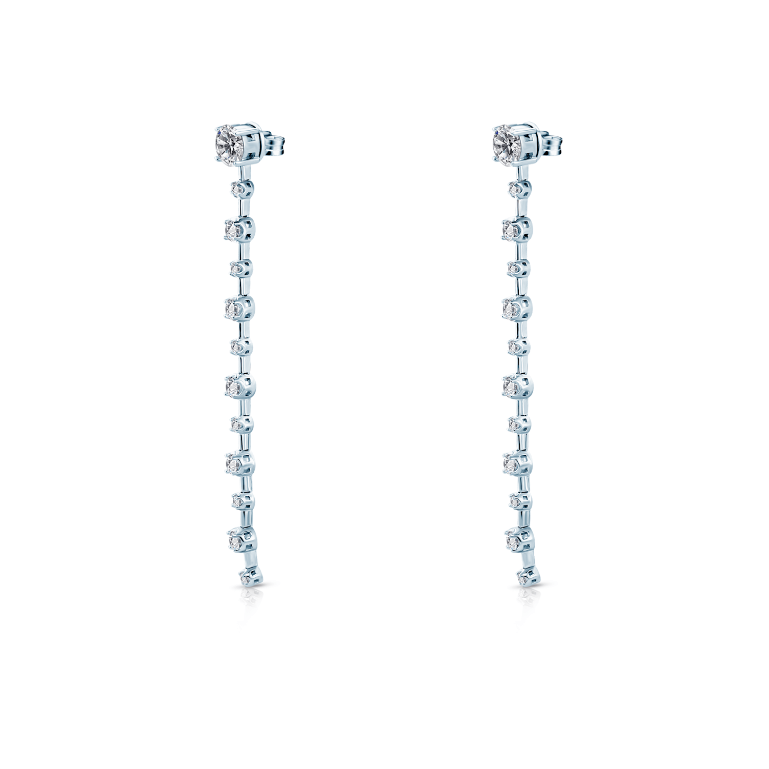 Kolczyki SAVICKI ze srebra próby 925 zachwycają elegancją i pełnym blasku wykończeniem. Delikatna linia ozdobiona rzędem cyrkonii układa się w długi, smukły kształt, który pięknie podkreśla rysy twarzy.