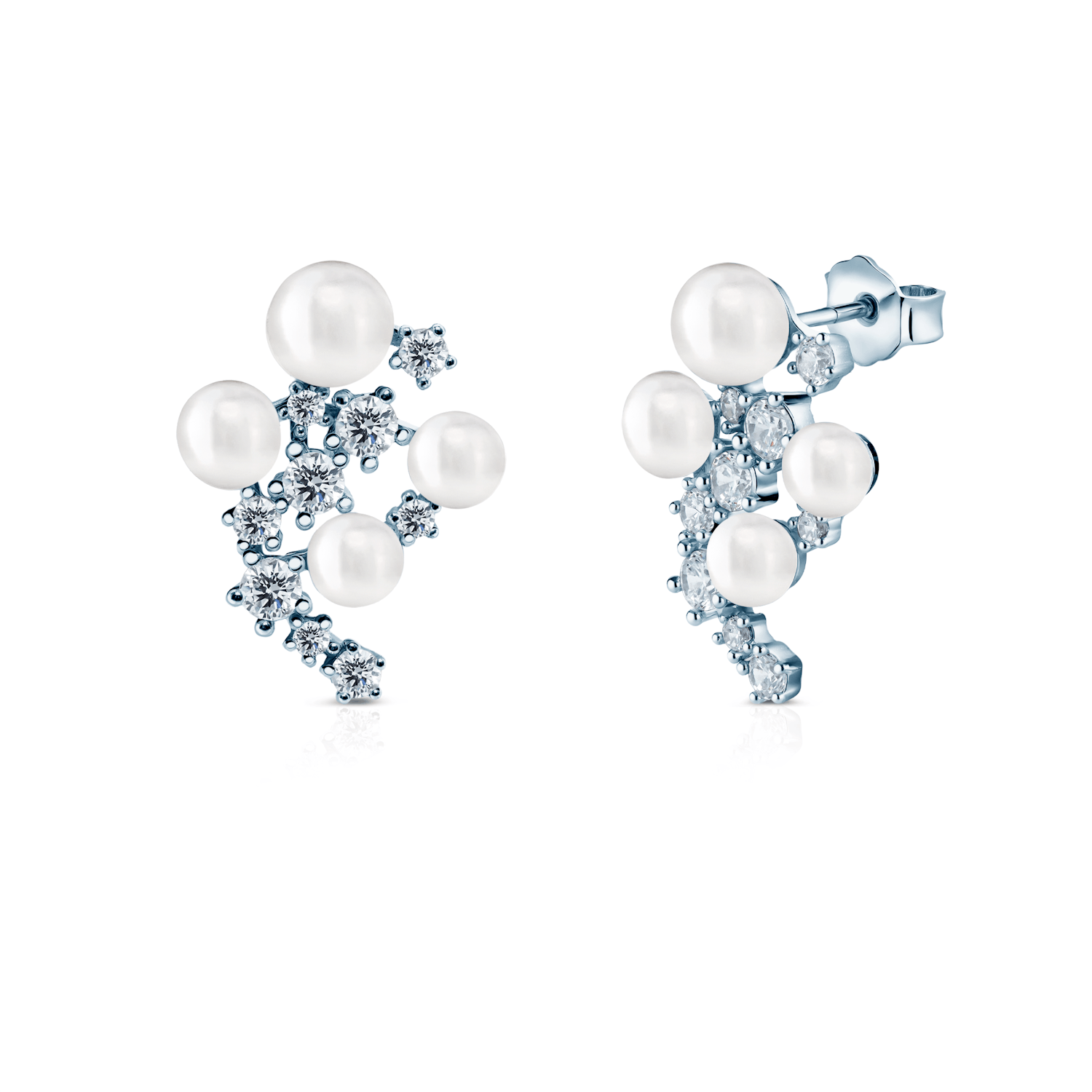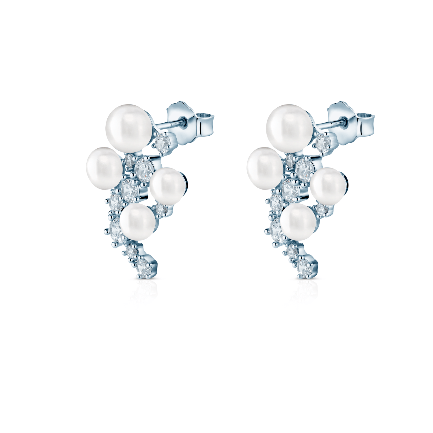 Kolczyki SAVICKI ze srebra próby 925 łączą blask cyrkonii z klasycznym urokiem pereł. Kompozycja drobnych kamieni i lśniących pereł układa się w elegancki wzór, który przyciąga wzrok subtelnym światłem.