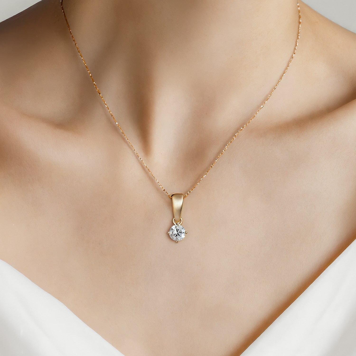 Zawieszka wykonana z 14-karatowego żółtego złota (próba 0,585). W zawieszce został osadzony diament o szlifie brylantowym, wysokiej czystości SI1/G, o masie 0,1 ct.