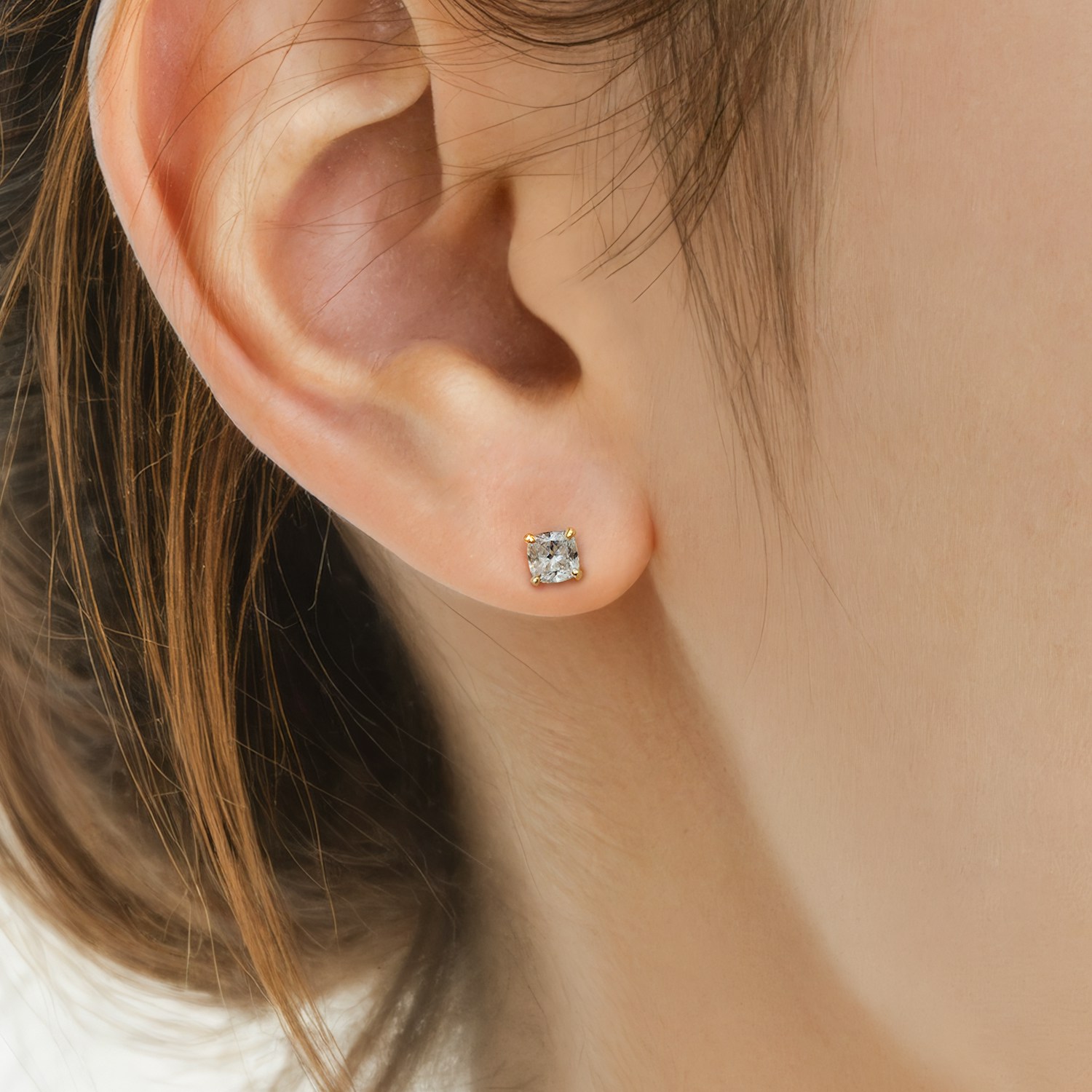 Olśniewające kolczyki z kolekcji SAVICKI. W kolczykach osadzono dwa diamenty o łącznej masie 0,18 ct w szlifie poduszkowym o nieskazitelnej barwie i czystości SI2/H. Kolczyki zostały wykonane z żółtego złota(próba 585).