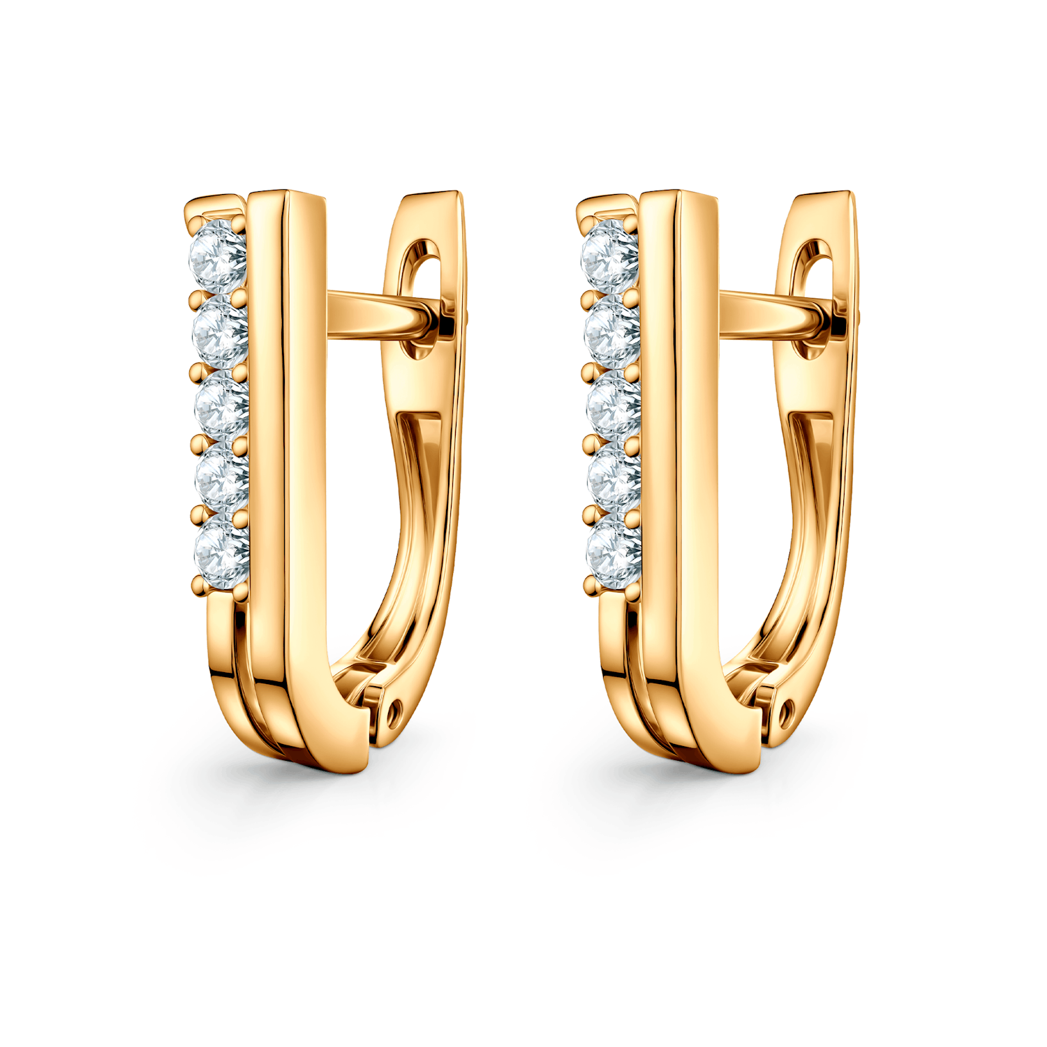 Olśniewające kolczyki z kolekcji SAVICKI. W kolczykach osadzono 10 diamentów o łącznej masie 0,145 ct w szlifie brylantowym o nieskazitelnej barwie i czystości SI2/H. Kolczyki zostały wykonane z żółtego złota (próba 585).