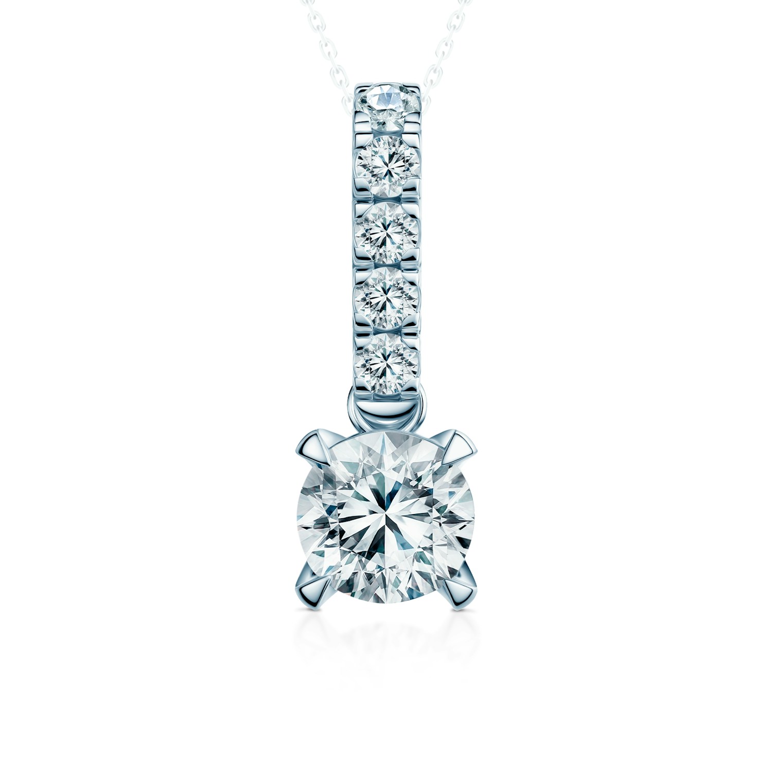 Olśniewająca zawieszka z kolekcji SAVICKI. W zawieszce osadzono główny diament o masie 0,14 ct w szlifie brylantowym o nieskazitelnej barwie i czystości SI2/H oraz siedem diamentów o łącznej masie 0,025 ct. Zawieszka została wykonana z białego złota(próba 585).