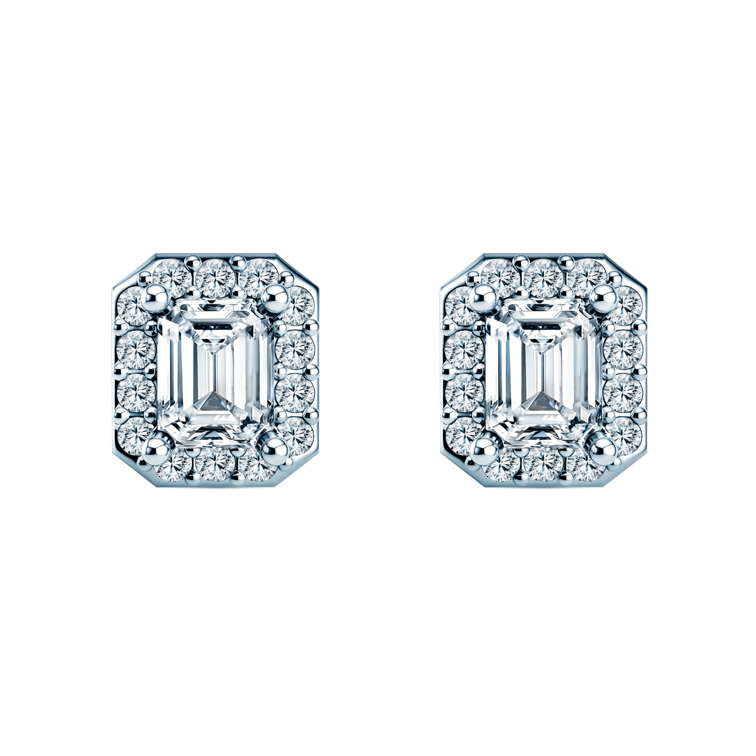 Kolczyki z 2 diamentami o łącznej masie 0,36 ct i szlifie szmaragdowym, 28 diamentami o łącznej masie 0,14ct i szlifie brylantowym wykonane z białego złota (próba 585).