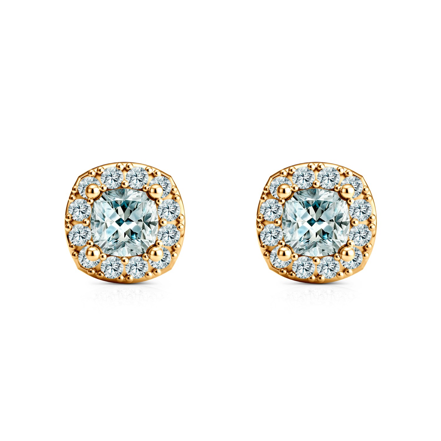 Kolczyki z 2 diamentami o łącznej masie 0,3 ct i szlifie poduszkowym, 24 diamentami o łącznej masie 0,12ct i szlifie brylantowym wykonane z żółtego złota (próba 585).