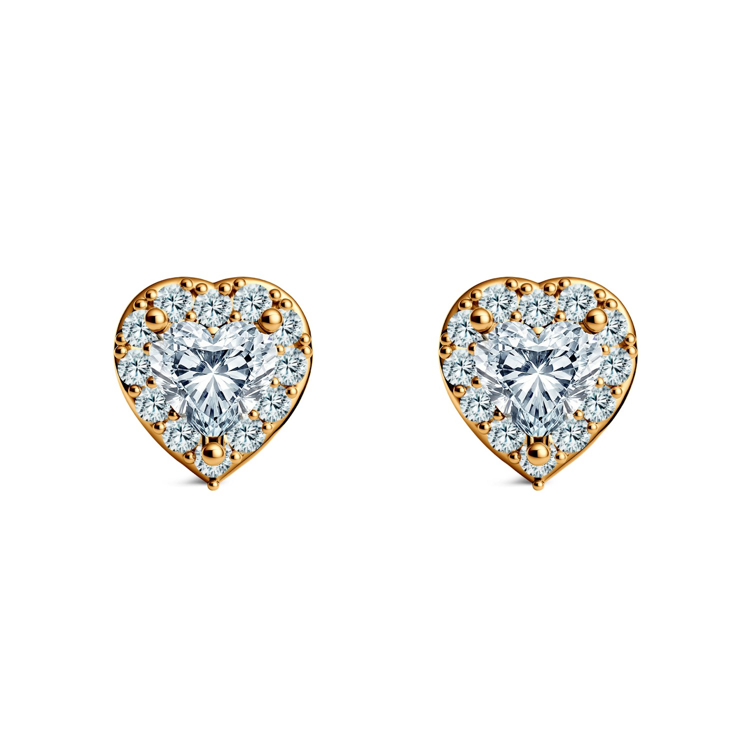 Kolczyki z 2 diamentami o łącznej masie 0,3 ct i szlifie serce, 24 diamentami o łącznej masie 0,12ct i szlifie brylantowym wykonane z żółtego złota (próba 585).