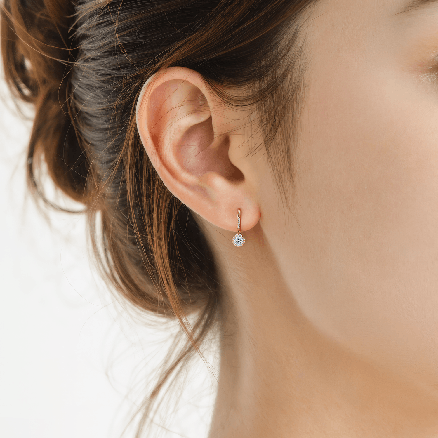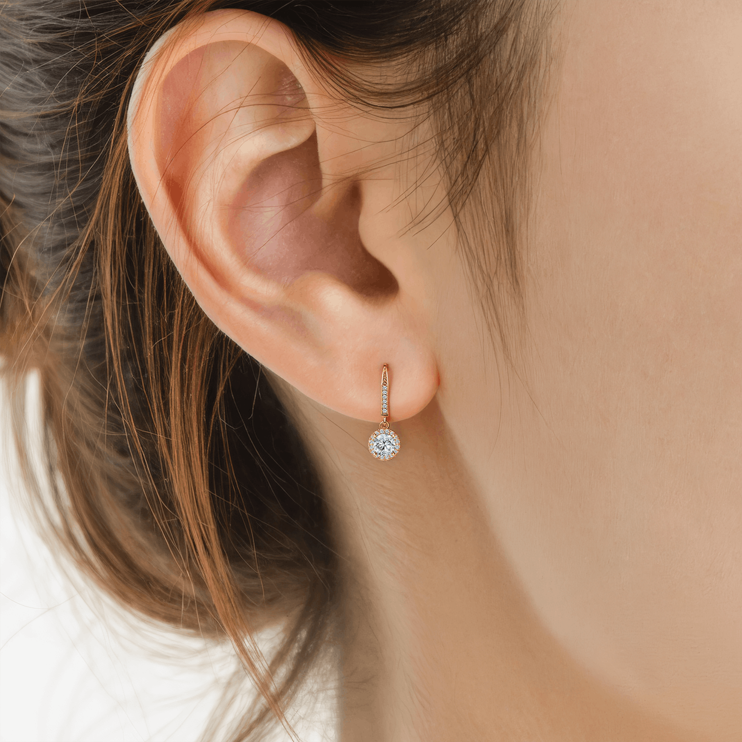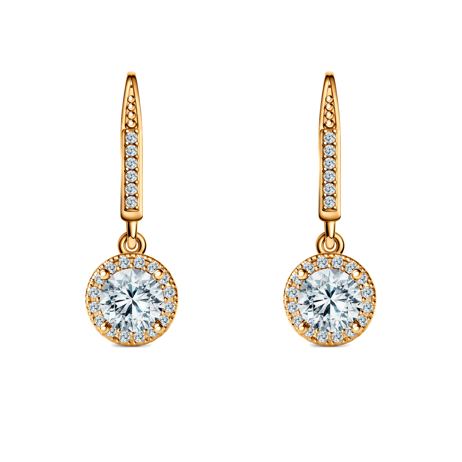 Kolczyki z 2 diamentami o łącznej masie 0,28 ct i szlifie brylantowym, 36 diamentami o łącznej masie 0,18ct i szlifie brylantowym wykonane z żółtego złota (próba 585).