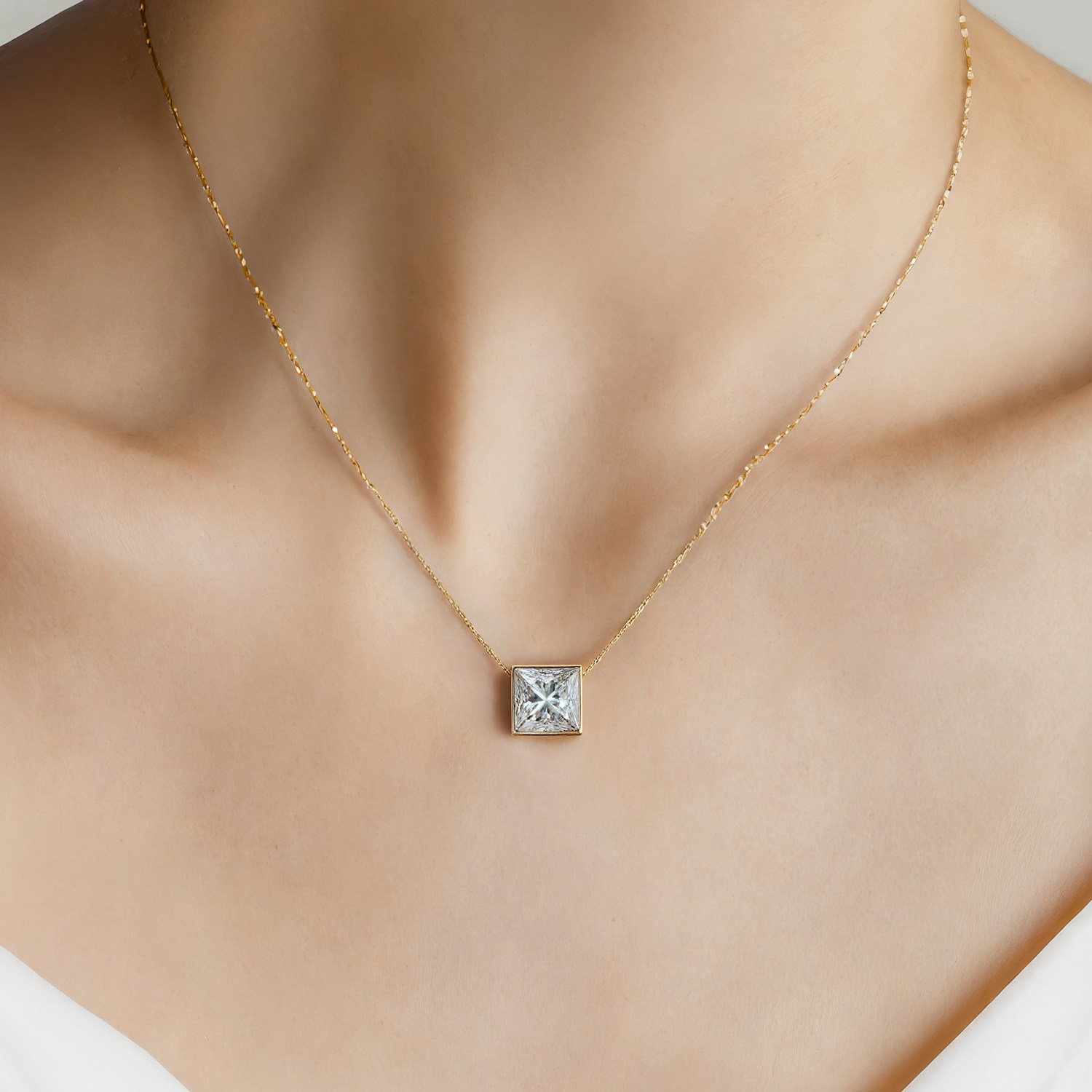 Naszyjnik Pure wykonany z żółtego złota (próba 585). W Naszyjniku osadzono diament o masie 0,08 ct. Długość naszyjnika: 42cm.