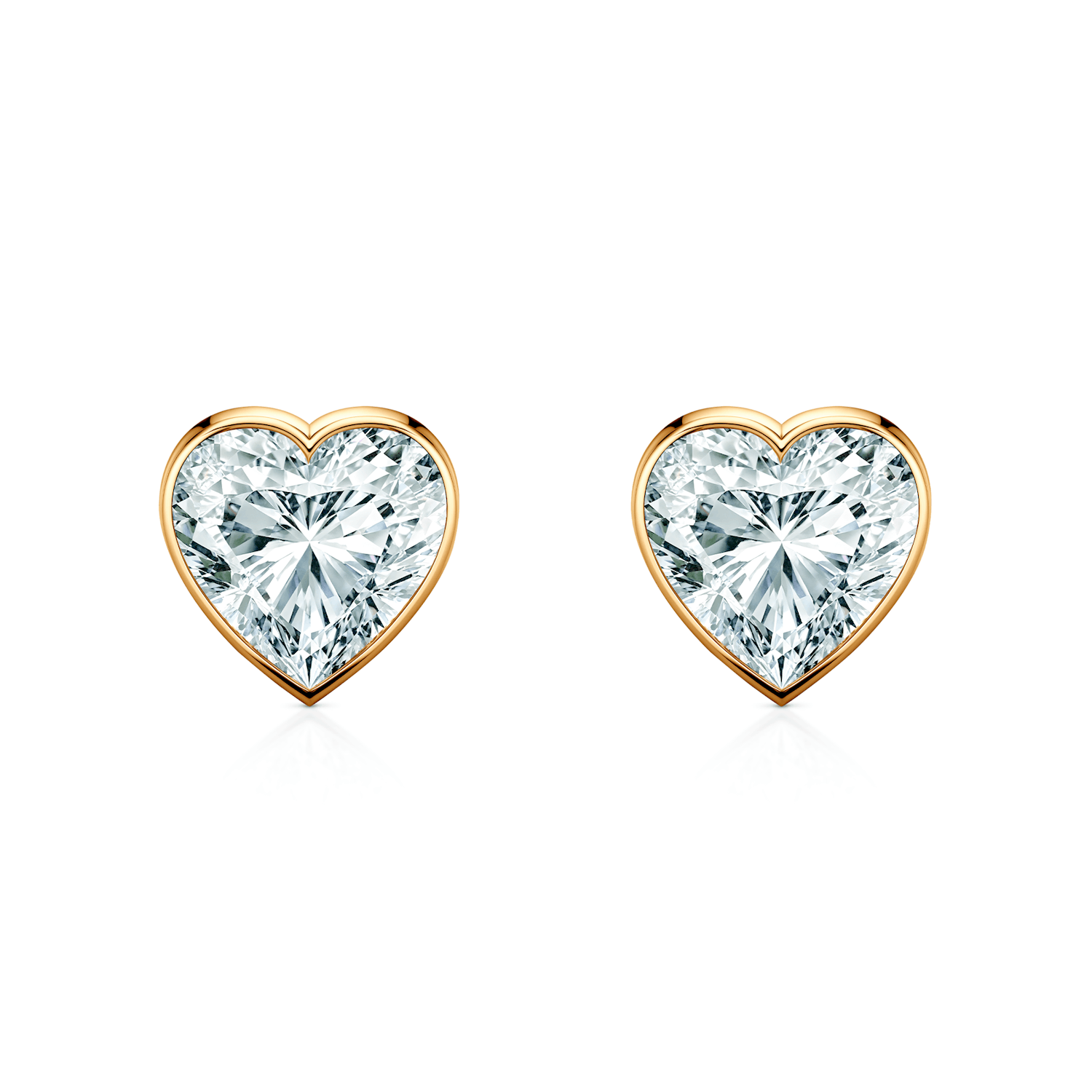 Kolczyki wykonane z 14-karatowego żółtego złota (próba 585). W kolczykach zostały osadzone diamenty o szlifie serce.