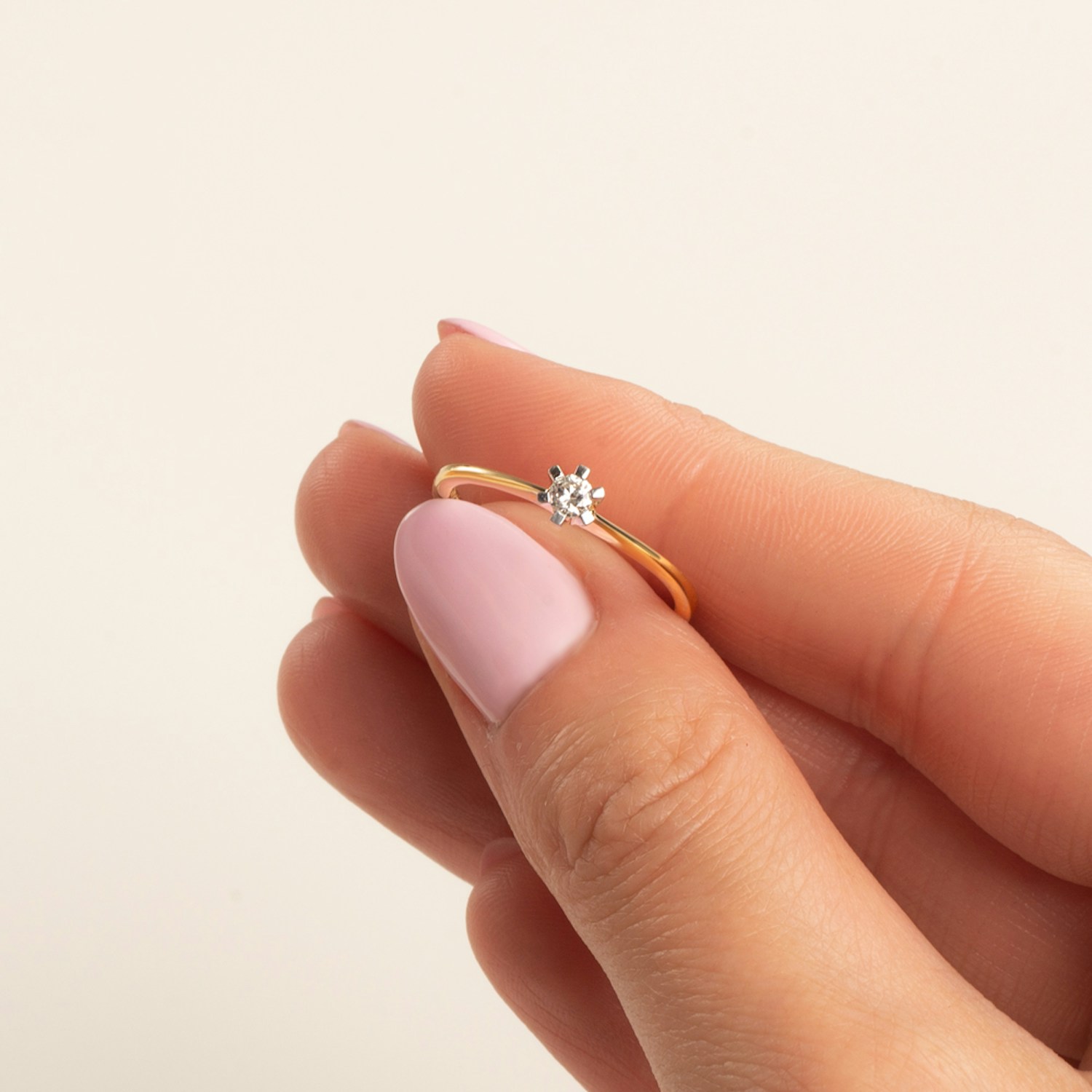 Pierścionek zaręczynowy z centralnie umieszczonym diamentem 0,10 ct o wysokiej jakości szlifie brylantowym i czystości SI/H. Wszystkie diamenty SAVICKI objęte są wieczystą gwarancją oraz posiadają oryginalny certyfikat jakości. Pierścionek z diamentem został wykonany z 14-karatowego żółtego złota (próba 585).