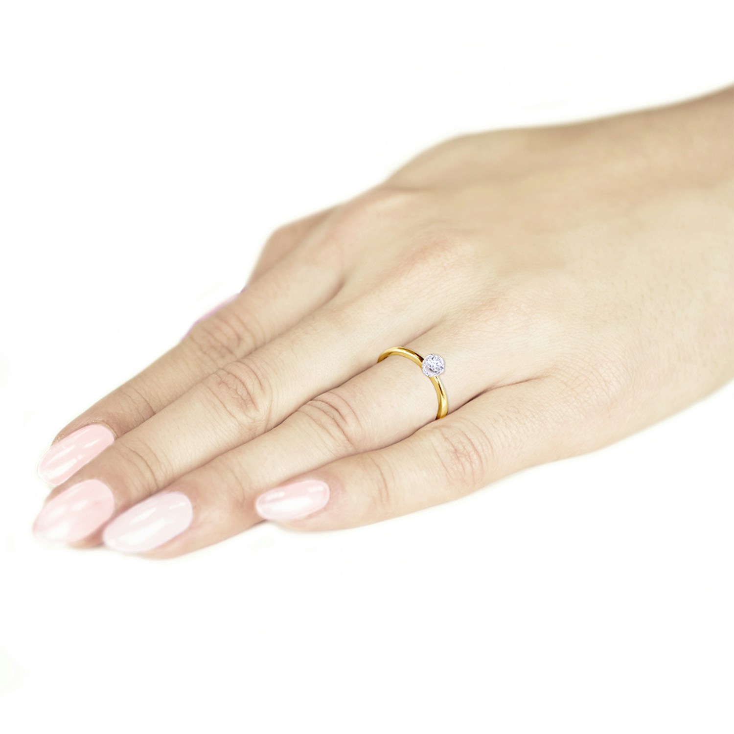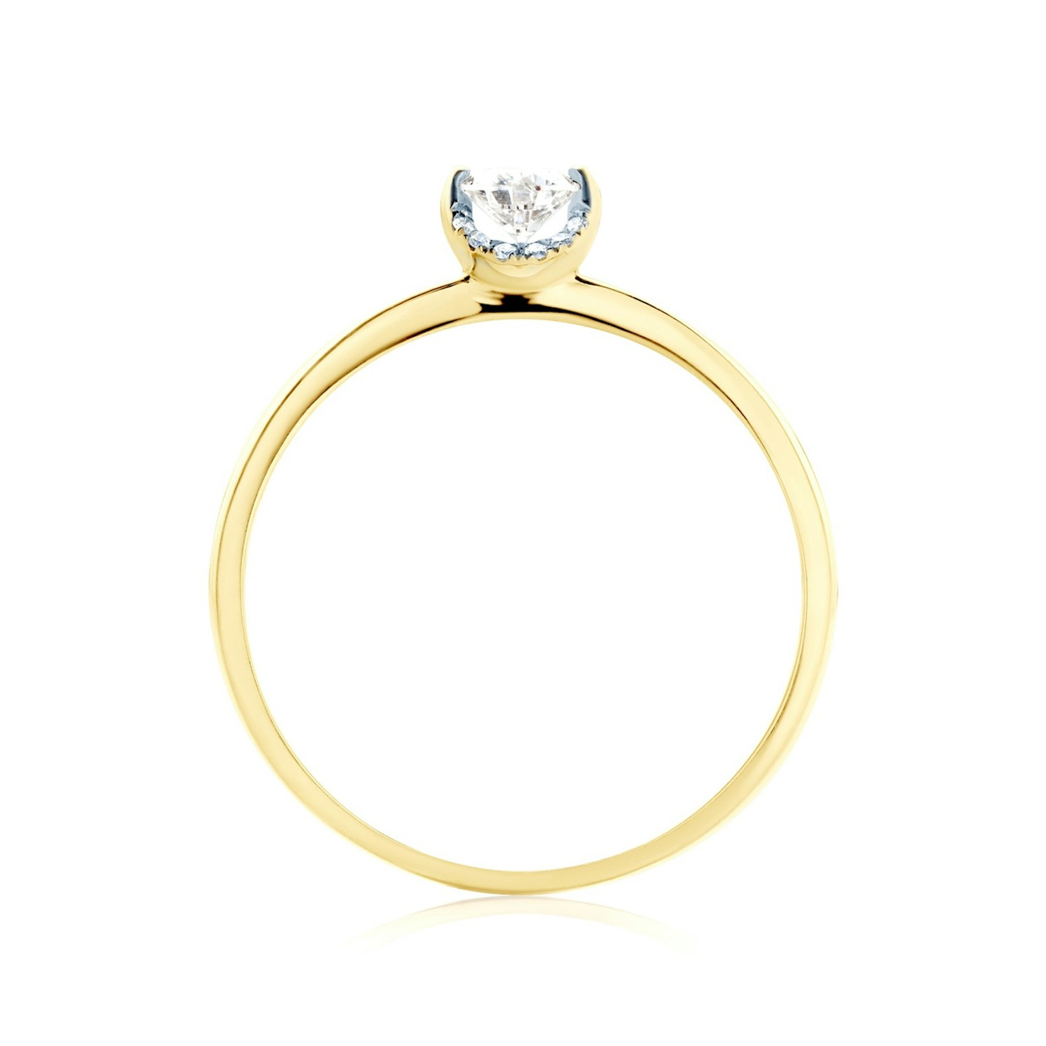 Pierścionek zaręczynowy z 11 diamentami o łącznej masie 0,18 ct, wysokiej jakości szlifie brylantowym i czystości SI/H. Wszystkie diamenty SAVICKI objęte są wieczystą gwarancją oraz posiadają oryginalny certyfikat jakości. Pierścionek z diamentem został wykonany z 14-karatowego żółtego złota (próba 585).