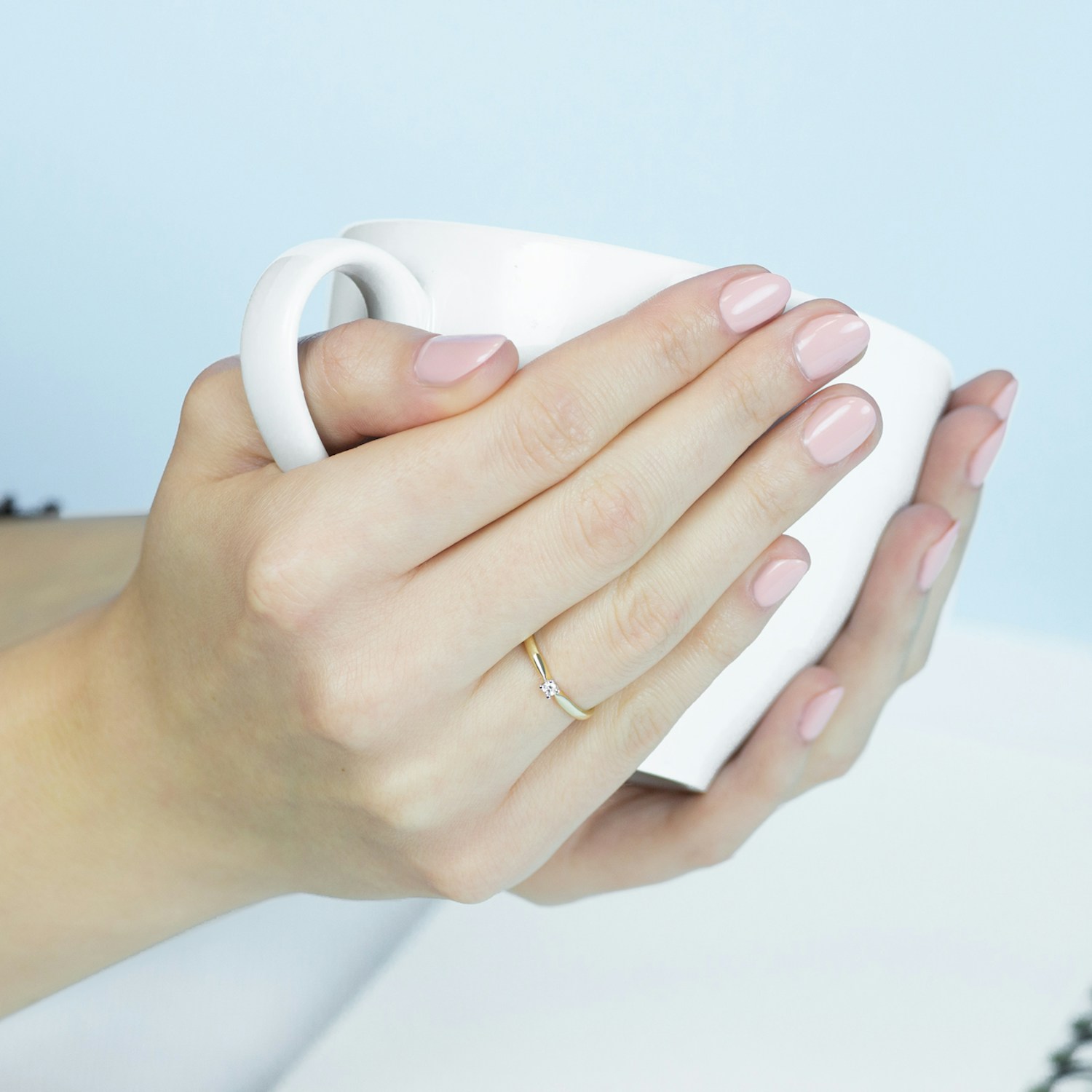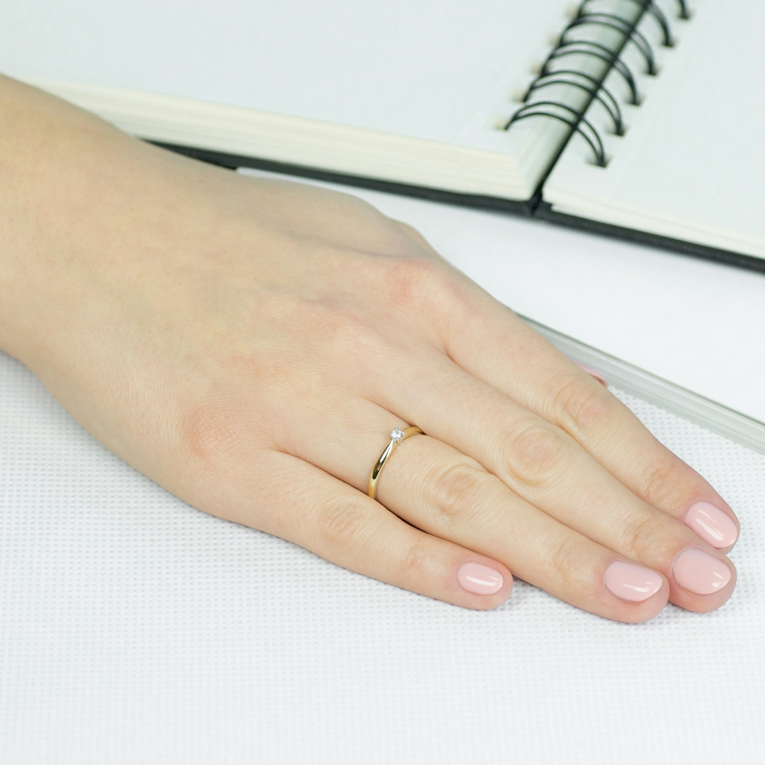 Pierścionek zaręczynowy z diamentem o masie 0,04 ct, szlifie brylantowym oraz wysokiej czystości SI/H, wykonany z połączenia 14-karatowego białego i żółtego złota (próba 585).