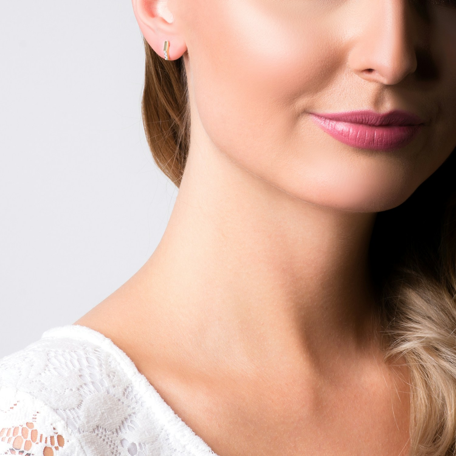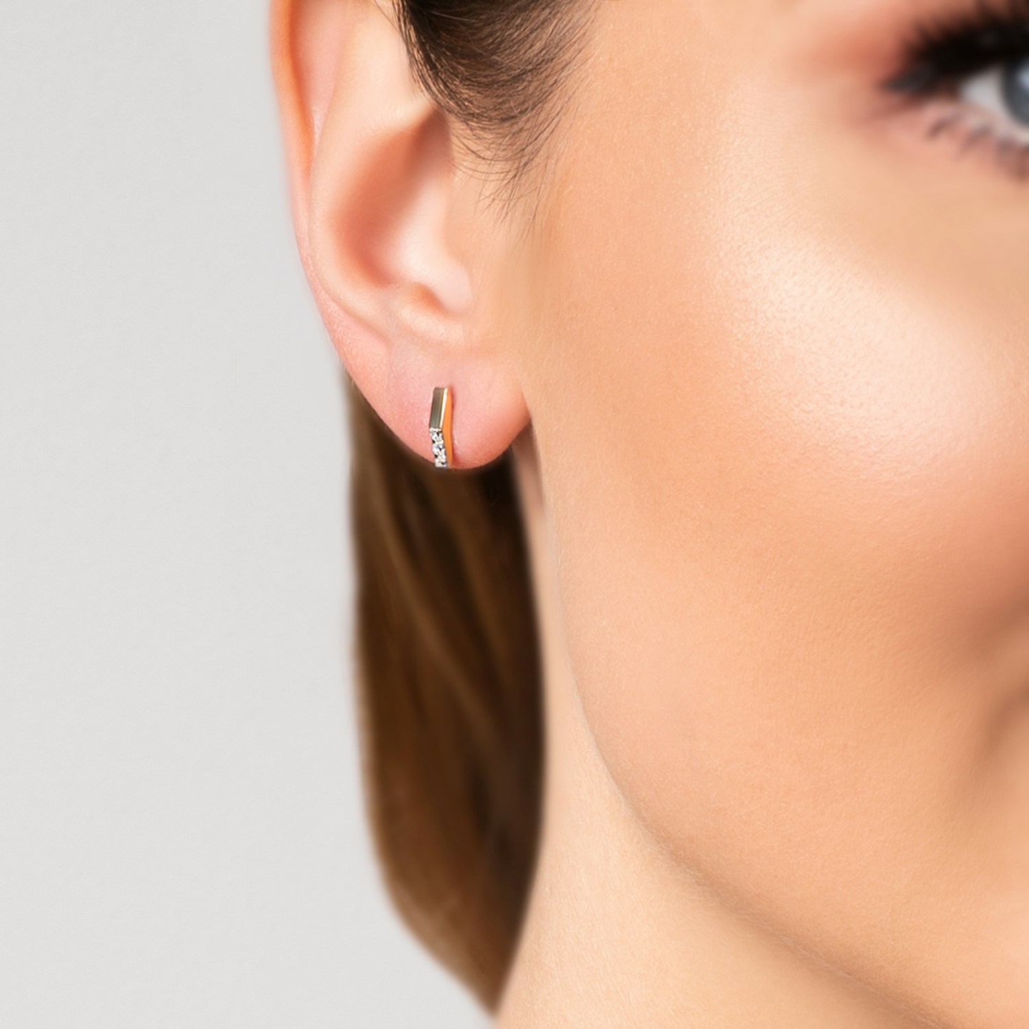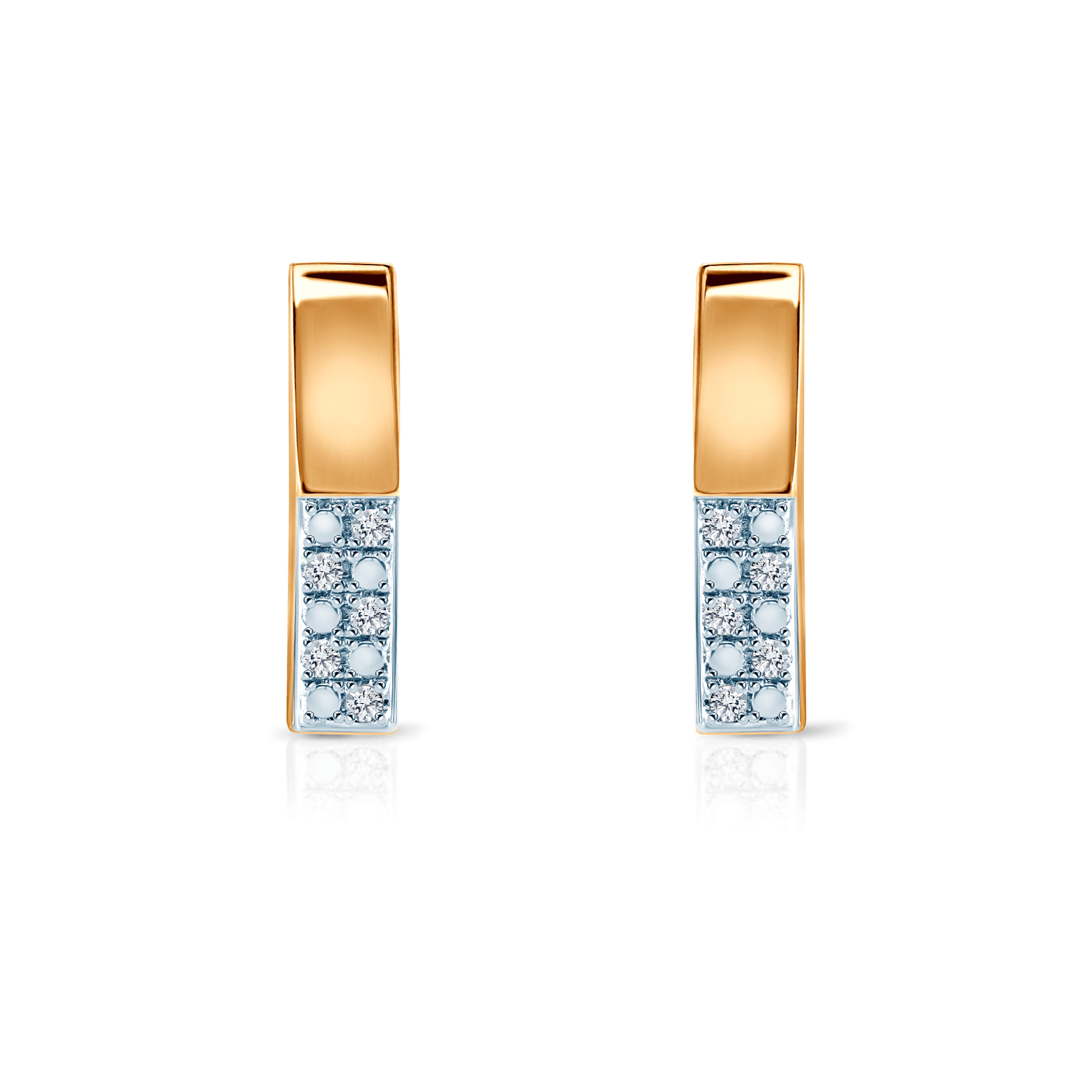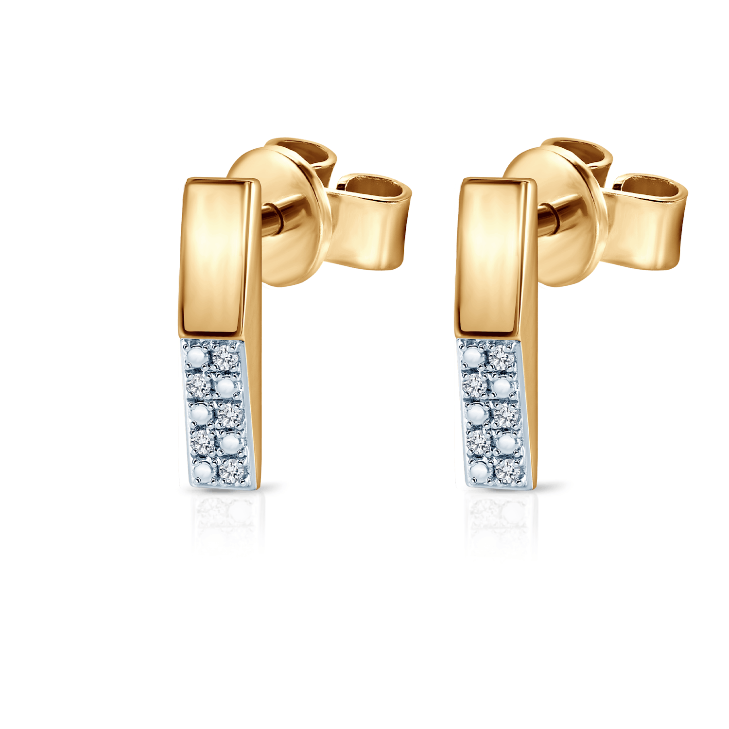 Kolczyki z 10 diamentami o łącznej masie 0,02 ct i szlifie brylantowym, wykonane z połączenia białego i żółtego złota(próba 585).