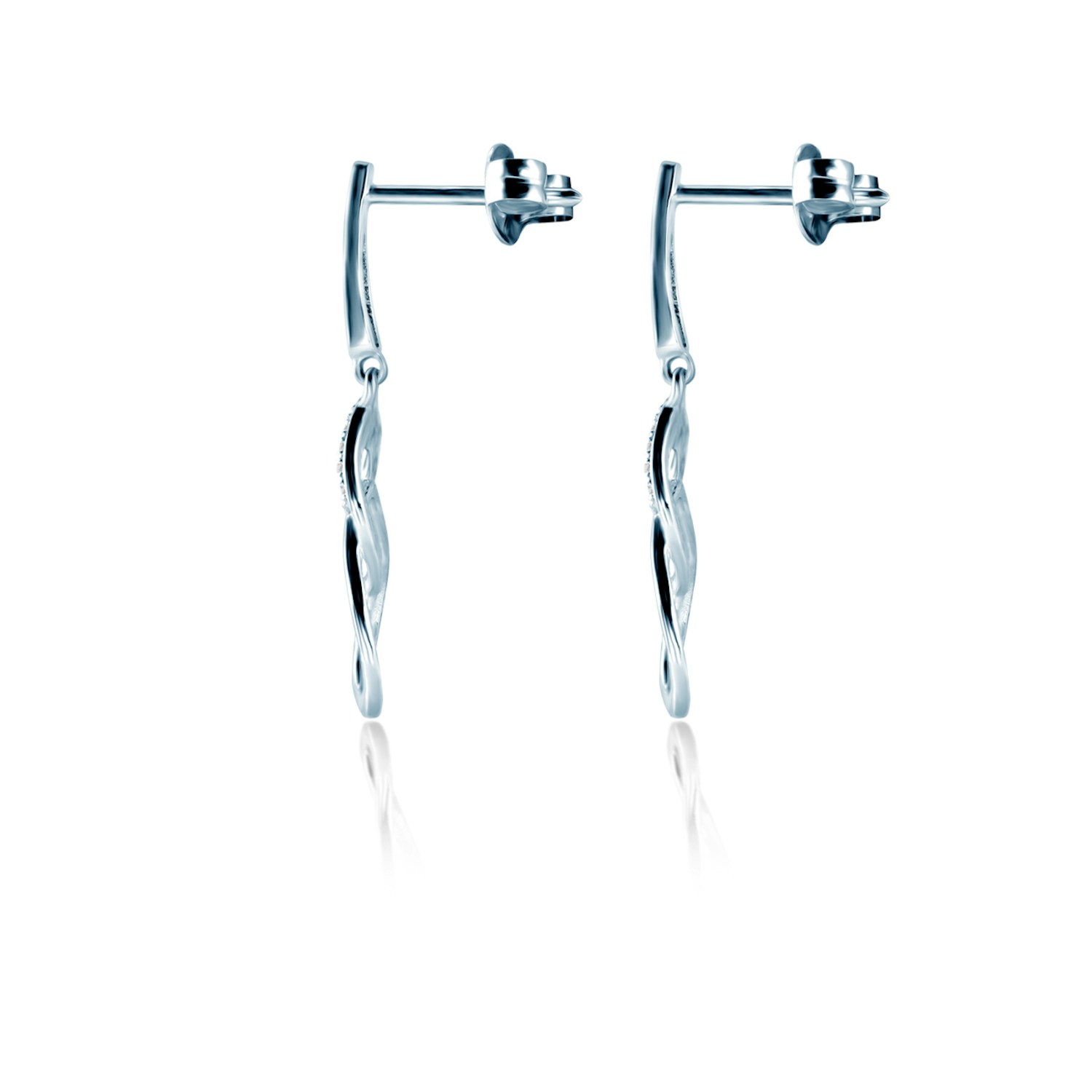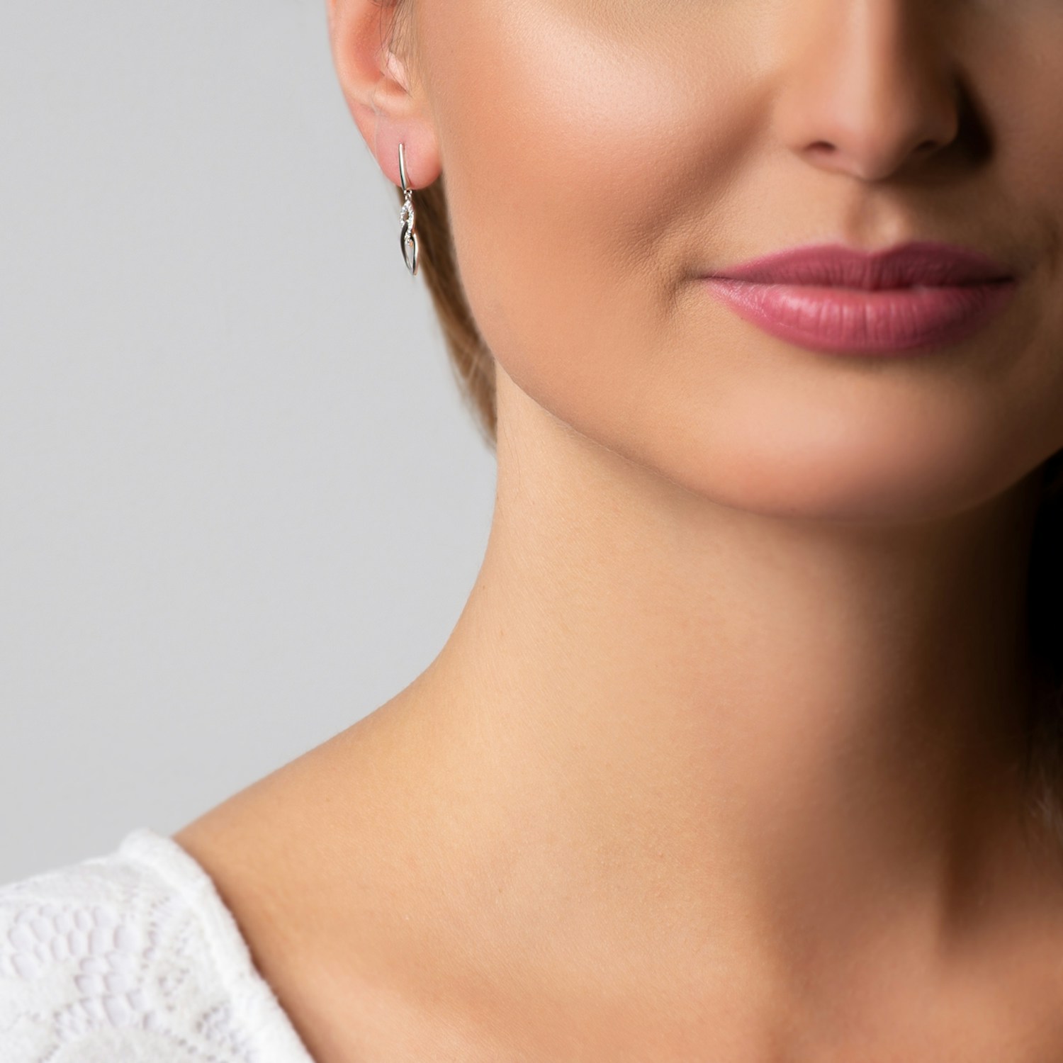 Kolczyki z 32 diamentami o łącznej masie 0,06 ct i szlifie brylantowym, wykonane z 14-karatowego białego złota (próba 585).