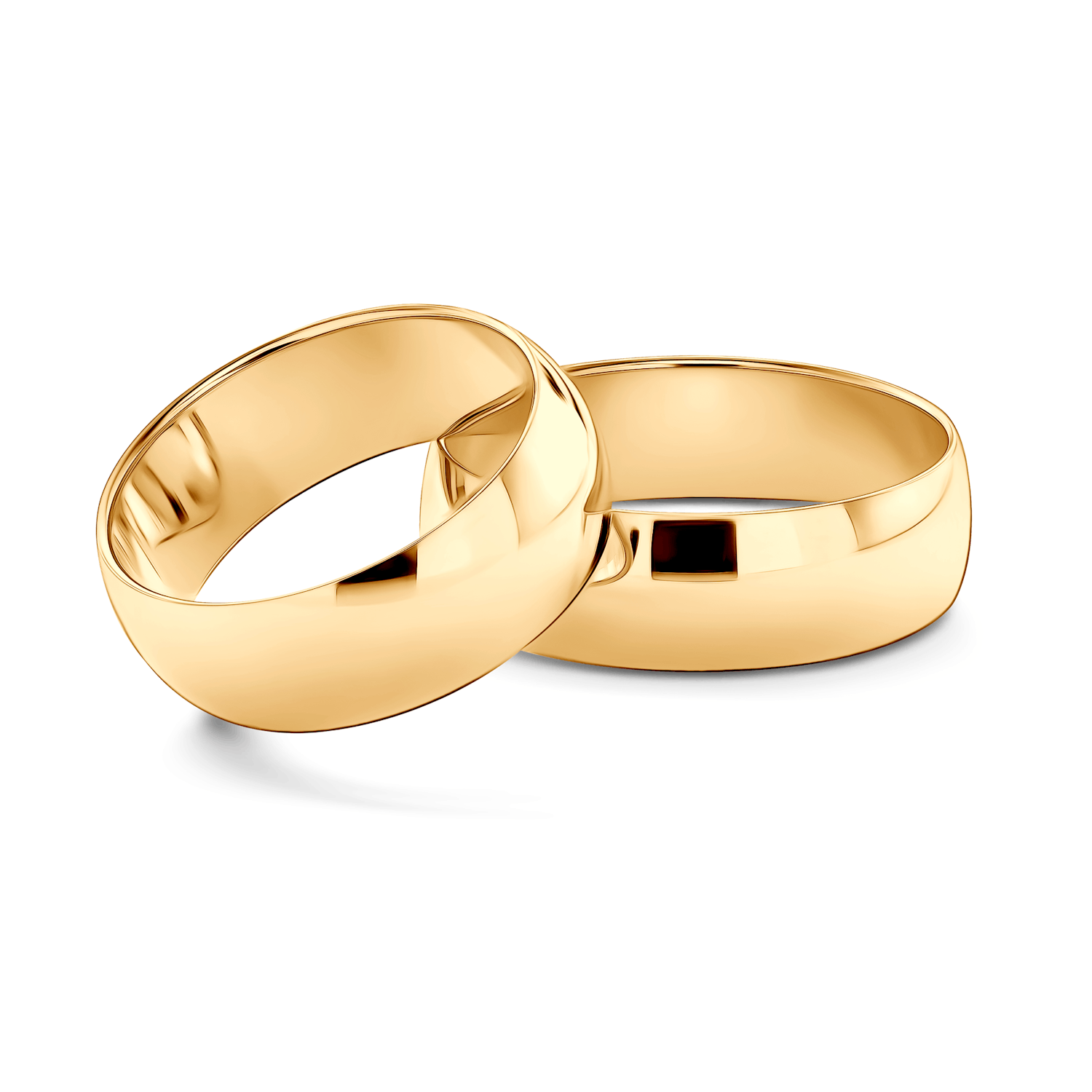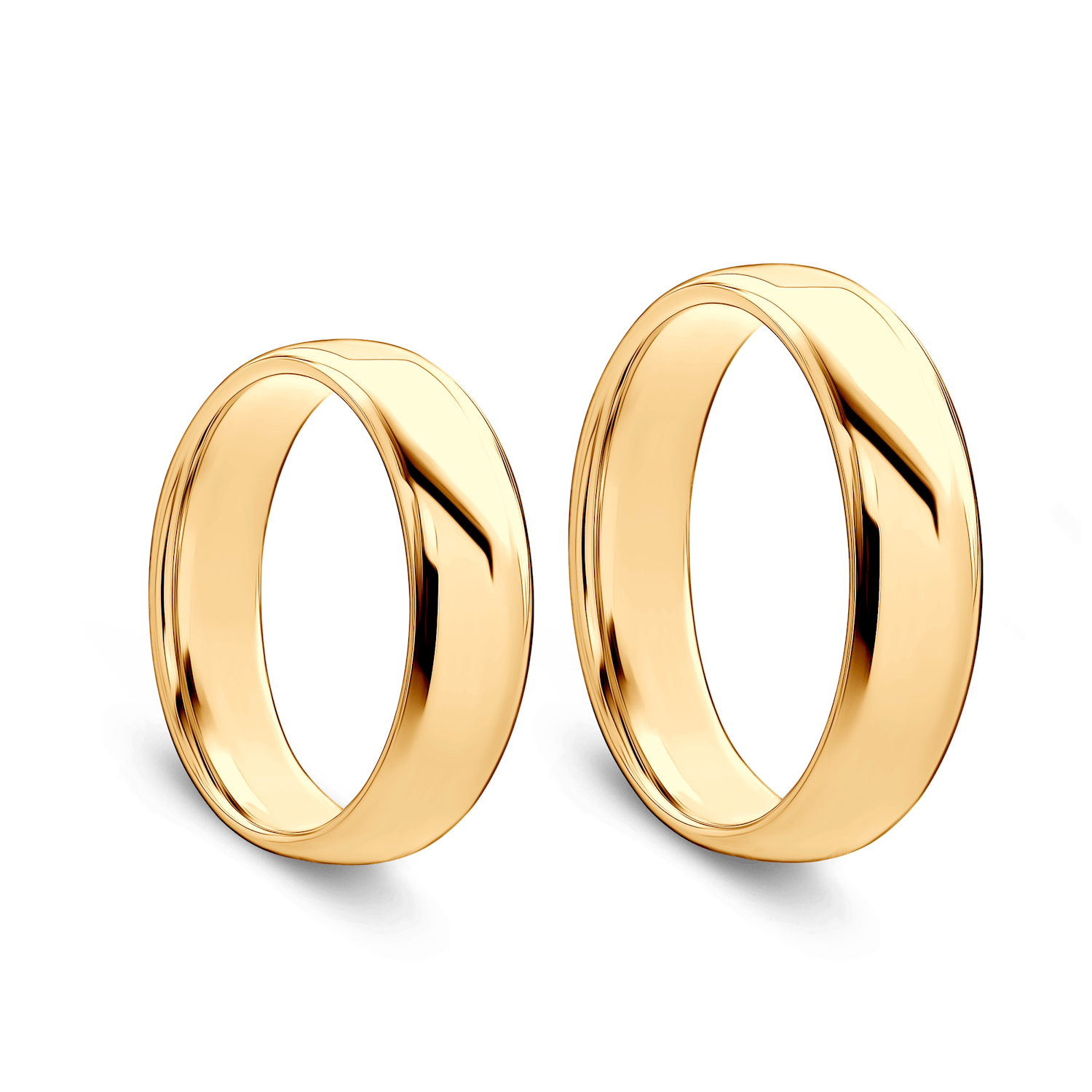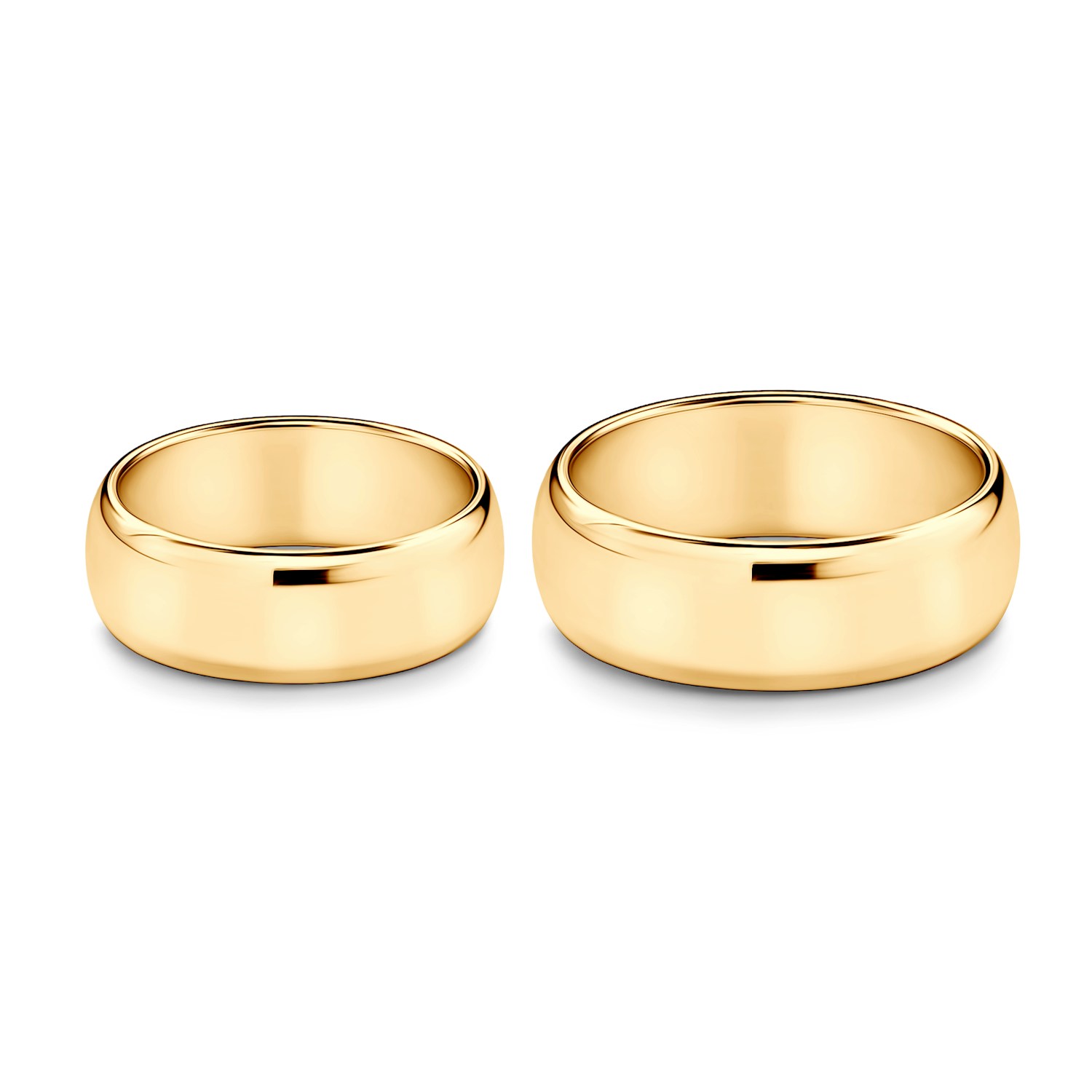 Obrączki ślubne półokrągłe o klasycznym wzorze, wykonane z żółtego złota (próba 0,333/0,585/0,750), o szerokości 7 mm.