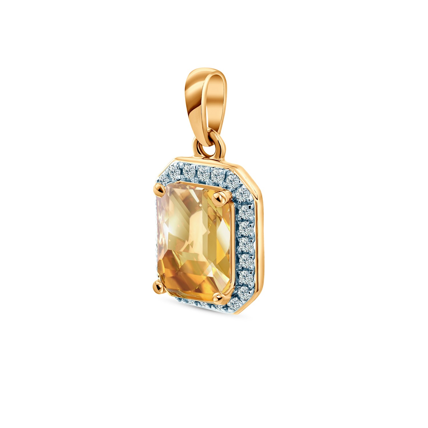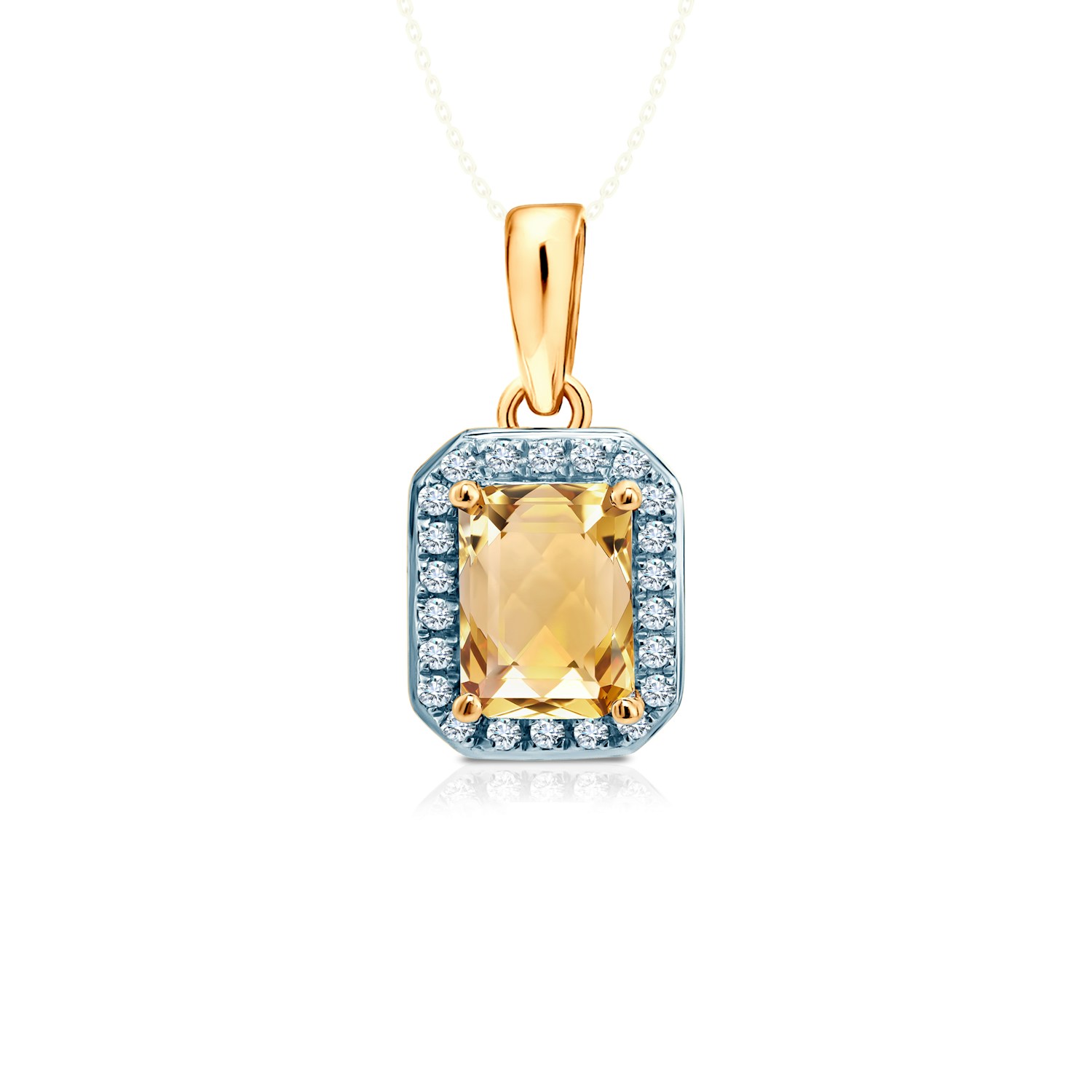 Zawieszka z jednym cytrynem o szlifie szmaragdowym o łącznej masie 3,13 ct oraz 34 diamentami o szlifie brylantowym o łącznej masie 0,12 ct, wykonane z połączenia białego i złota (próba 585).