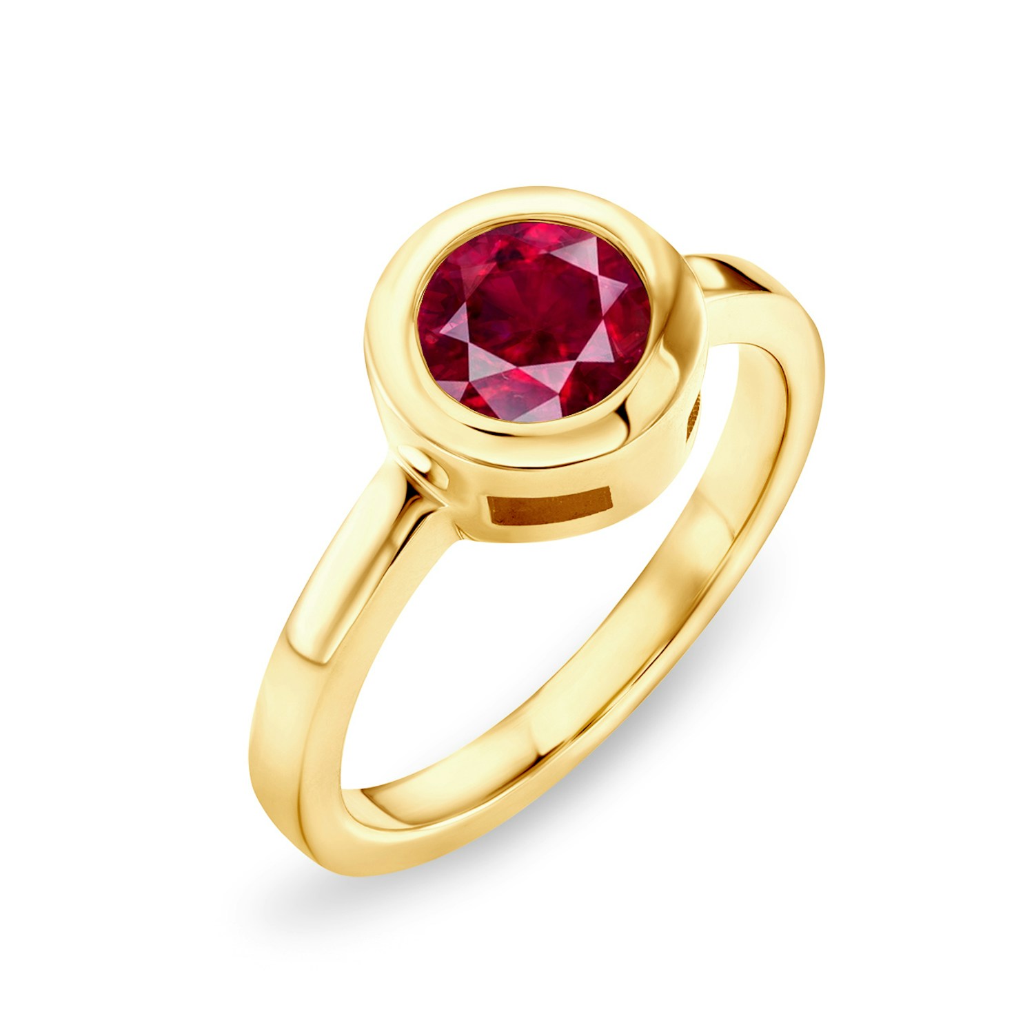 Pierścionek zaręczynowy z rubinem o masie 1,00 ct, wykonany z 14-karatowego żółtego złota (próba 0,585).