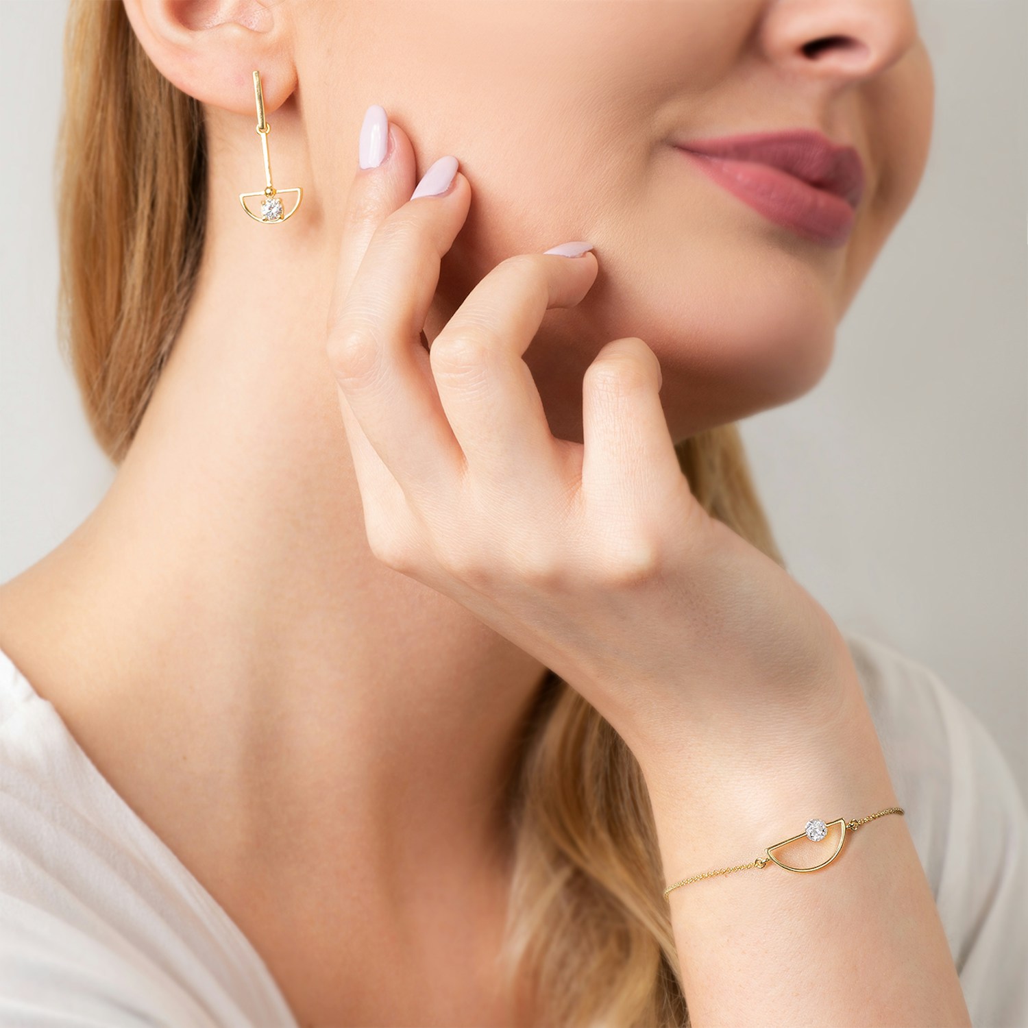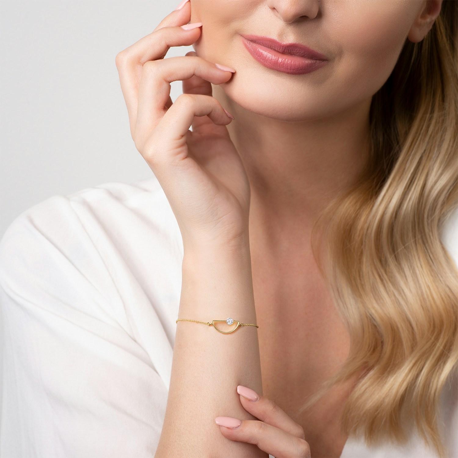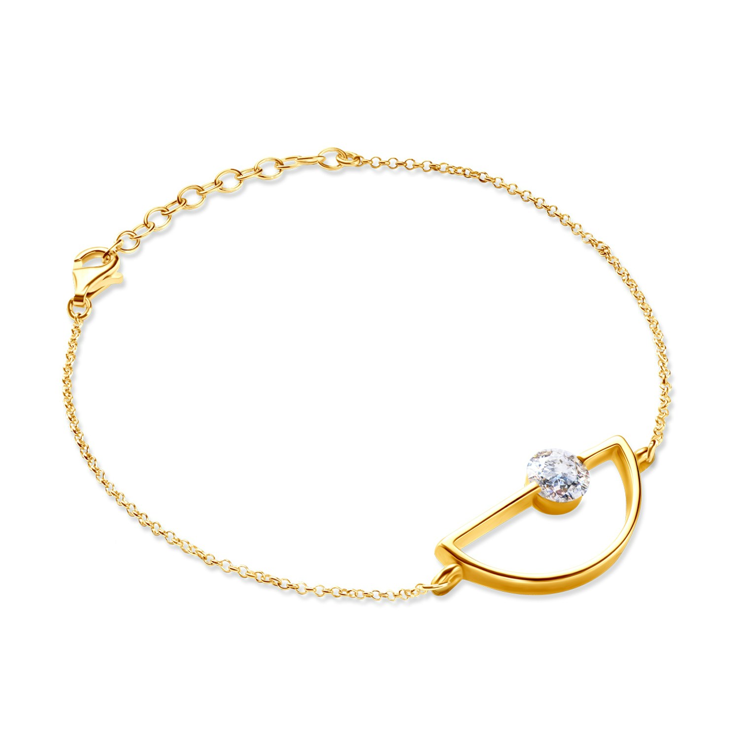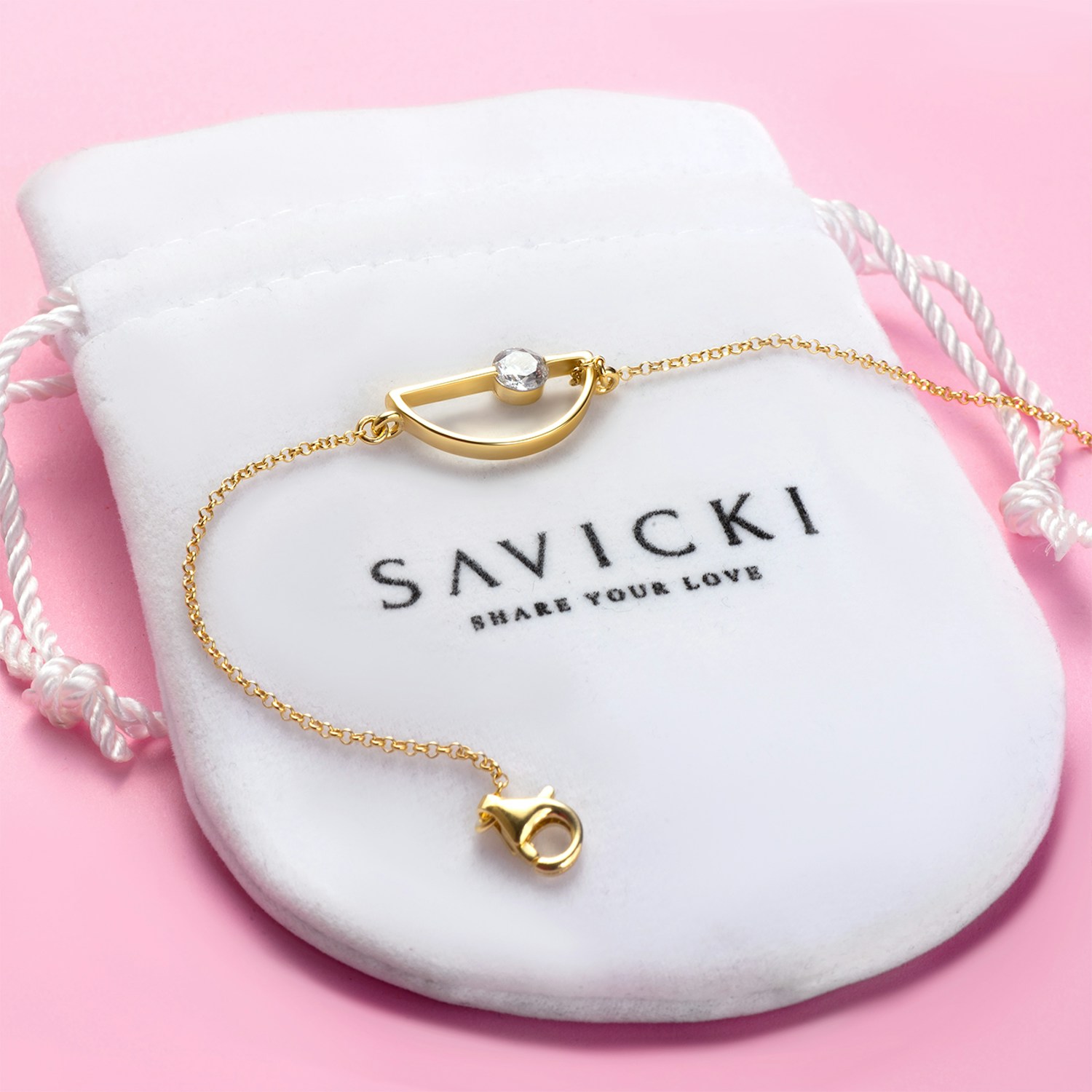 Bransoletka celebrytka Savicki wykonana ze srebra (próba 925) o długości 19 cm, pozłocona 22-karatowym żółtym złotem. W bransoletce została osadzona cyrkonia o szlifie brylantowym.