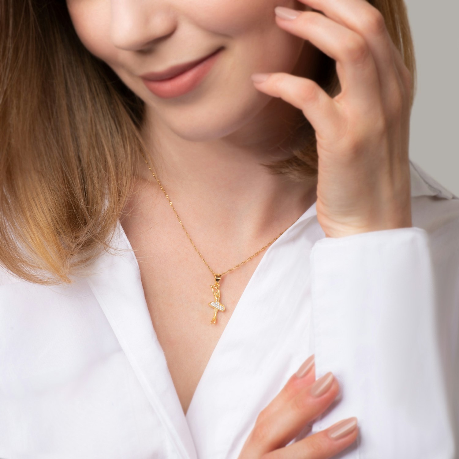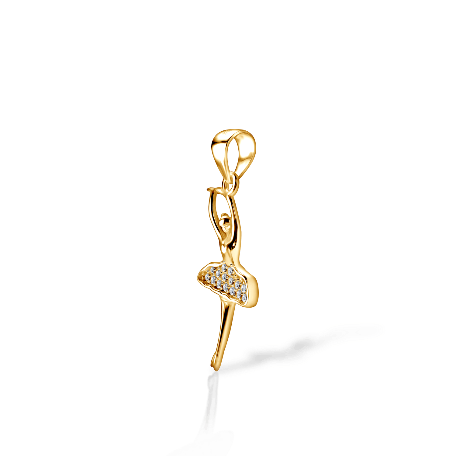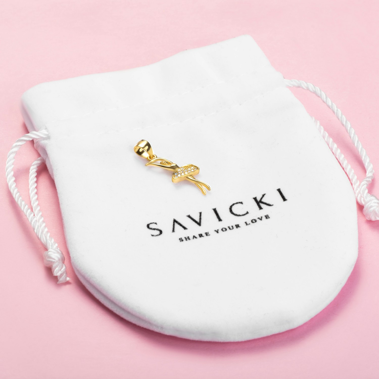 Zawieszka baletnica Savicki wykonana ze srebra (próba 925) pozłocona 22-karatowym żółtym złotem. W zawieszce zostało osadzonych 15 cyrkonii o szlifie brylantowym.