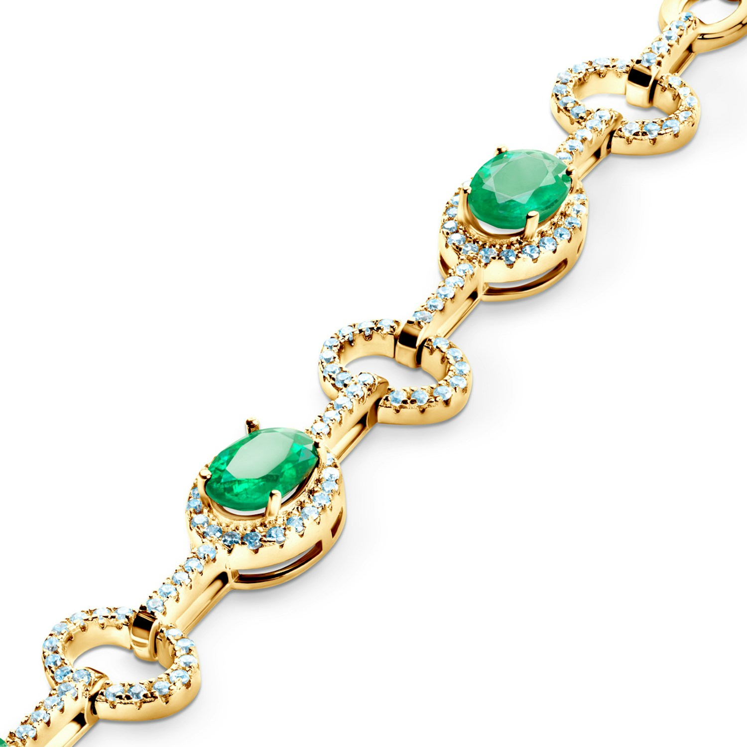 Bransoletka wykonana z 14-karatowego żółtego złota (próba 0,585). W bransoletce zostały osadzone szmaragdy o łącznej masie 2,28 ct oraz diamenty o łącznej masie 0,78 ct o nieskazitelnej barwie i czystości SI2/H.