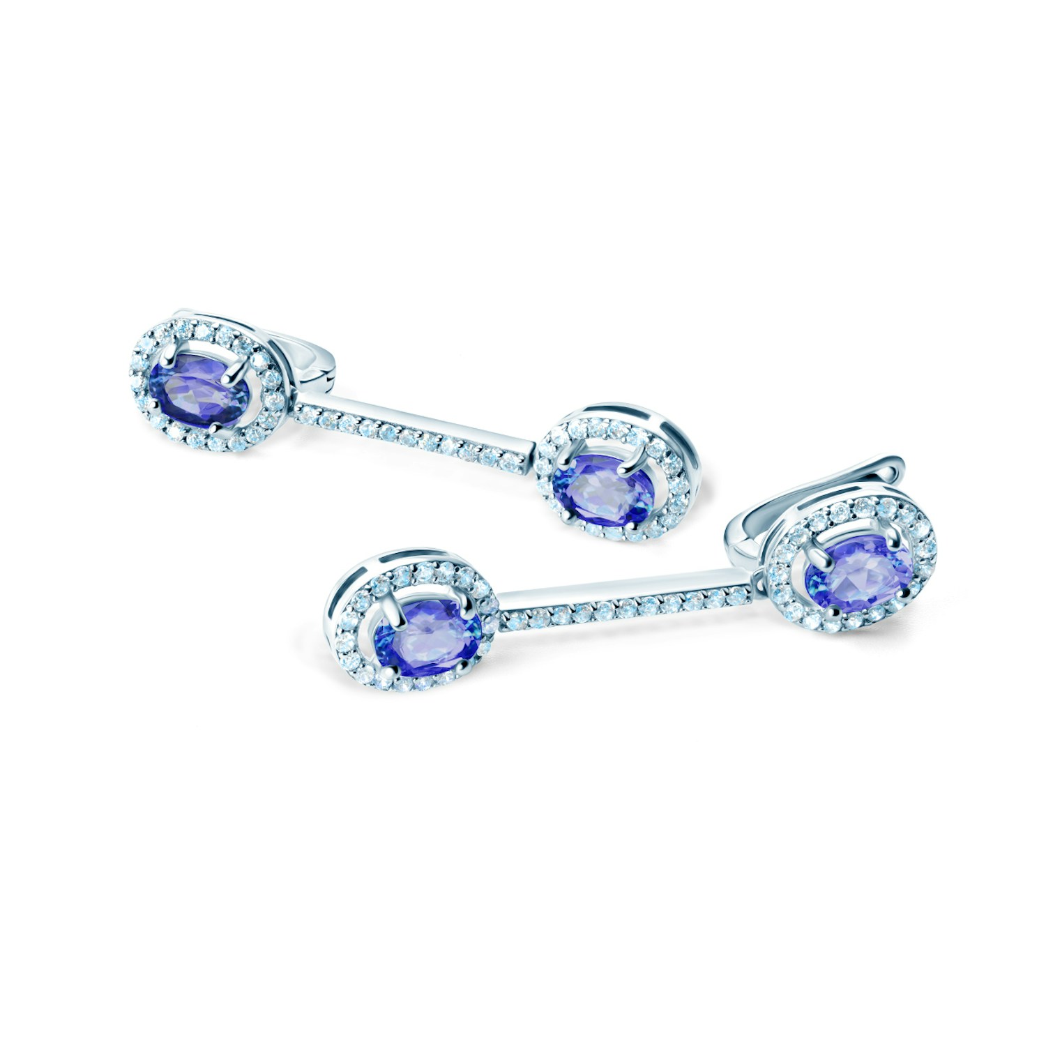 Kolczyki wykonane z 14-karatowego białego złota (próba 0,585). W kolczykach zostały osadzone tanzanity o łącznej masie 3,04 ct oraz diamenty o łącznej masie 0,98 ct o nieskazitelnej barwie i czystości SI2/H.
