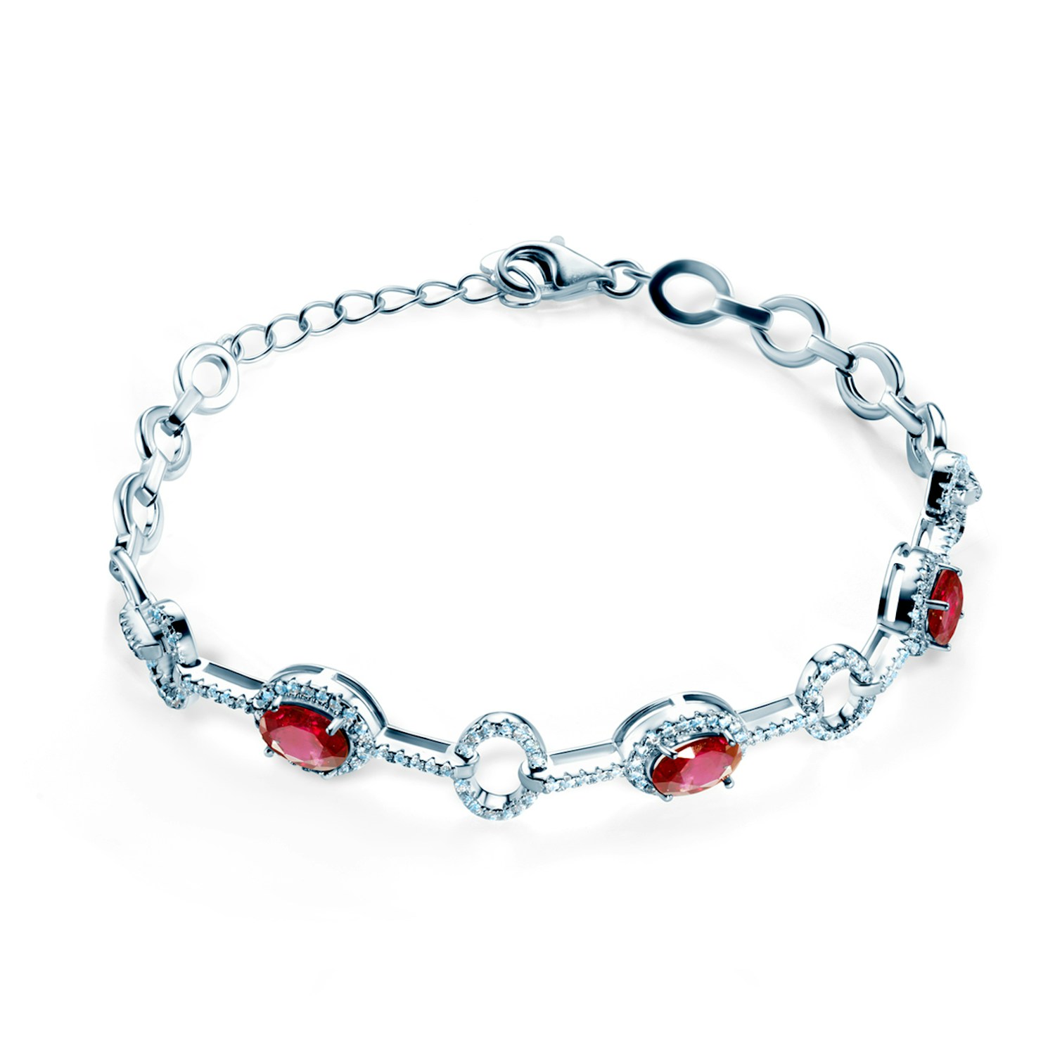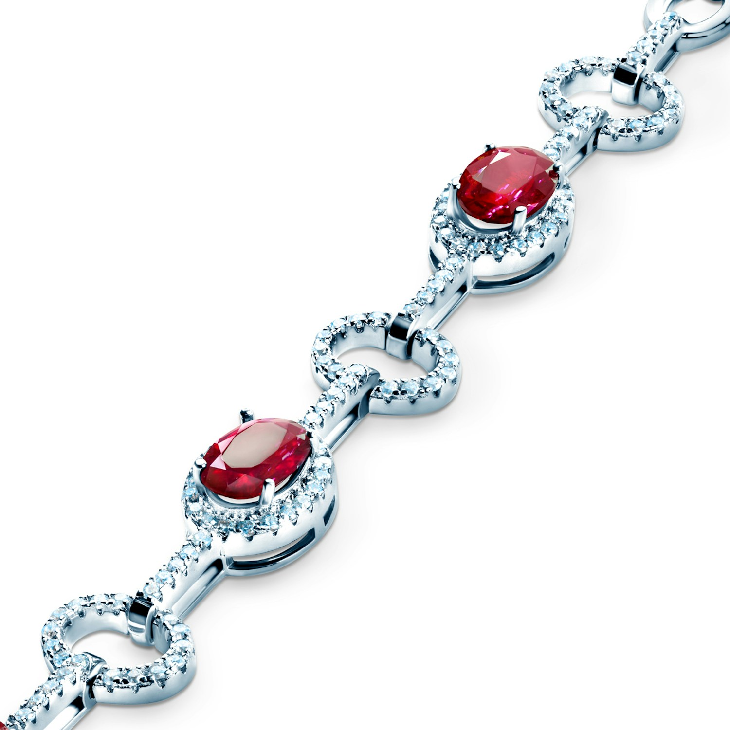 Bransoletka wykonana z 14-karatowego białego złota (próba 0,585). W bransoletce zostały osadzone rubiny o łącznej masie 2,28 ct oraz diamenty o łącznej masie 0,78 ct o nieskazitelnej barwie i czystości SI2/H.
