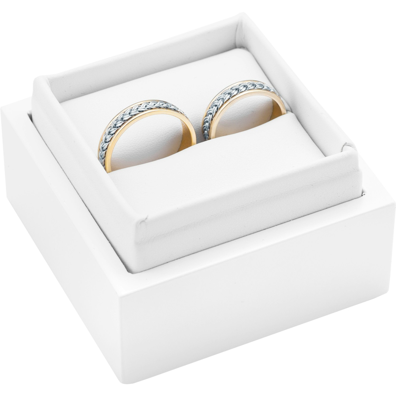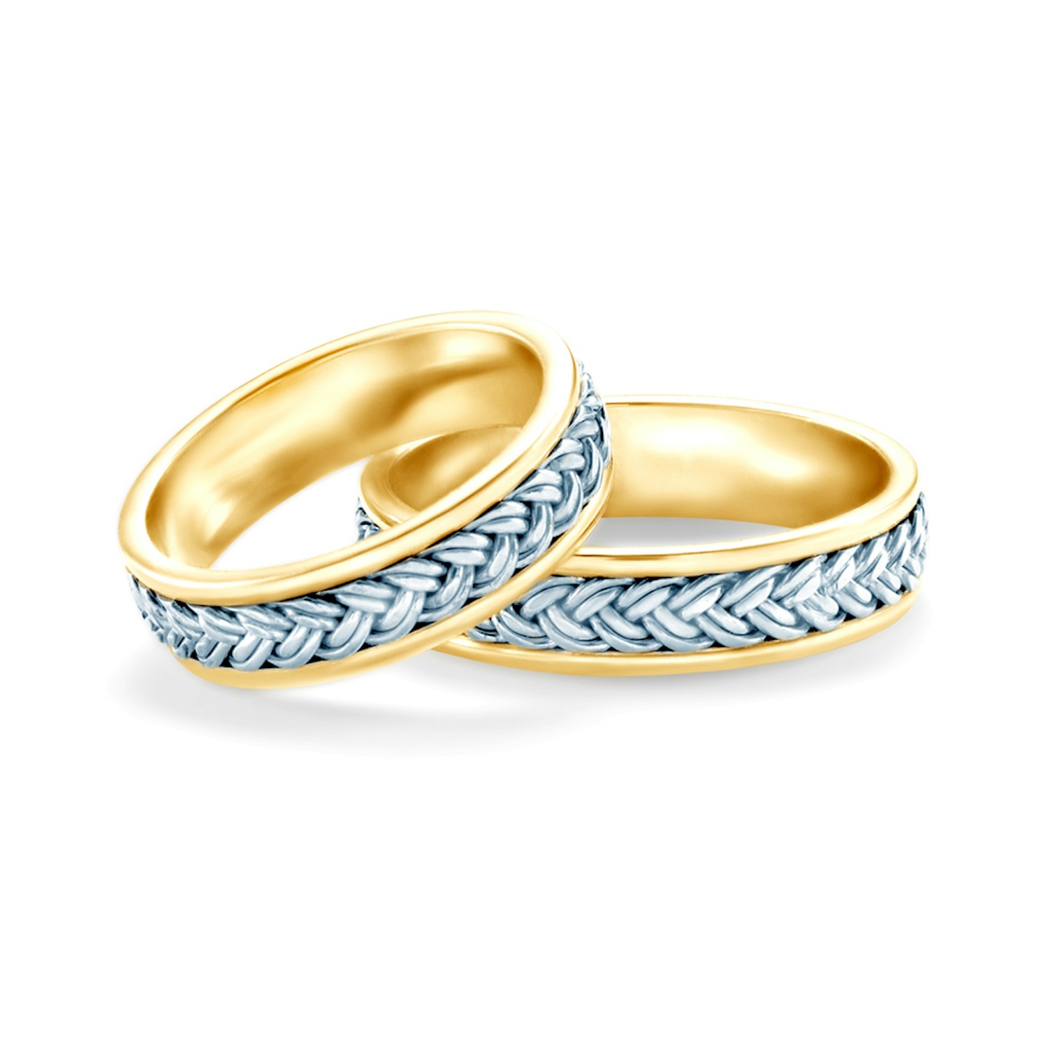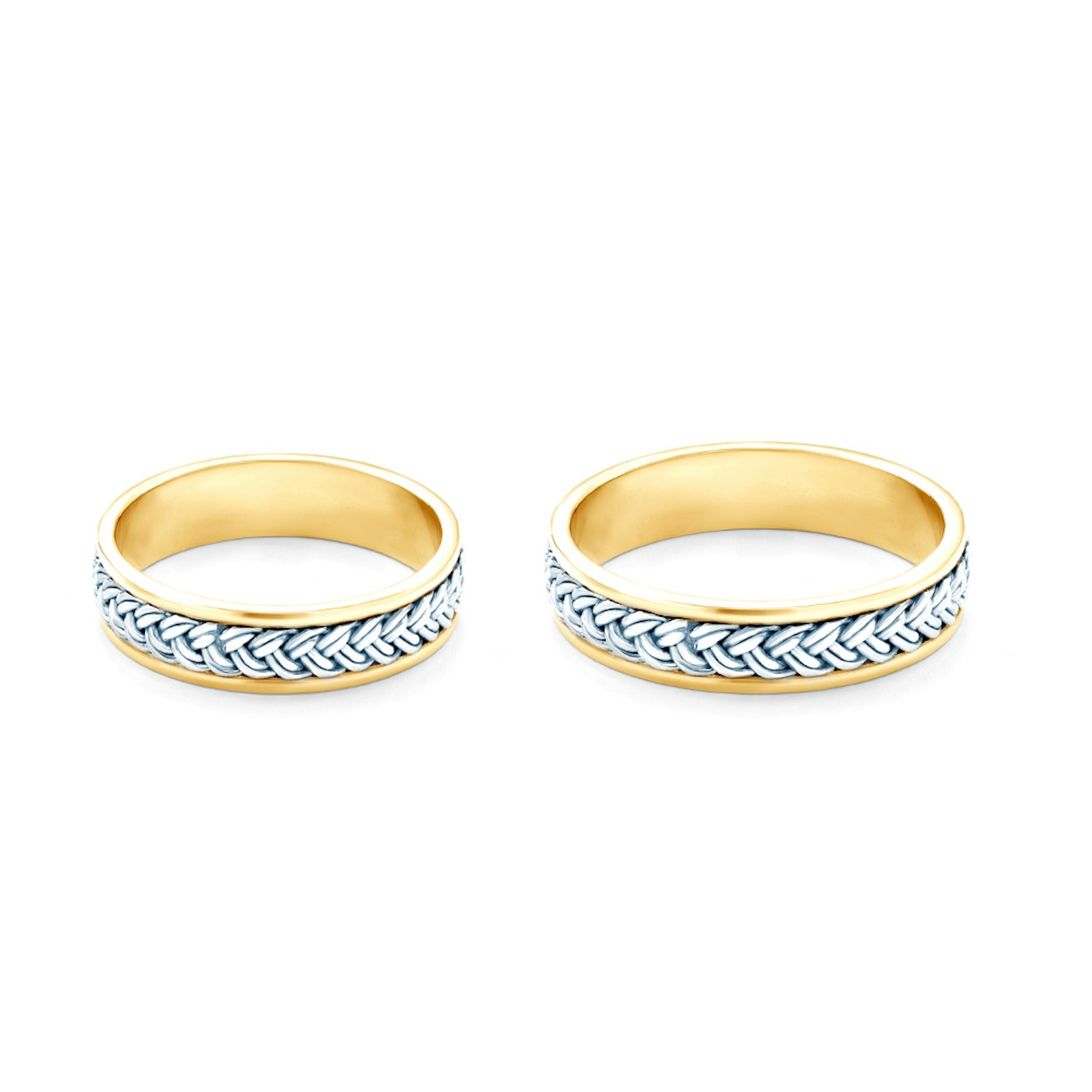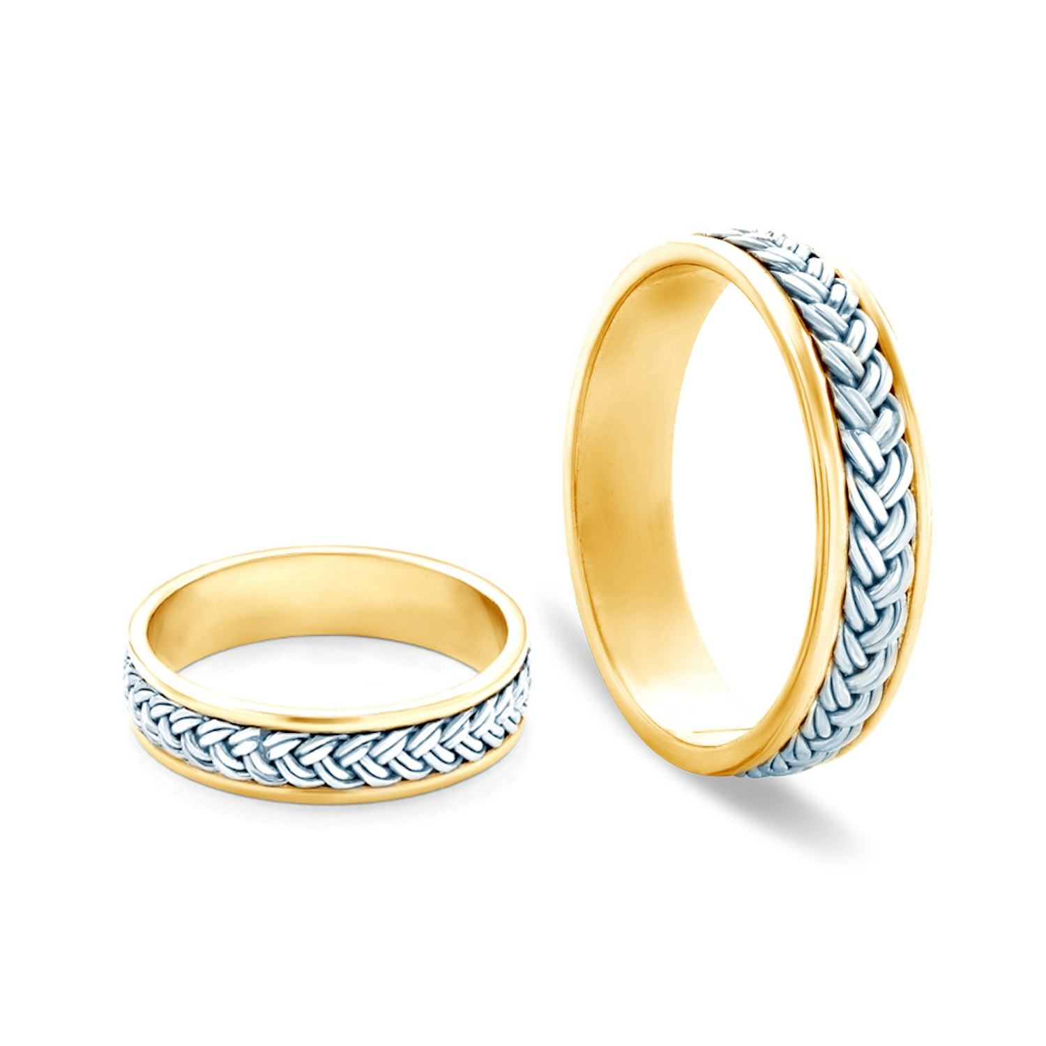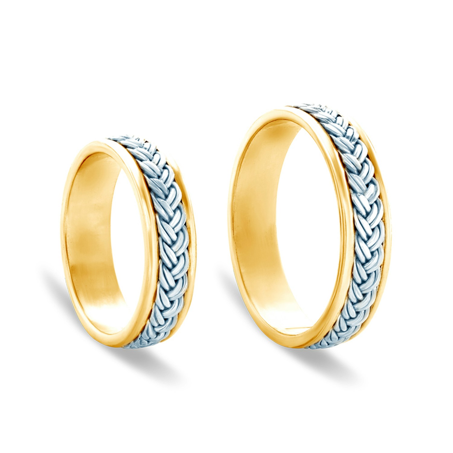 Obrączki ślubne wykonane z połączenia żółtego oraz białego złota (próba 0,333/0,585/0,750).