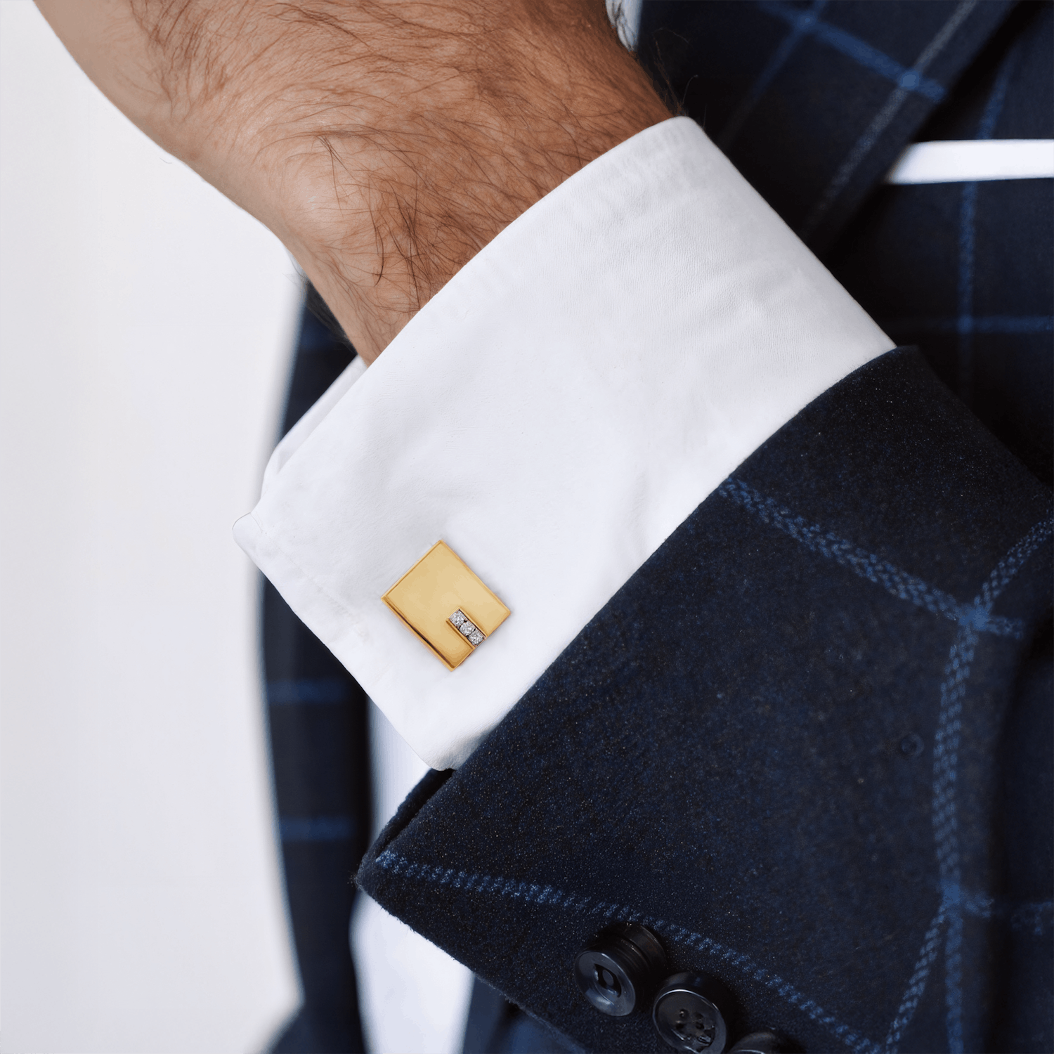 Spinki do mankietów wykonane z 14 karatowego żółtego złota (próba 585). W spinkach osadzonych zostało 6 diamentów o łącznej masie 0,06ct, czystości SI2/H i szlifie brylantowym.