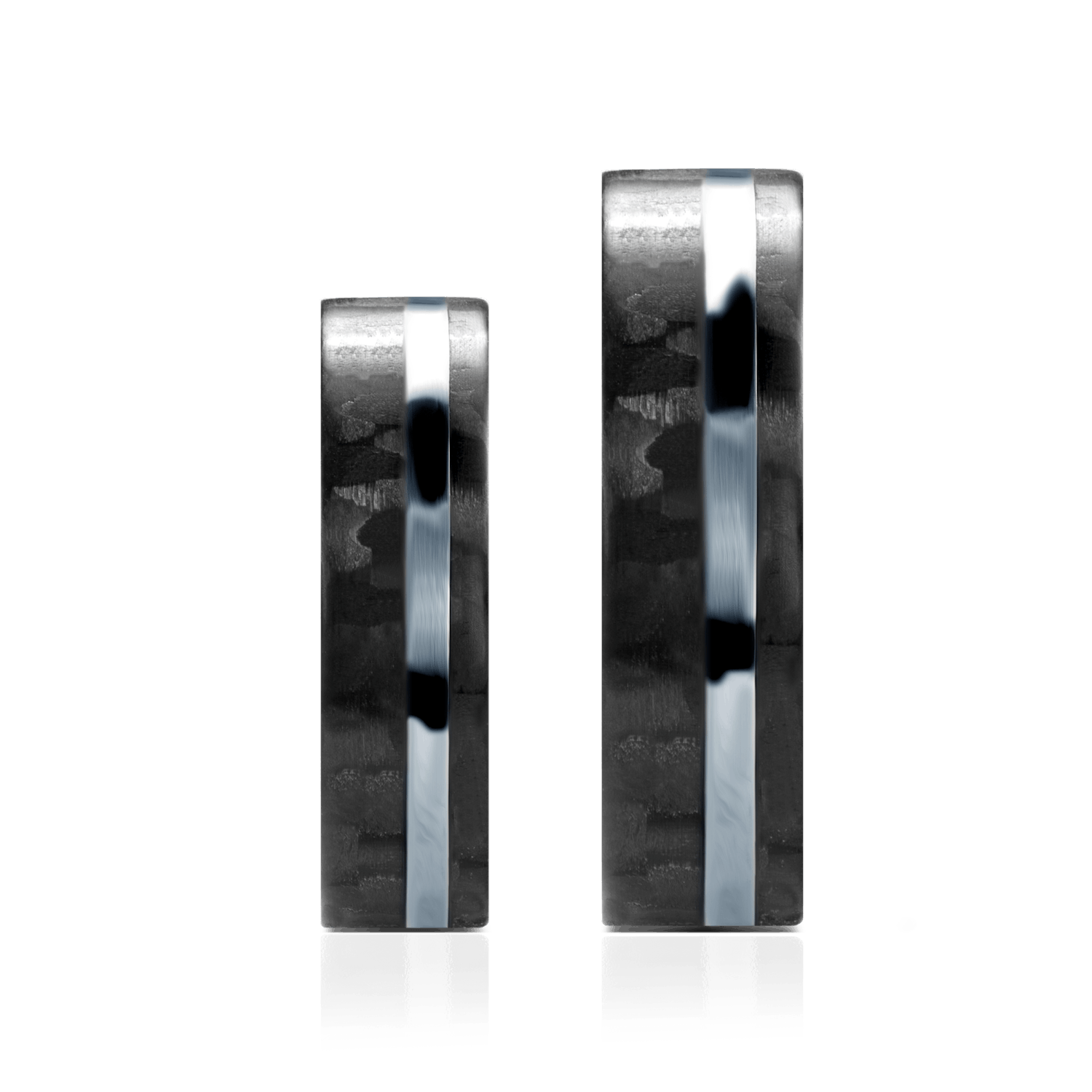 Obrączki ślubne płaskie wykonane z carbonu i tytanu.