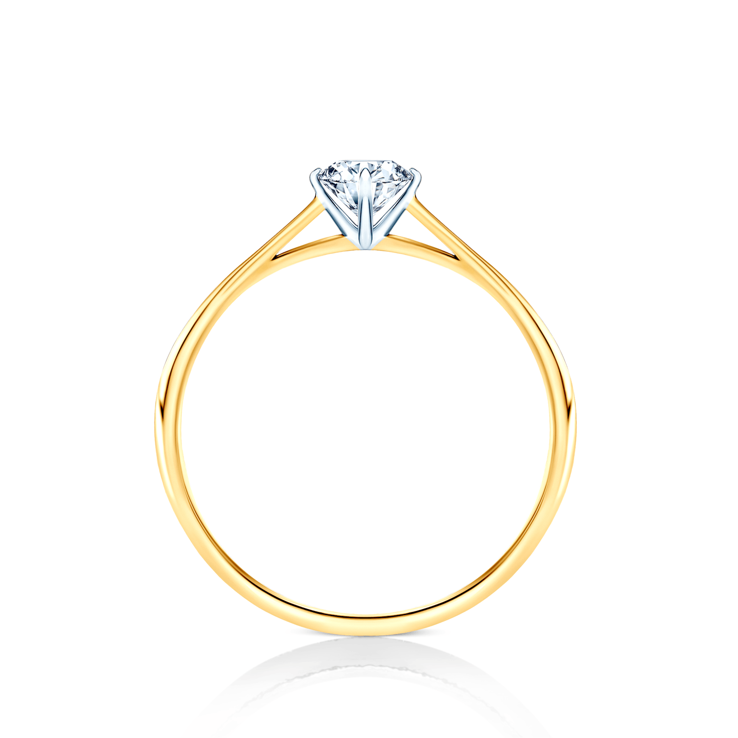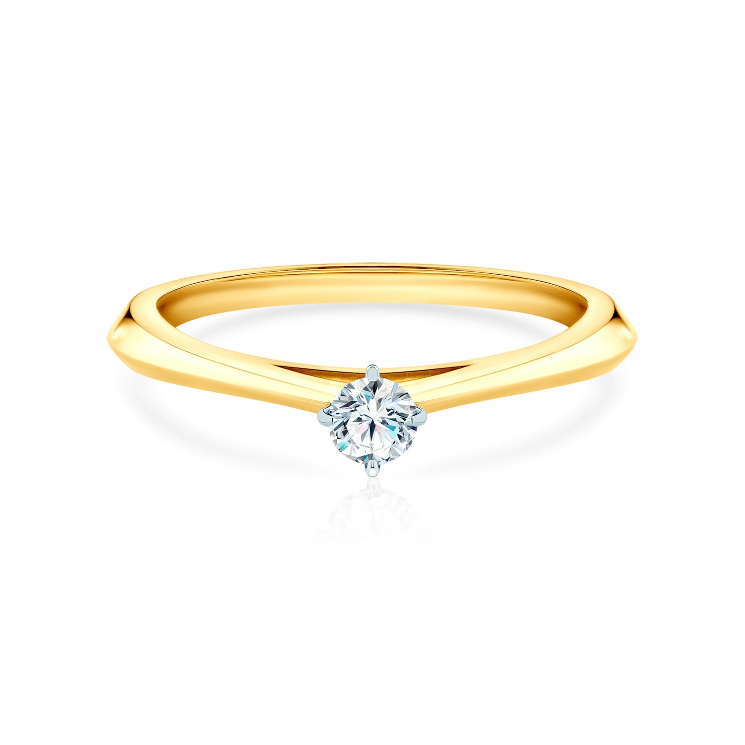 Pierścionek zaręczynowy z diamentem 0,07 ct o szlifie brylantowym wysokiej czystości SI1/G, wykonany z 14-karatowego żółto-białego złota (próba 0,585).