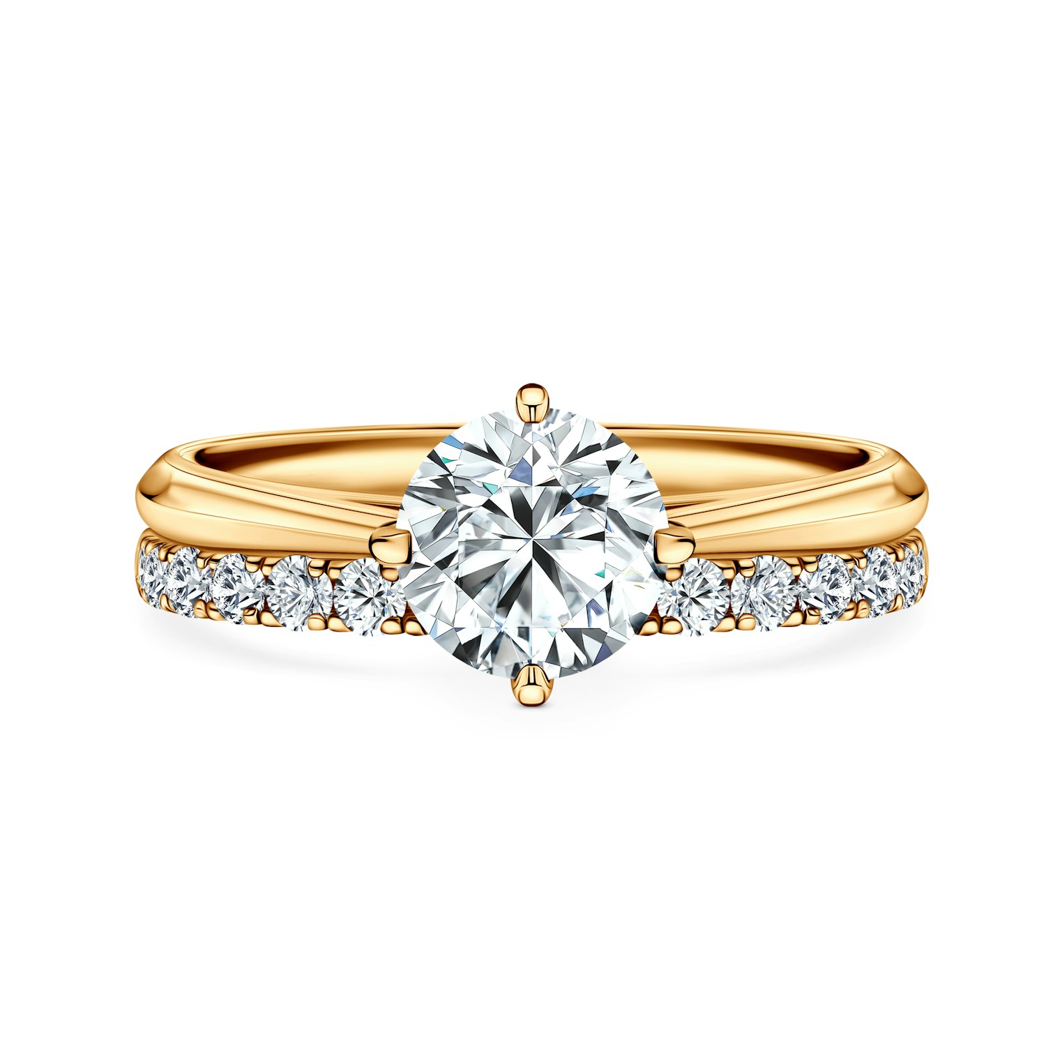 Specjalnie wyprofilowana obrączka idealnie wpasowuje się w pierścionek zaręczynowy, tworząc jedyną taką kompozycję biżuterii.