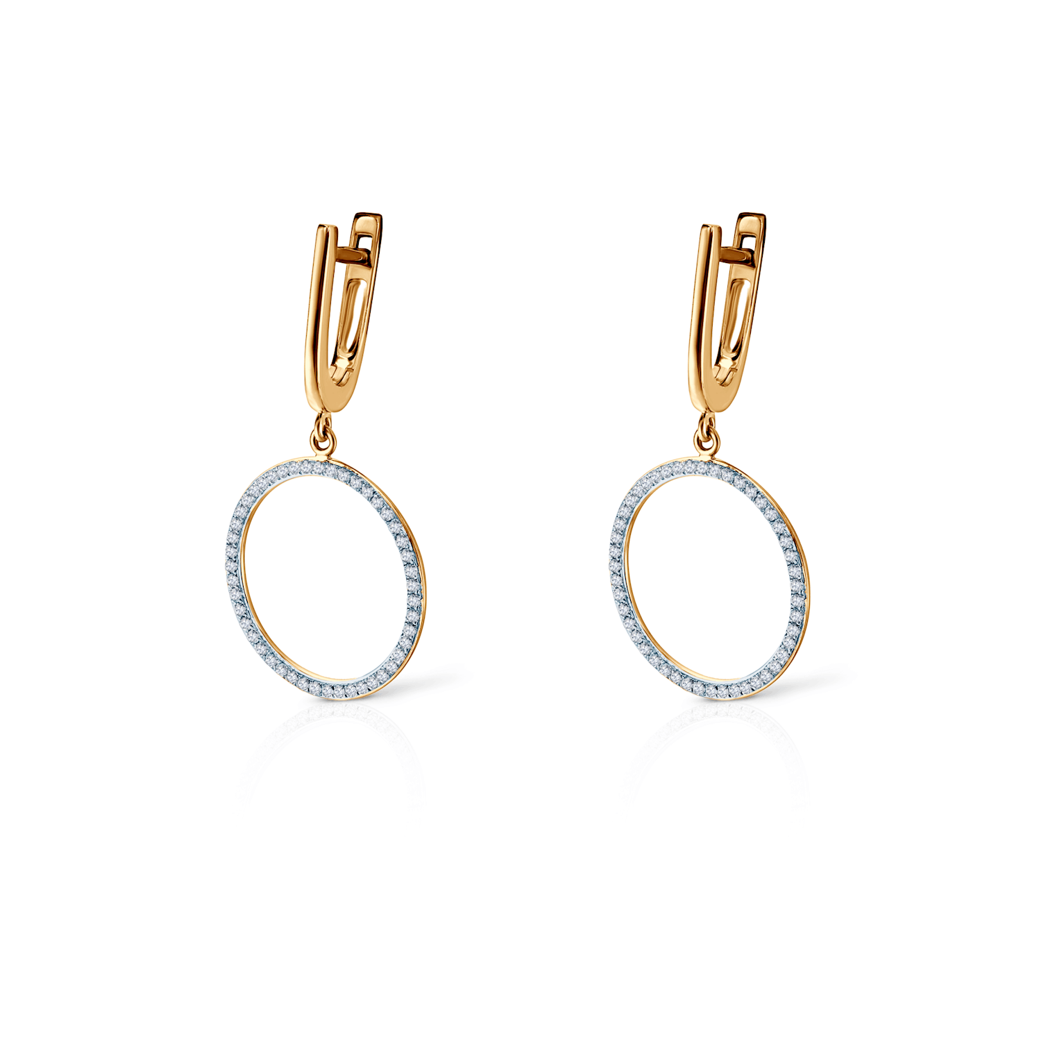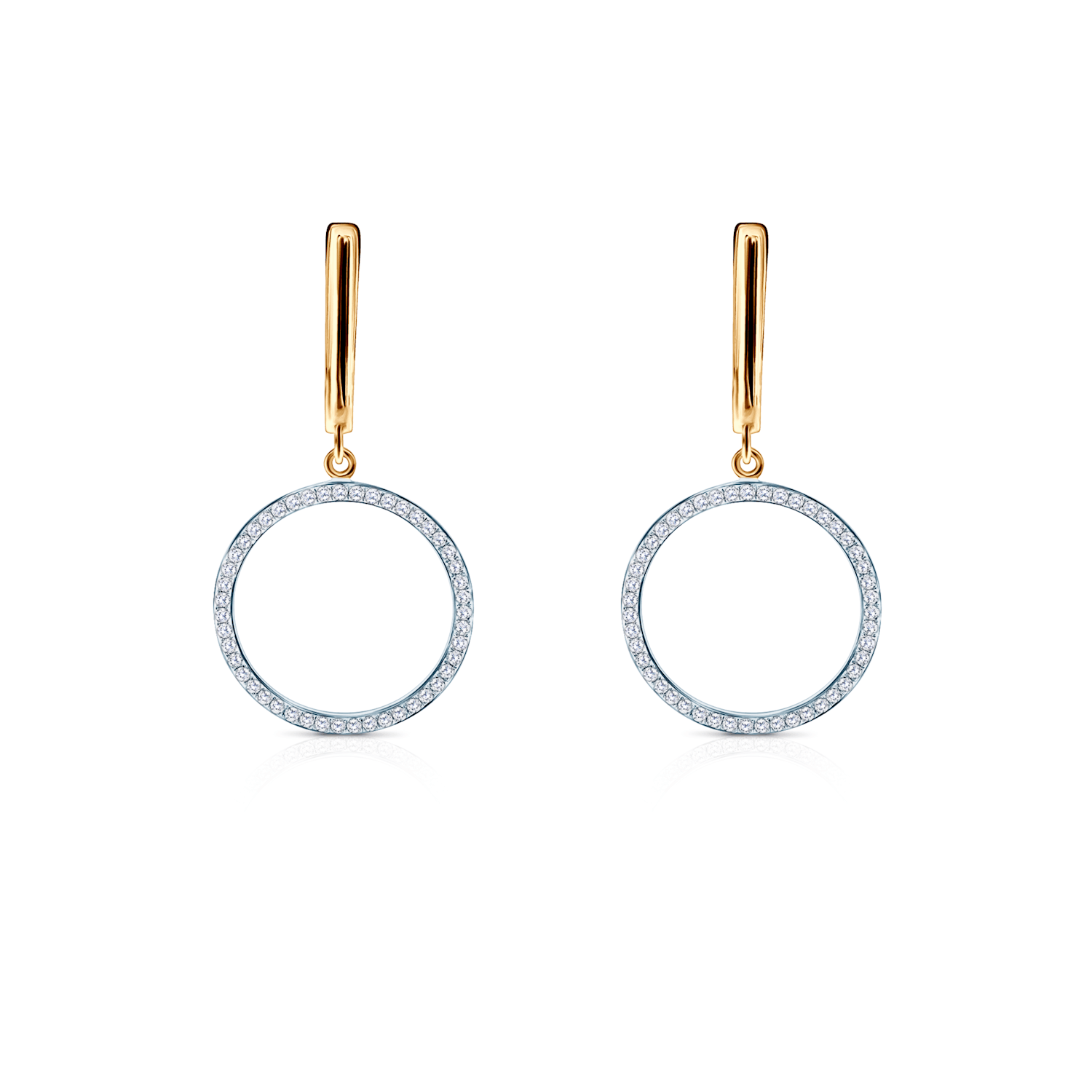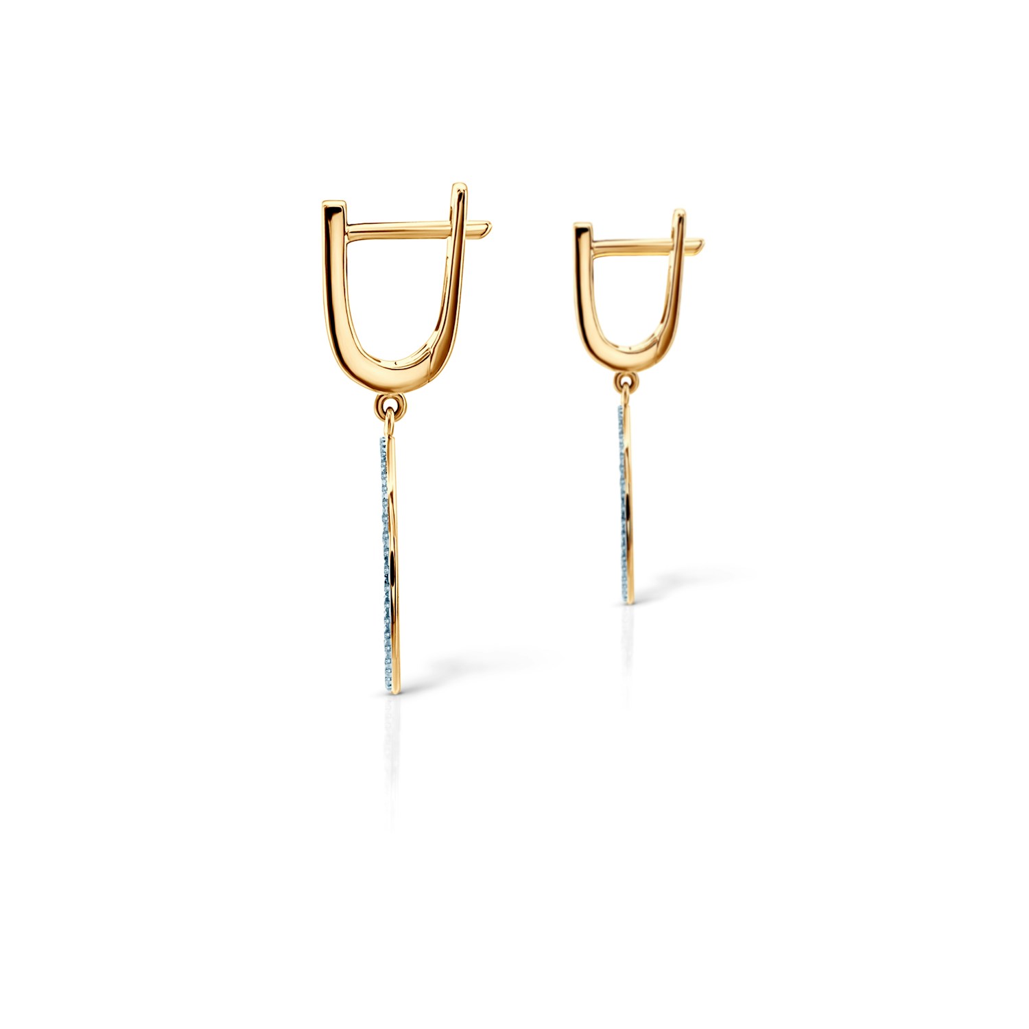 Kolczyki wykonane z 14-karatowego żółtego i białego złota (próba 0,585). W kolczykach zostały osadzone 94 diamenty o szlifie brylantowym, wysokiej czystości SI/H, o łącznej masie 0,35ct.