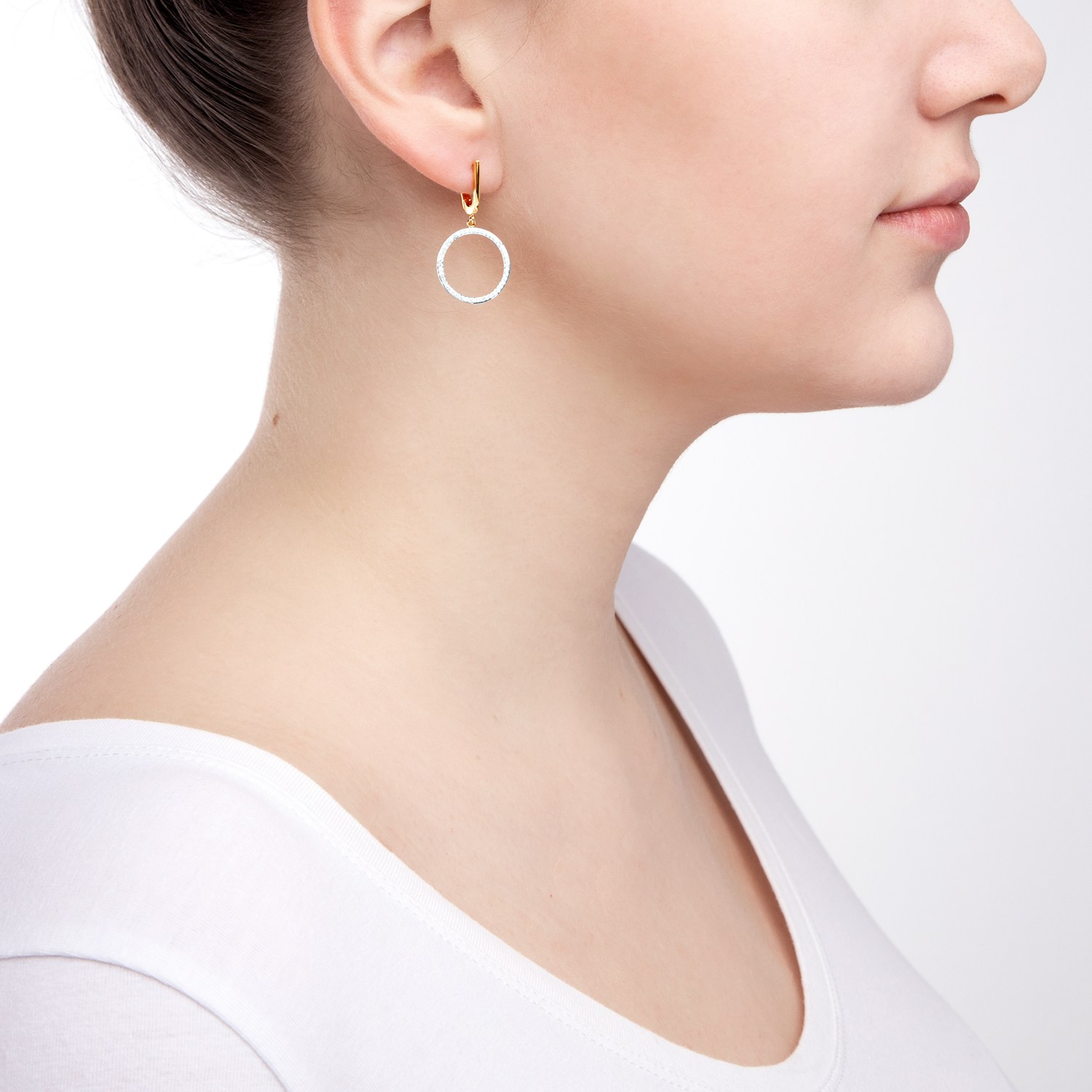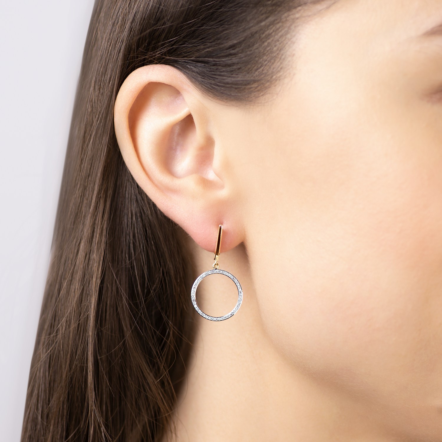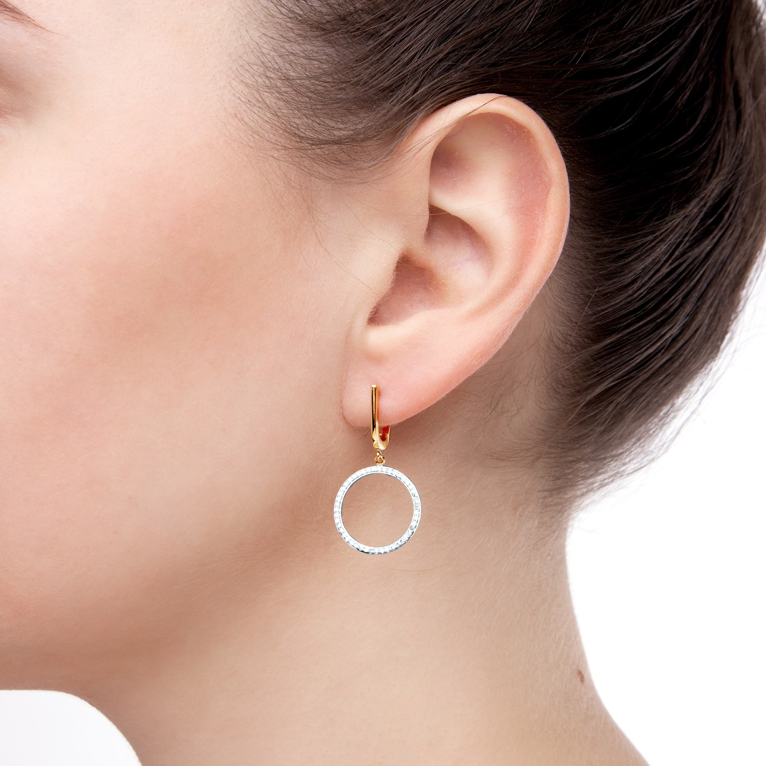 Kolczyki wykonane z 14-karatowego żółtego i białego złota (próba 0,585). W kolczykach zostały osadzone 94 diamenty o szlifie brylantowym, wysokiej czystości SI/H, o łącznej masie 0,35ct.