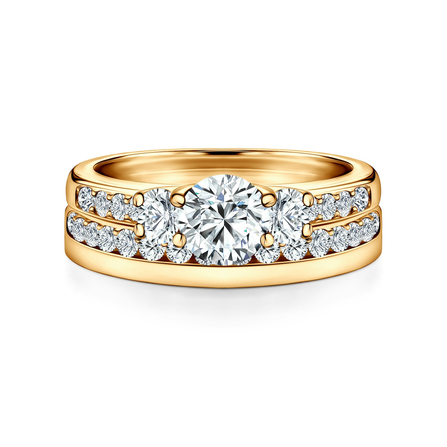 Specjalnie wyprofilowana obrączka idealnie wpasowuje się w pierścionek zaręczynowy, tworząc jedyną taką kompozycję biżuterii.