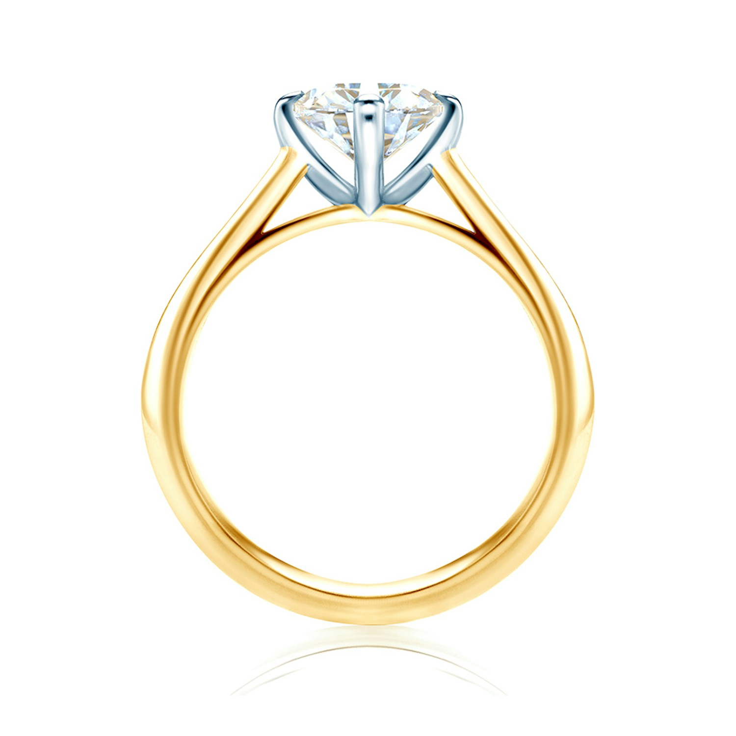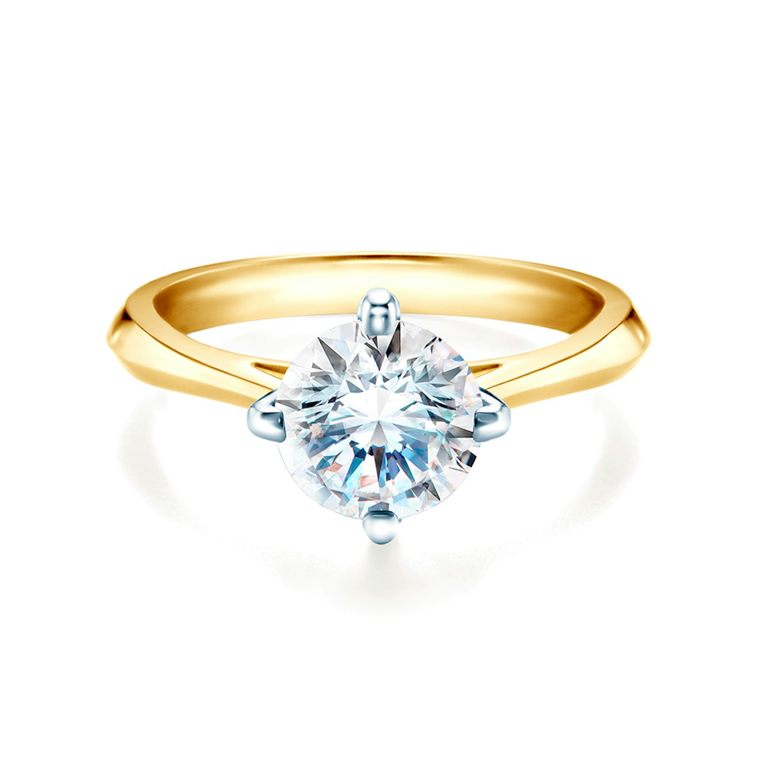 Pierścionek zaręczynowy z diamentem 1,50 ct o szlifie brylantowym wysokiej czystości SI2/H, wykonany z 14-karatowego żółto-białego złota (próba 0,585).