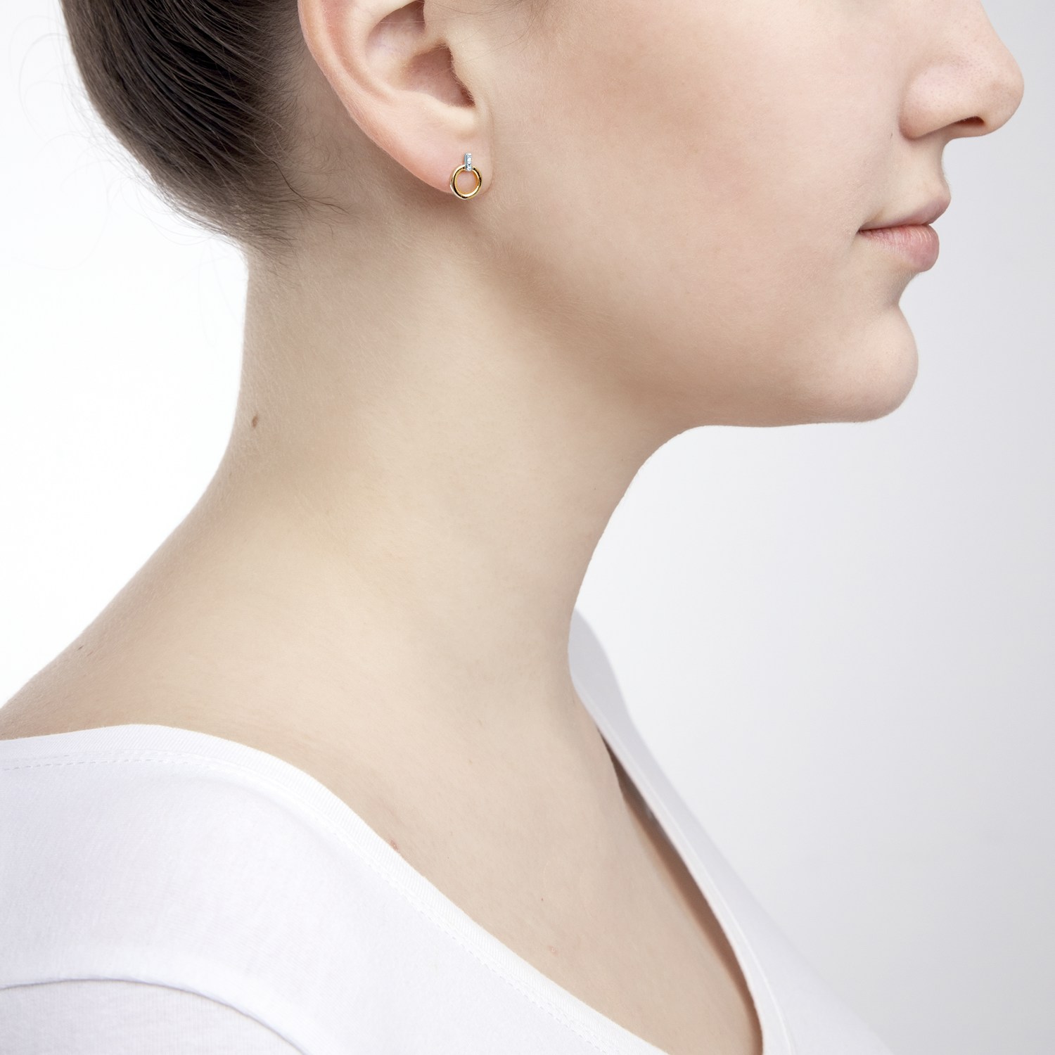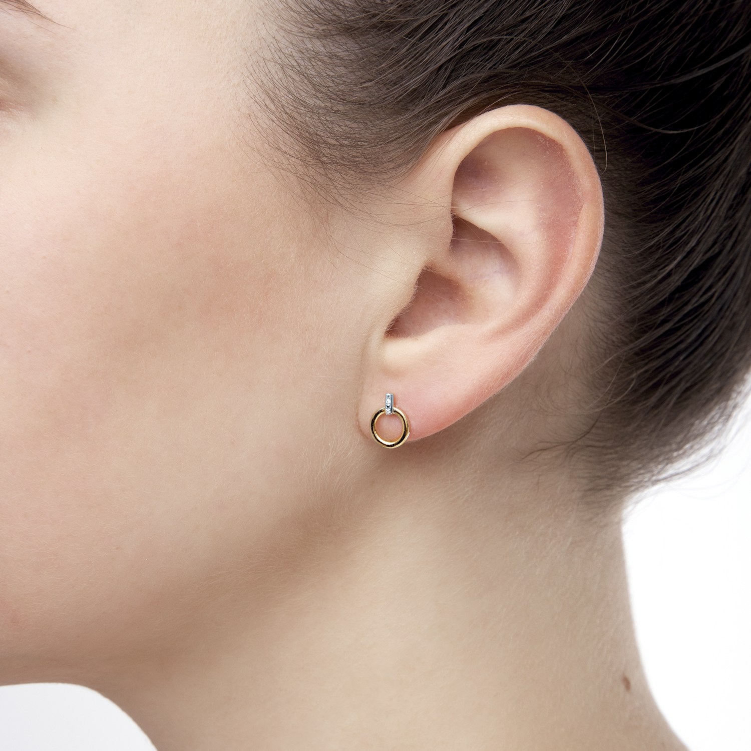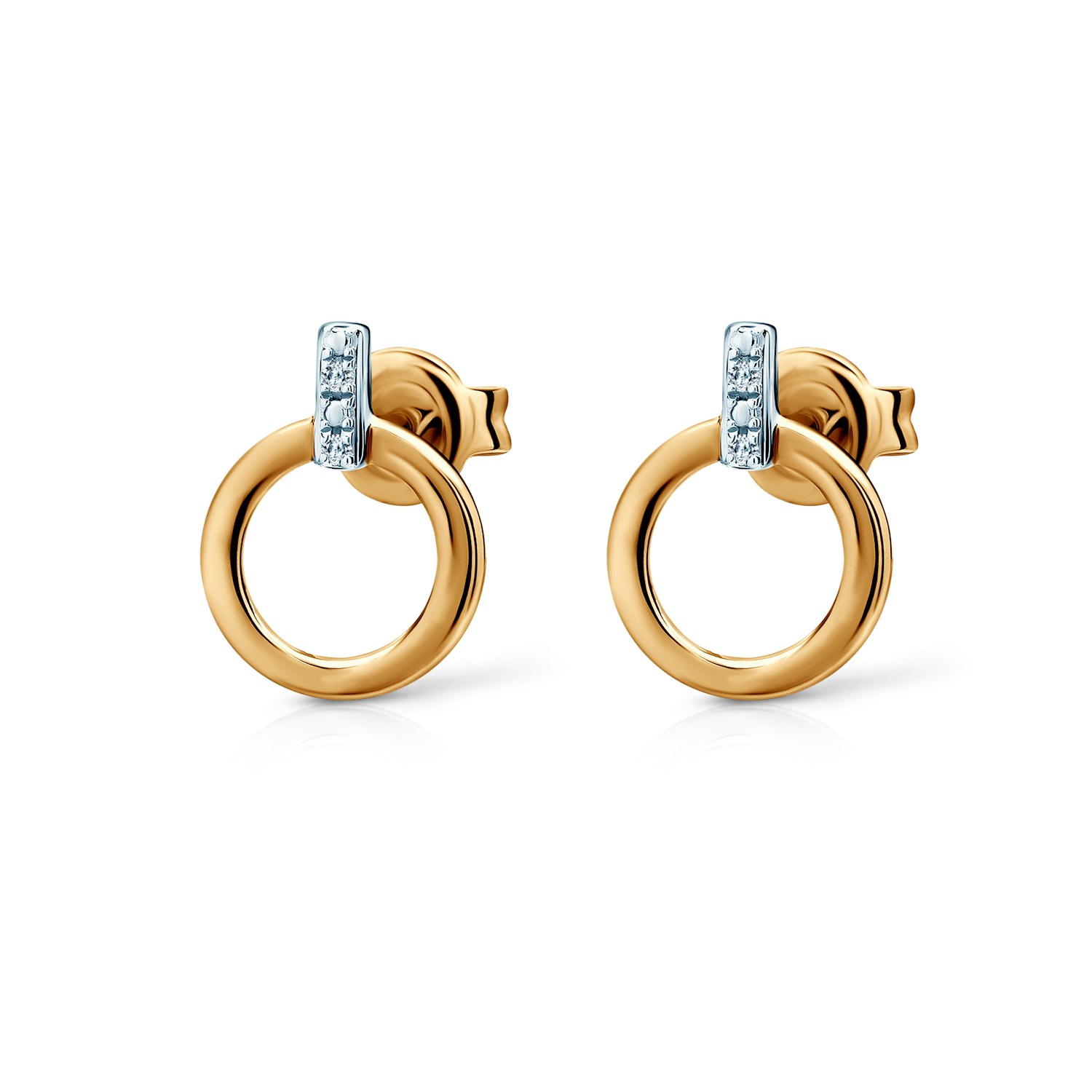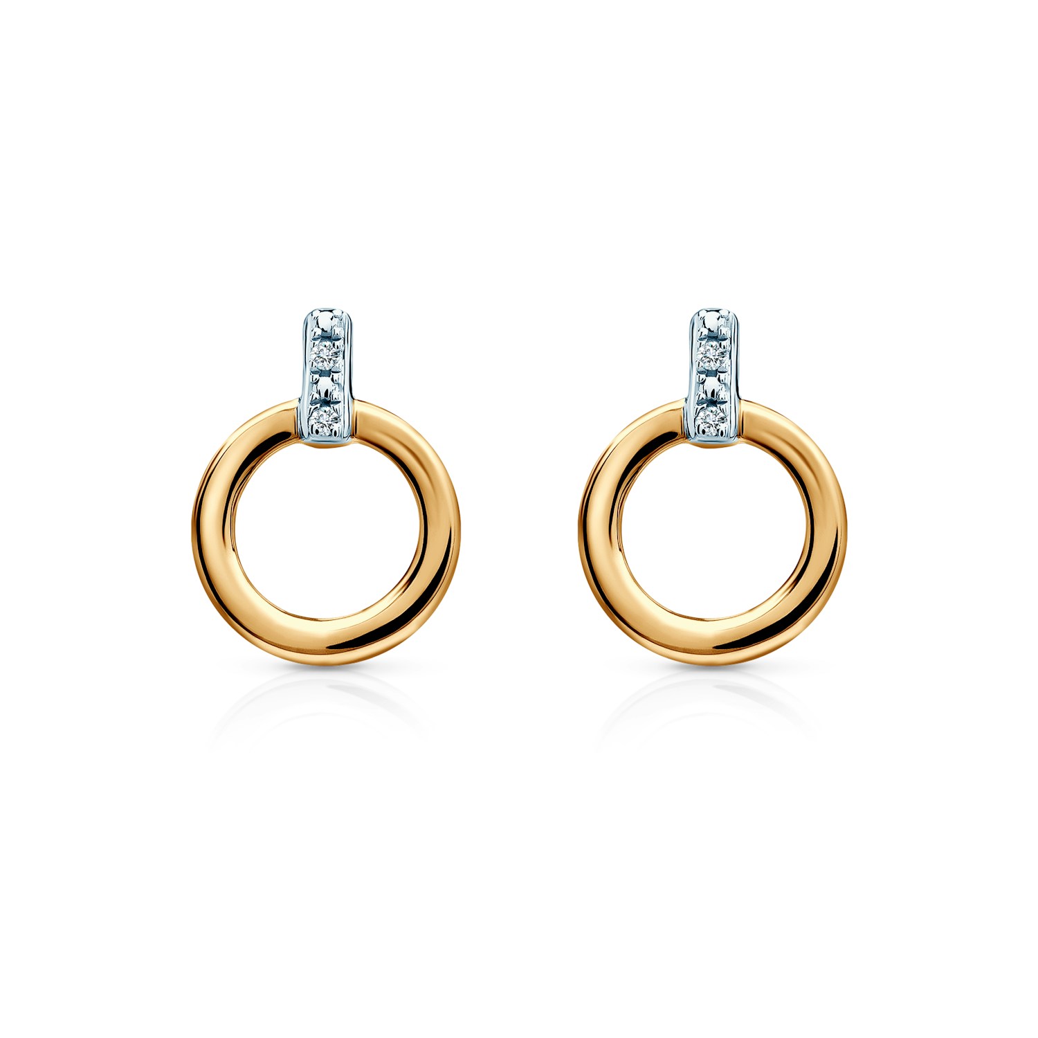 Kolczyki kółka z 4 diamentami w szlifie brylantowym o łącznej masie 0,01 ct, wykonane z żółtego złota (próba 585).