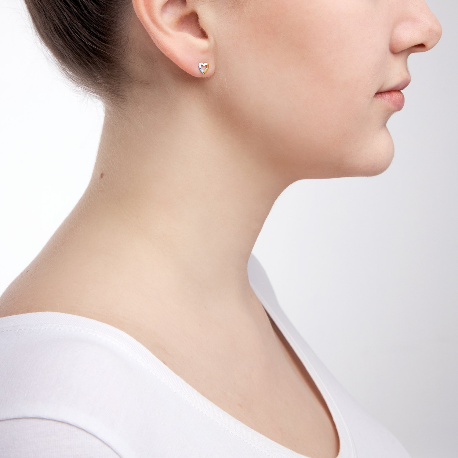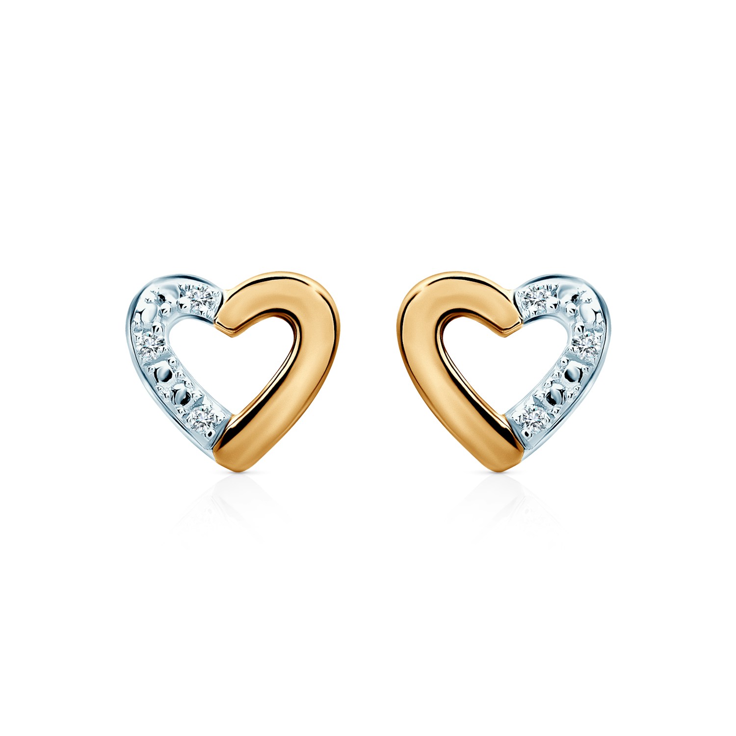 Kolczyki z 6 diamentami o łącznej masie 0,01 ct i szlifie brylantowym, wykonane z połączenia białego i żółtego złota (próba 585).