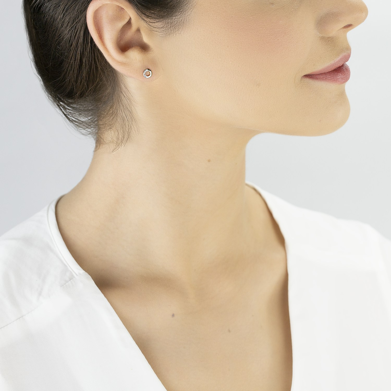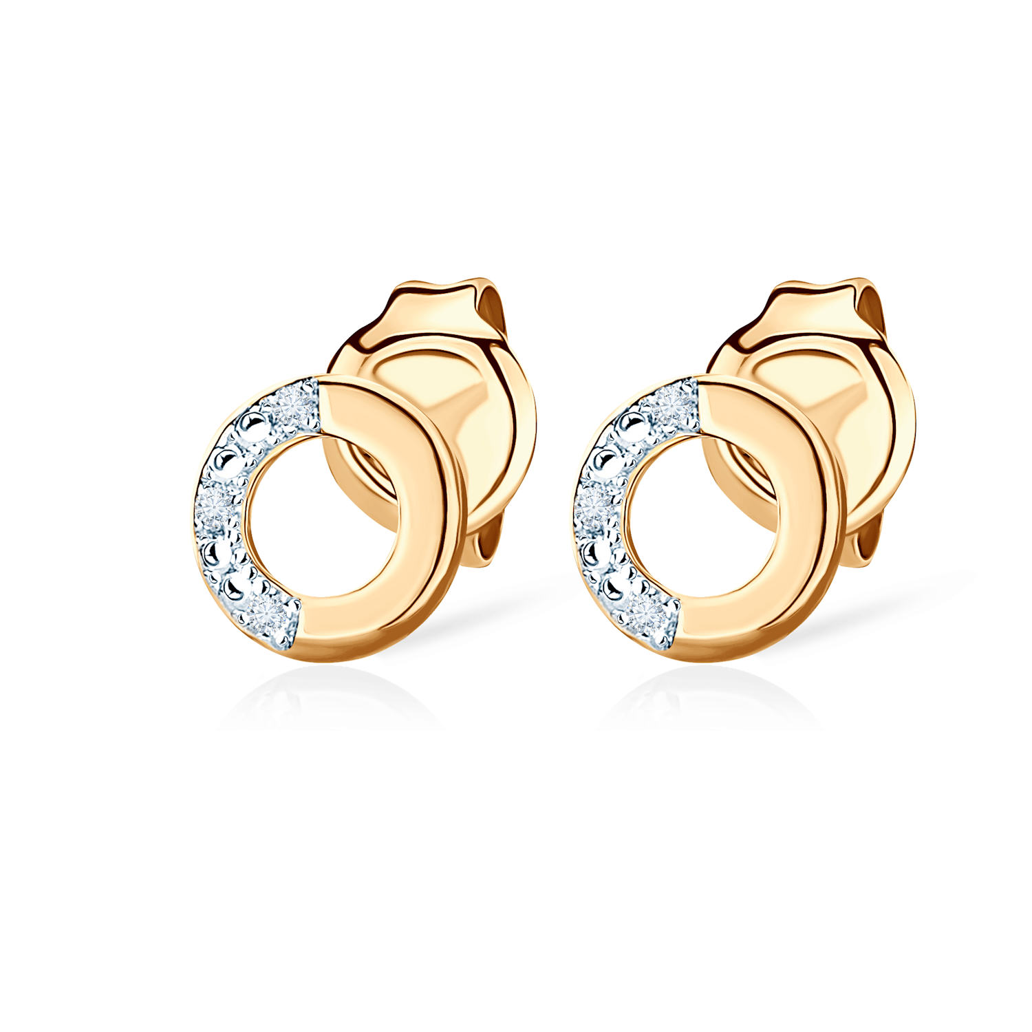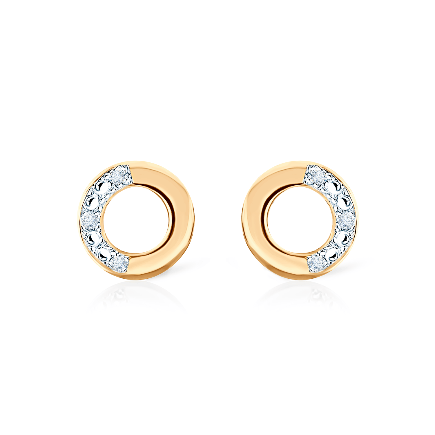 Kolczyki z 6 diamentami o łącznej masie 0,01 ct i szlifie brylantowym, wykonane z połączenia białego i żółtego złota (próba 585).