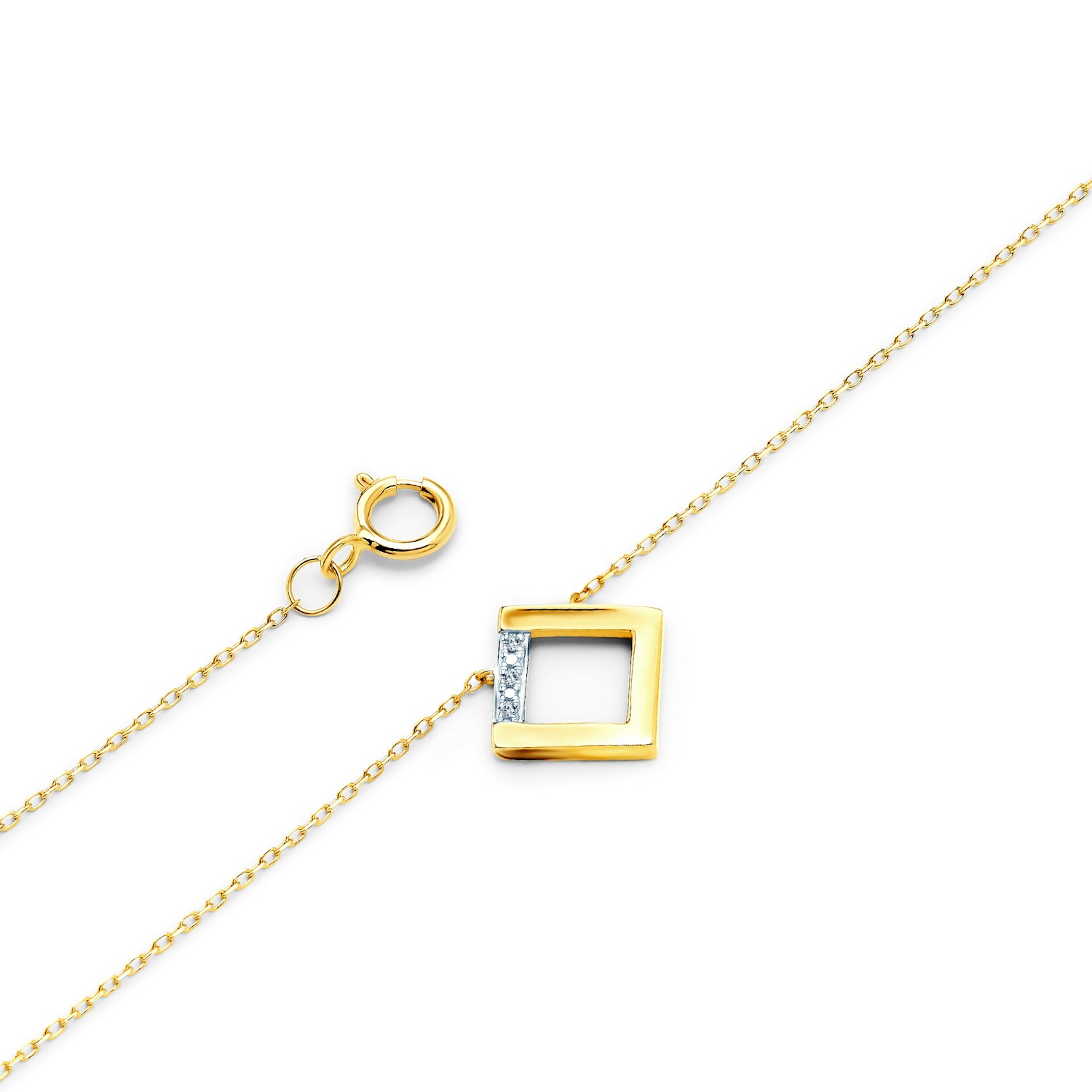 W naszyjniku zostało osadzonych 3 diamentów o łącznej masie 0,01 ct. Naszyjnik wykonany ze złota(próba 585).