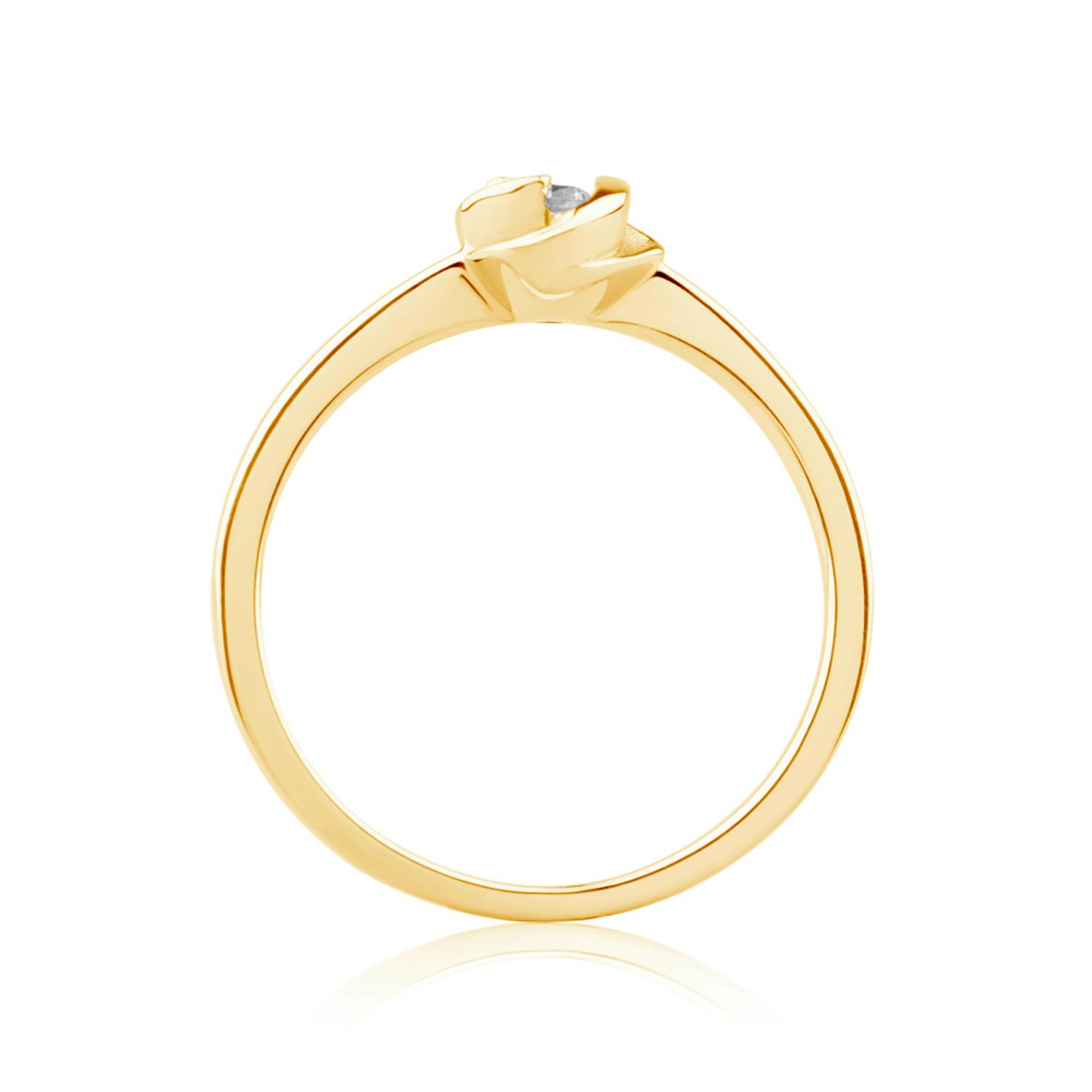 Pierścionek zaręczynowy z diamentem 0,09 ct o szlifie brylantowym wysokiej czystości SI/H, wykonany z 14-karatowego żółtego złota (próba 0,585).