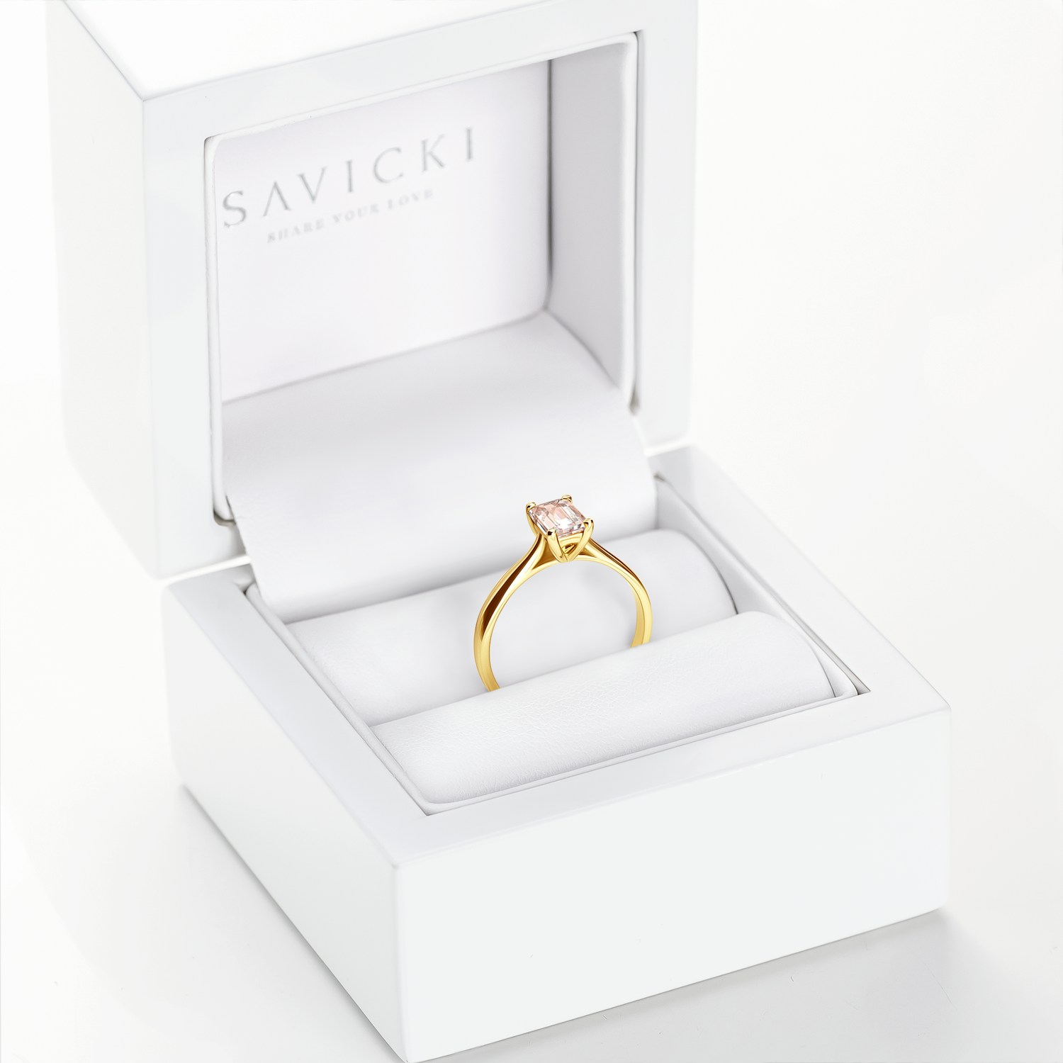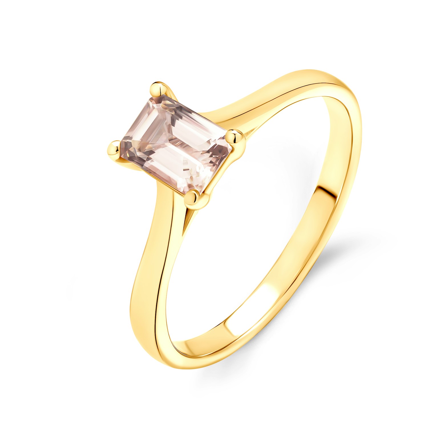 Pierścionek zaręczynowy z morganitem 6x4mm o szlifie szmaragdowym, wykonany z 14-karatowego żółtego złota (próba 0,585).
