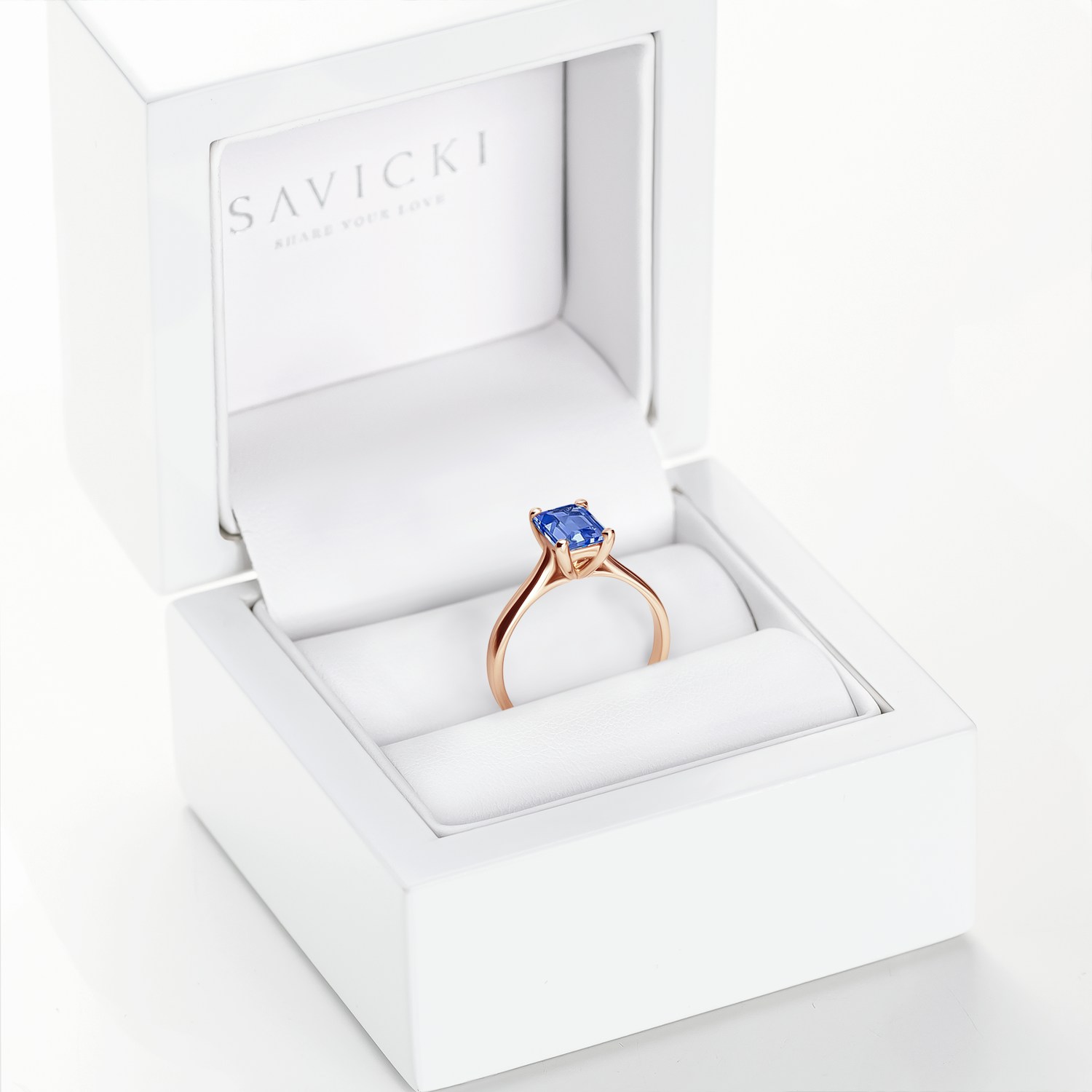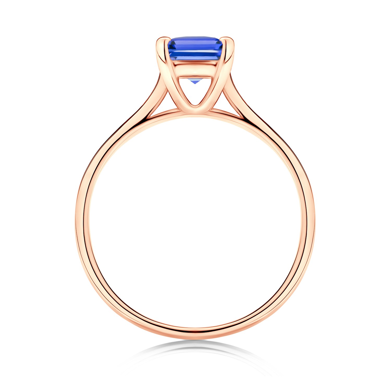 Pierścionek zaręczynowy z tanzanitem 7x5mm o szlifie szmaragdowym, wykonany z 14-karatowego różowego złota (próba 0,585).